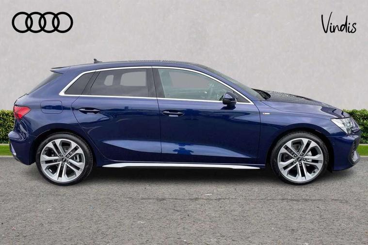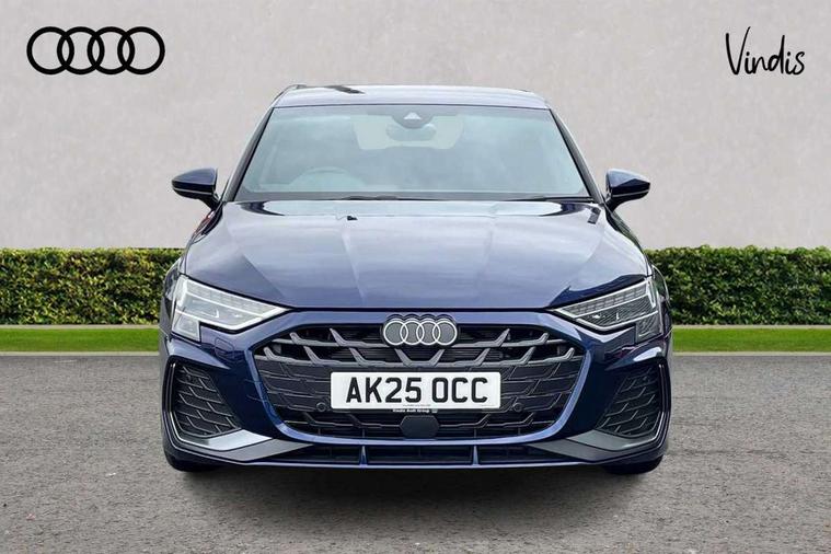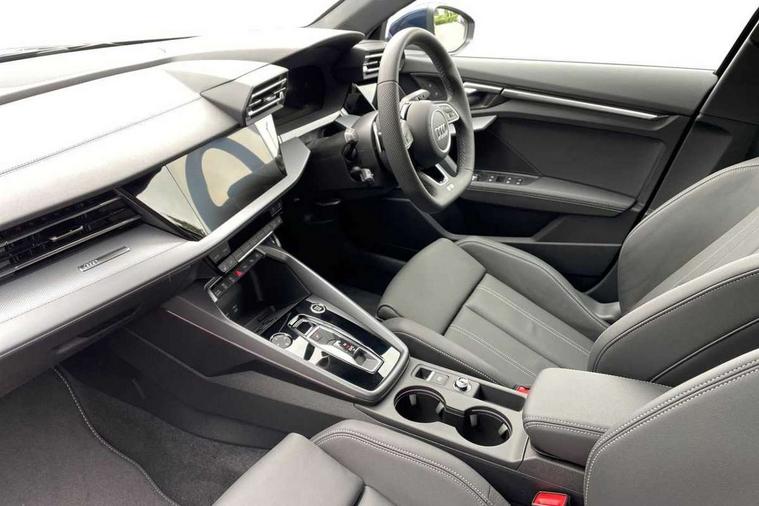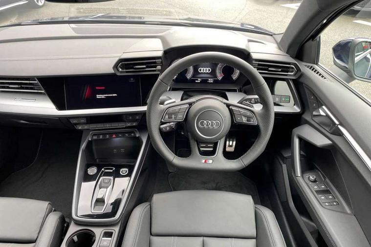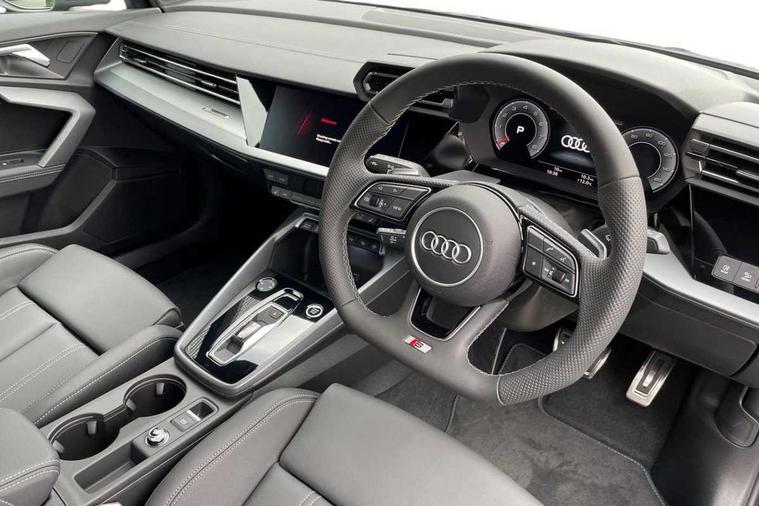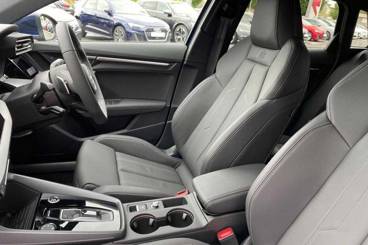 Adjustable speed limiter, Audi drive select, Audi smartphone interface with app store includes wireless Apple carplay, Android auto and Amazon alexa integration, Audi virtual cockpit plus - 12.3" full HD resolution dynamic digital instrument cluster, Automatic start/stop system with recuperation, Bluetooth interface, Camera based traffic sign recognition, Collision avoidance assistant, Cruise control, Distraction and Fatigue warning, e-Call (emergency call), Electromechanical power speed sensitive steering, Emergency assist, Lane departure warning system, MMI Navigation Plus with high resolution 10.1" colour touch screen display, Park Assist with parking system Plus, Service indicator, Tailgate, Trip computer, Voice control system with natural language interaction, Sports suspension, Audi Phonebox light with wireless charging, Audi sound system - 10 loudspeakers including centre loudspeaker and subwoofer, DAB Digital radio, USB ports with charging function in the rear, Acoustic glass windscreen, All weather light, Aluminium window trim, Auto dimming frameless rear view mirror, Automatic dynamic range control, Body colour exterior mirrors, Chrome exhaust tailpipes, Dipped beam, main beam, position light and turning light, Electrically adjustable/heated/folding/auto dimming door mirrors with integrated LED indications + kerb view function for passenger side, Exterior model badging, Front and rear side air inlets in grained matt black with dark liquid chrome frame, Front electric windows, Front radiator grill in high gloss dark chrome, Heat insulating glass windscreen, Illuminated door sills with aluminium inserts at the front with S logo, Intersection light, LED 3rd brake light, LED brake lights, LED daytime running x3, LED headlights with LED rear lights and dynamic rear indicators, LED rear number plate lights, LED reverse light, LED tail lights, Light and rain sensors, Manoeuvring light, Motorway light, Privacy glass - dark tinted rear window, rear door and side windows, Rear diffuser and grill in grained matt black with inlay in dark liquid chrome, Rear electric windows, Rear side wing doors, Rear wiper, S line bumpers, S roof spoiler, Side S line emblems on front wings, Side sill trim in dark liquid chrome, Static Cornering lights, 12V socket and storage compartment in front centre console, 3 seat bench in 2nd row, 3 spoke flat bottomed leather multifunction sport steering wheel with gear shift paddles, 3-zone deluxe automatic air conditioning, 4 way electrically adjustable lumbar support for driver and front passenger, 40/20/40 split folding rear seat bench, Black cloth headlining, Black front and rear floor mats, Front and rear centre armrest in artificial leather with contrasting stitching on armrests and instrument panel, Front and rear headrests, Heated front seats, Height and reach adjustable steering wheel, Manual boot compartment lid, Manually adjustable front seats, Rear centre armrest with cupholder, S badging on the steering wheel, Seat side bolsters, Single front passenger seat, Stainless steel pedals and front footrest in black, Twin leather upholstery with front sports seats S embossed logo, Aluminium interior elements pack - A3, Multi-coloured LED interior lighting package with Multi-coloured contour lighting of instrument panel - A3, 3x3 point rear seat belts, Driver and front passenger airbag with passenger airbag deactivation, Electronic Stabilisation Control (ESC) including ABS, ASR and EDL, First aid kit with warning triangle and 2 safety vests, Front side airbags with head airbags and interaction airbag, Hill hold assist, Pre-sense front with pedestrian and cyclist detection, Seatbelt monitoring, Tyre pressure loss indicator, Anti theft alarm, Anti-theft wheel bolts, Electronically operated child locks, Immobiliser, Remote central locking with safelock, Black dashboard, Inlay in dark aluminium spectrum,