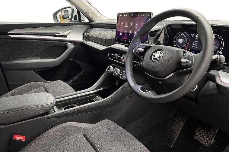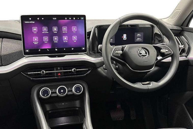 13" satellite navigation touchscreen display, Blind spot detection with door exit warning, Bluetooth system, ChatGPT functionality, Driver alert - Fatigue and drowsiness monitor, Dry display cleaner, Emergency call, Front and rear parking sensors, Front cross traffic assist, Lane assist, PAS, Rear traffic assist, Rear view camera, Tailgate unlocking from outside, Traffic sign recognition, USB C Port x 2 in front centre console, Virtual Cockpit - 10.25" digital display, Voice control system, Wireless charging for two smartphones (15W) with cooling function, Wireless SmartLink for Apple CarPlay and Android Auto, Stop/start function, 2x USB-C in the rear, 8 Speakers, DAB Digital radio, Aero front windscreen wipers with intermittent function, All weather light, Auto dimming rear view mirror, Black wheel arch surrounds, Body colour bumpers, Body colour door mirrors and handles, Cornering light and poor weather light, Electric folding /adjustable/separted heated/folding door mirrors, auto dimming with boarding sports and memory function, Electric front and rear windows, Exterior black decorative trims, Heat insulating glass in windshield, Heated rear window, Ice scraper in fuel tank cap, Invisible tailpipe, LED daytime running lights, LED front fog lamps, LED Headlights, LED rear fog light, LED rear lights, LED third brake light in rear spoiler, Light assistant with automatic headlight control and coming home feature, Logo projection in door mirrors, Rear roof spoiler, Rear side wing doors, Rear window wiper, Safety reflectors on front and rear doors, Unique dark chrome design logo on alloy wheels, Window control switches with black trim, Windscreen wipers with rain sensor, Without engine designation, 1.5l bottle holder points in all door, 1x centre rear reading light, 2 seat bench in 3rd row, 3 configurable smart dials with 32mm coloured display, 3 seat bench in 2nd row, 4 foldable roof handles with rear coat hooks, Ambient interior lighting - Dashboard, front-door stowage compartments, front and rear door panels and footwell lighting, Automatic gear selector on steering column, Chrome interior door handles, Driver/front passenger reading lights, Fabric headlining, Fixed bench 40:60:40 split folding backrests, Front and rear floor mats, Front centre armrest with jumbo box storage compartment, cup holder and 12V socket, Height adjustable front headrests, Isofix child seat fittings in outer middle row rear seats and front passenger with top tether, Manual height adjustment for front passenger seats and thigh support extender, Manual lumbar support for front passenger seat, Manually adjustable steering column, Pollen filter, Rear centre armrest with cupholders, Rear seat boot backrest release, Single front passenger seat, Skoda lettering on steering wheel, Storage pocket including mobile phone pockets on the backs of the front seats, Sunvisors with illuminated vanity mirrors, Three rear height adjustable headrests, Ticket holder on A Pillar, Tri zone climate control, Umbrella in door panel x1 made from sustainable materials, Upper and lower glovebox with card holder and coin compartment, USB C port by rear view mirror for charging only (15W), Variable boot floor, Auto door release and activation of warning lights in the event of an accident, Driver and front passenger airbag with knee airbag and front passenger airbag deactivation, Electric child locks, Electronic parking brake, ESC (incl. ABS+EMD+MSR+ASR+EDL+HBA+DSR+RBS+ESBS+MCB+TSA+XDS), Front assist with braking reaction to vehicles, pedestrians and cyclists, Front disc brakes, Fuel cut off safety device, Height adjustable front 3 point seatbelts + pretensioners, Hill hold assist, Junction assist with automatic emergency braking, Rear disc brakes, Safety vest holder in door, Seat belt reminder for all seats, Three point rear seat belts, Two tone horn, Tyre pressure monitor, Alarm with interior monitoring and tilt sensor with safe function, Anti-theft wheel bolts, Immobiliser, Remote central locking with 2 keys, Breakdown kit, Tool kit,
