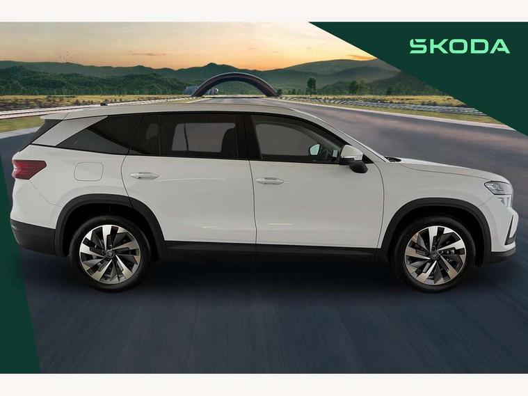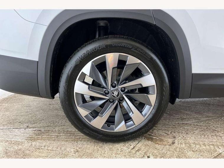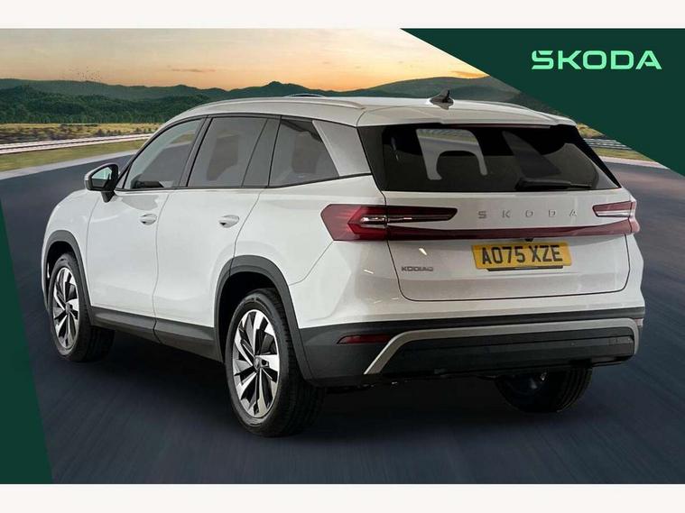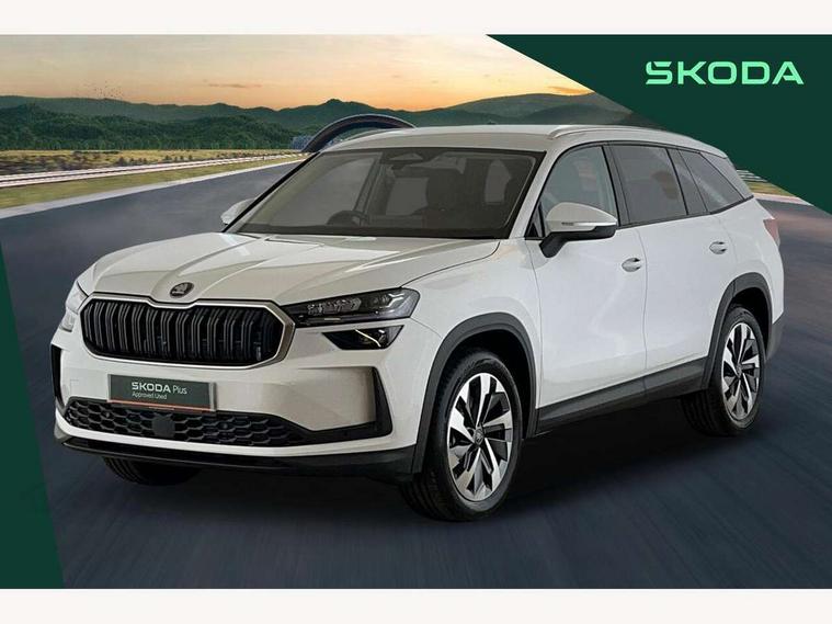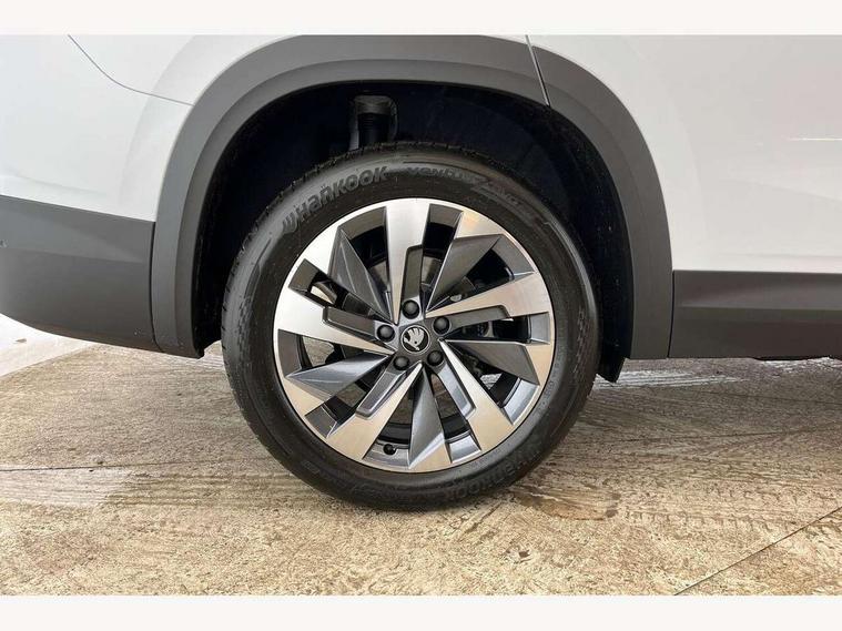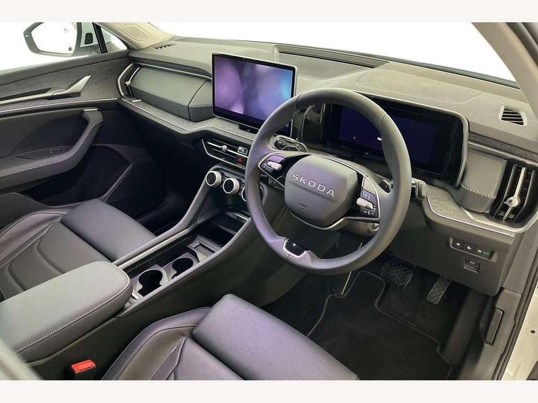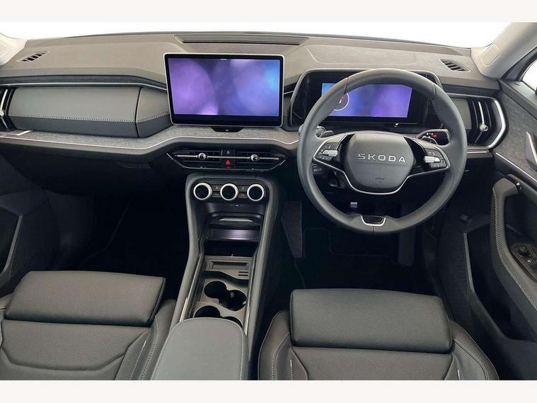 13" satellite navigation touchscreen display, Blind spot detection with door exit warning, Bluetooth system, ChatGPT functionality, Driver alert - Fatigue and drowsiness monitor, Dry display cleaner, Emergency call, Front and rear parking sensors, Front cross traffic assist, Lane assist, PAS, Rear traffic assist, Tailgate unlocking from outside, Traffic sign recognition, USB C Port x 2 in front centre console, Virtual Cockpit - 10.25" digital display, Voice control system, Wireless charging for two smartphones (15W) with cooling function, Wireless SmartLink for Apple CarPlay and Android Auto, Stop/start function, 2x USB-C in the rear, DAB Digital radio, Aero front windscreen wipers with intermittent function, Auto dimming rear view mirror, AWL (all weather lighting) and all weather light with cornering function, Black wheel arch surrounds, Body colour bumpers, Body colour door mirrors and handles, Cornering light and poor weather light, Electric folding /adjustable/separted heated/folding door mirrors, auto dimming with boarding sports and memory function, Electric front and rear windows, Exterior black decorative trims, Front grille with horizontal light strip, Heat insulating glass in windshield, Heated rear window, Ice scraper in fuel tank cap, Invisible tailpipe, LED daytime running lights, LED matrix headlights with AFS and LED fog lights, LED rear light with welcome effect and dynamic turn signals, LED third brake light in rear spoiler, Light assistant with automatic headlight control and coming home feature, Logo projection in door mirrors, Multiple matrix beam, Privacy glass, Rear roof spoiler, Rear side wing doors, Rear window wiper, Red decorative strip between rear LED lights, Safety reflectors on front and rear doors, Unique dark chrome design logo on alloy wheels, Window control switches with black trim, Windscreen wipers with rain sensor, Without engine designation, 1.5l bottle holder points in all door, 1x centre rear reading light, 2 seat bench in 3rd row, 2 spoke multi-function leather heated steering wheel with paddle shift, 3 configurable smart dials with 32mm coloured display, 3 seat bench in 2nd row, 4 foldable roof handles with rear coat hooks, Ambient interior lighting - Dashboard, front-door stowage compartments, front and rear door panels and footwell lighting, Automatic gear selector on steering column, Chrome interior door handles, Driver/front passenger reading lights, Fabric headlining, Fixed bench 40:60:40 split folding backrests, Front and rear floor mats, Front centre armrest with jumbo box storage compartment, cup holder and 12V socket, Height adjustable front headrests, Isofix child seat fittings in outer middle row rear seats and front passenger with top tether, Manually adjustable steering column, Pollen filter, Rear centre armrest with cupholders, Rear seat boot backrest release, Single front passenger seat, Skoda lettering on steering wheel, Storage pocket including mobile phone pockets on the backs of the front seats, Sunvisors with illuminated vanity mirrors, Three rear height adjustable headrests, Ticket holder on A Pillar, Tri zone climate control, Umbrella in door panel x1 made from sustainable materials, Upper and lower glovebox with card holder and coin compartment, USB C port by rear view mirror for charging only (15W), Exterior styling pack - Kodiaq, Auto door release and activation of warning lights in the event of an accident, Driver and front passenger airbag with knee airbag and front passenger airbag deactivation, Electric child locks, Electronic parking brake, ESC (incl. ABS+EMD+MSR+ASR+EDL+HBA+DSR+RBS+ESBS+MCB+TSA+XDS), Front assist with braking reaction to vehicles, pedestrians and cyclists, Front disc brakes, Fuel cut off safety device, Height adjustable front 3 point seatbelts + pretensioners, Hill hold assist, Junction assist with automatic emergency braking, Rear disc brakes, Safety vest holder in door, Seat belt reminder for all seats, Three point rear seat belts, Two tone horn, Tyre pressure monitor, Anti-theft wheel bolts, Immobiliser, Remote central locking with 2 keys,