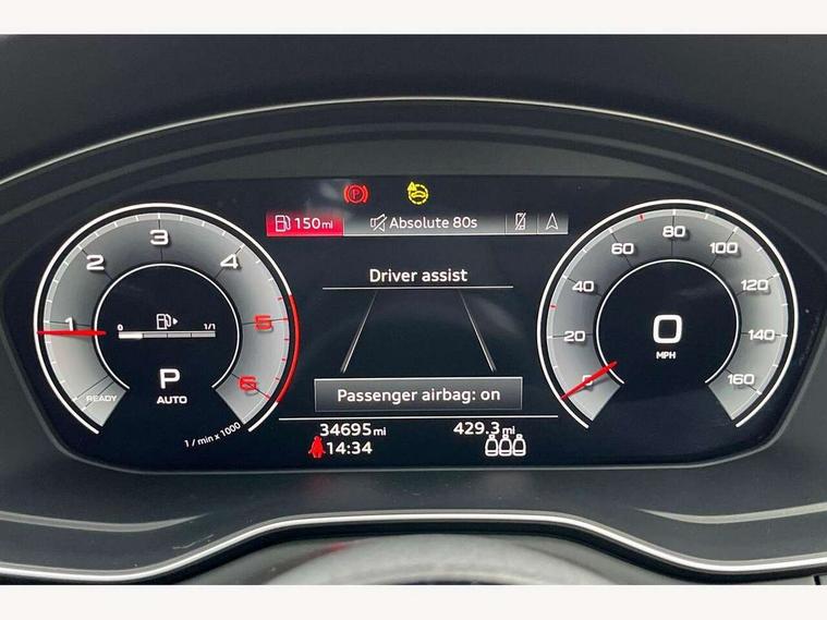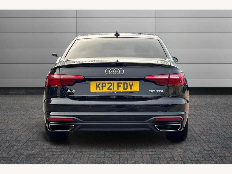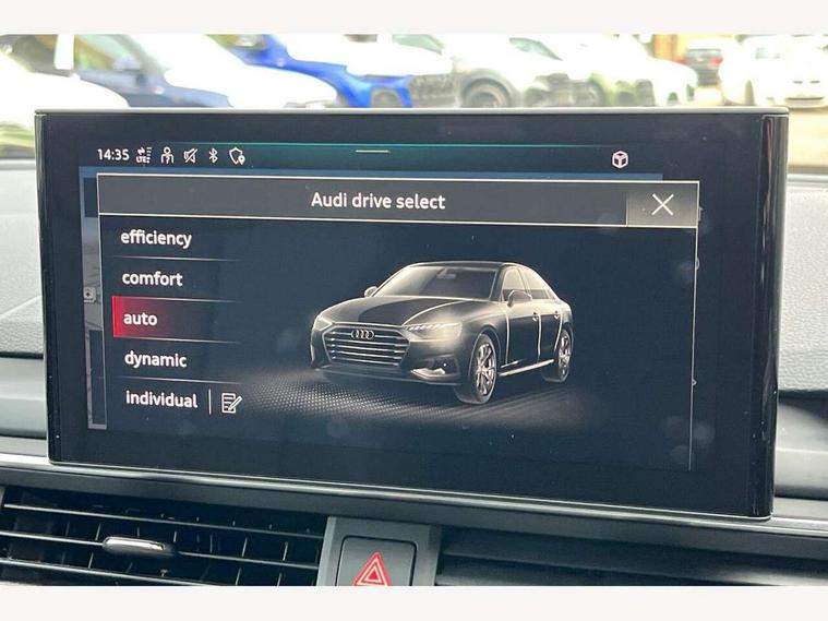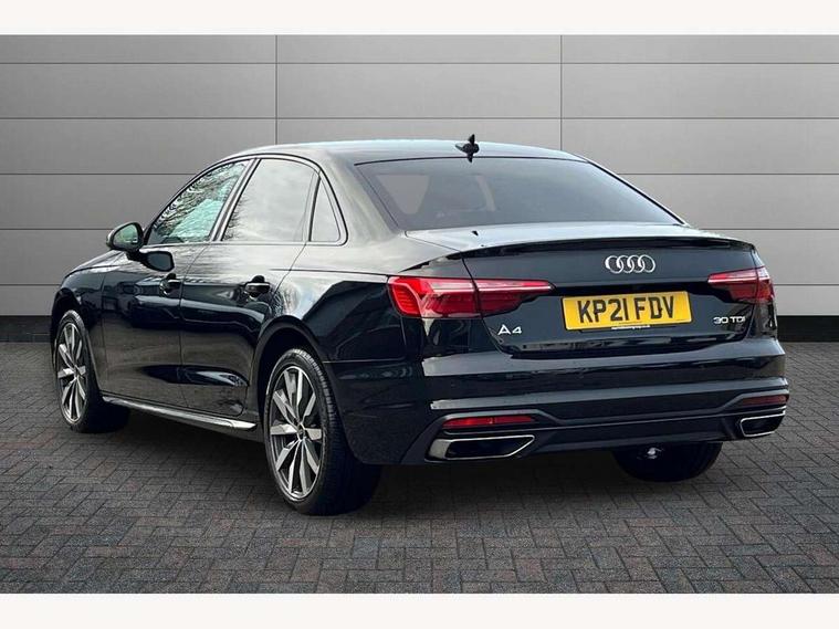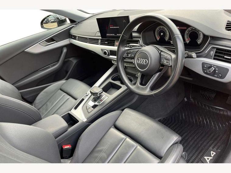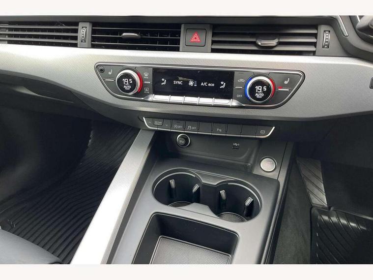 Audi connect safety and service (e-call), Audi drive select, Audi parking system plus with front and rear sensors, Audi smartphone interface, Audi virtual cockpit, Automatic start-stop system with coasting functionality and efficiency programme, Bluetooth interface, Cruise control system with speed limiter, Electric boot lid release, Electromechanical power steering, MMI Navigation plus with MMI touch includes 10.1" high resolution colour MMI display, 3D map, Rear view camera, Voice control system, Comfort dynamic suspension, 2 USB charging ports, 8 passive loudspeakers, DAB digital radio reception, Auto dimming rear view mirror, Body colour door handles, Body colour side sill trim, Body coloured door mirrors, Electrically folding auto dimming/adjustable/heated door mirrors with LED side indicators and kerb view function for passenger side, LED headlights and rear lights with LED daytime running lights, Matt aluminium silver tailpipe trim, Privacy glass, Rain and light sensors, Rear diffuser in matt titanium black with trim strip in matt aluminium silver, Sport front and rear bumpers with side skirts, Windscreen with acoustic glazing, 3 spoke high multi-function leather sport steering wheel with paddle shift and height and reach adjustable, 4 way electric lumbar support for driver and front passenger, 40/20/40 split folding 3 rear seat bench in 3 parts with rear centre armrest, Deluxe 3 zone electronic climate control, Door sill trims with aluminium inlay, Front and rear head restraints, Front centre armrest, Heated front seats, ISOFIX child seat mounting and top tether, Manual seat adjustment, Twin leather upholstery + front sports seats, High gloss package - A4, LED Interior light pack - A4/S4, Titanium black styling pack - A4 Saloon, 3 rear seatbelts, 6 airbags - Driver, front passenger, curtain and side windows, Electronic Stabilisation Control (ESC) including ABS, ASR and EDL, Hill hold assist, Multi collision brake assist, Pop-up bonnet for pedestrian protection, Pre sense city, Seatbelt monitoring, Warning triangle and first aid kit, Anti theft alarm, Anti theft wheel bolts, Keyless Go, Aluminium ellipse silver inlays, 18" 10 spoke dynamic design alloy wheels, Tool kit, Tyre repair kit,