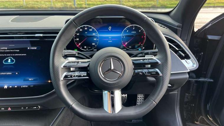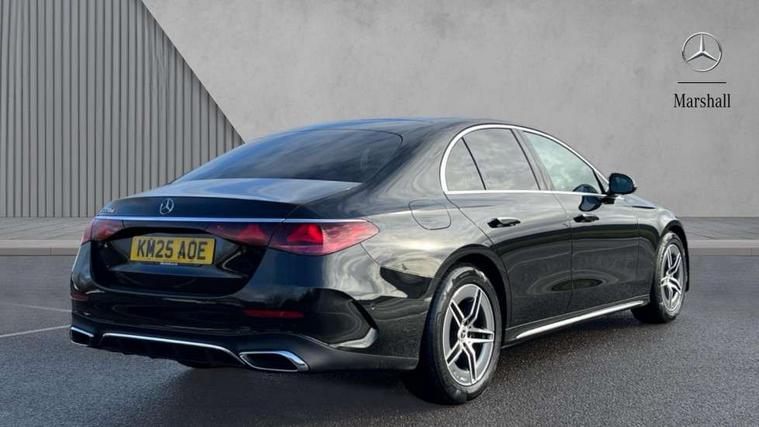 12.3" high resolution cockpit display, 14.4" high resolution central media display with latest MBUX generation, 5G Communications module, Active lane keeping assist, Attention assist, Blind spot assist, Bluetooth, Brake wear warning display, Direct steer speed sensitive steering, ECO start/stop function, Evasive manoeuvre support, Fingerprint scanner, Fluorescent jacket for driver, Hard disc navigation, MBUX augmented reality for navigation, MBUX navigation premium, MBUX voice control, Mercedes me connect including emergency call system, accident recovery, breakdown and maintenance management, Outside temperature display, Preinstallation for live traffic, Remote Services Premium, Service indicator (ASSYST), Status display for rear seat belts in instrument cluster, Traffic sign assist, Trip computer in multifunction display showing current fuel consumption, Wireless charging, Wireless smartphone integration with Apple CarPlay and Android auto, 48V Mild hybrid technology, 66 litre fuel tank, 9G TRONIC automatic transmission, Agility control suspension with selective damping system and lowered by 15mm, Bluetec emission control, Diesel particulate filter, Integrated starter generator Gen 2, Sporty engine sound system, DAB Digital radio, Preinstallation for MBUX Entertainment Plus, 3rd brake light, Adaptive brake lights, Aerial integrated in rear window, AMG Line exterior, Auto dimming driver's door mirror, Auto dimming rear view mirror, Digital air vent control, Electric folding door mirrors, Electric windows with one touch opening/closing and obstruction sensors, Electrically adjustable and heated door mirrors, Heat insulating privacy glass, Illuminated radiator grille, LED daytime running lights, LED high performance headlights with adaptive highbeam assist, Pre-installation for roof rail systems, Rear boot, Rear side wing doors, Surround lighting with logo projection, 3 seat bench in 2nd row, 4 way lumbar support, Ambient lighting, AMG brushed stainless steel sports pedals with rubber studs, AMG floor mats, AMG line interior, Automatic child seat recognition sensor, Central stowage compartment with USB socket for use with Android Auto and Apple CarPlay, Climatised front seats, Comfort seats, Courtesy lights in rear grab handles with reading light functionality, Folding rear seat backrest, Front centre armrest with stowage compartment, Gearshift paddles in galvanised silver, Glove compartment - lockable, air conditioned and illuminated, Head restraints for driver and front passenger (four-way adjustability) and in rear (two-way), Heated front seats, Instrument panel and door beltlines in artico nappa look leather, Leather upholstery, Multifunction sports steering wheel in nappa leather, Roof liner in black fabric, Seat occupancy sensor for front passenger seat, Single front passenger seat, Steering wheel touch control buttons for audio and onboard settings, Sunvisors with illuminated vanity mirrors, THERMATIC 2 zone automatic climate control, Night pack - E class, Parking package with 180 degree camera - E Class, USB plus package - E Class, 3x3 point rear seatbelts, Active bonnet pedestrian safety measure which detects an impact and raises bonnet, Adaptive brake system with HOLD function and brake drying in the wet, Anti-lock braking system (ABS), Automatic front passenger airbag deactivation, Central airbag, Childproof locks manually operated for rear doors and electrically operated for rear power windows, Driver and front passenger airbags, Electronic parking brake, Electronic Stability Programme, Hill start assist, ISOFIX child seat attachment points two outer rear seats, Knee airbags, Pedestrian protection, Pre-Safe anticipatory safety system, Tyre pressure monitoring system, Warning triangle and first aid kit, Window airbags, Alarm system/interior protection/immobiliser, Central locking with interior switch, automatic locking and crash sensor with emergency opening function, Dashcam, Guard 360 degree vehicle protection, Increased anti theft protection, Keyless Go, Urban guard vehicle protection plus, Centre console trim in open pore black ash wood, Dash trim in open pore black ash wood with backlit laser cut Mercedes-Benz star pattern, 19" AMG 5 twin spoke design alloy wheels with black painted inserts and high sheen finish, Summer tyres, TIREFIT with tyre inflation compressor,