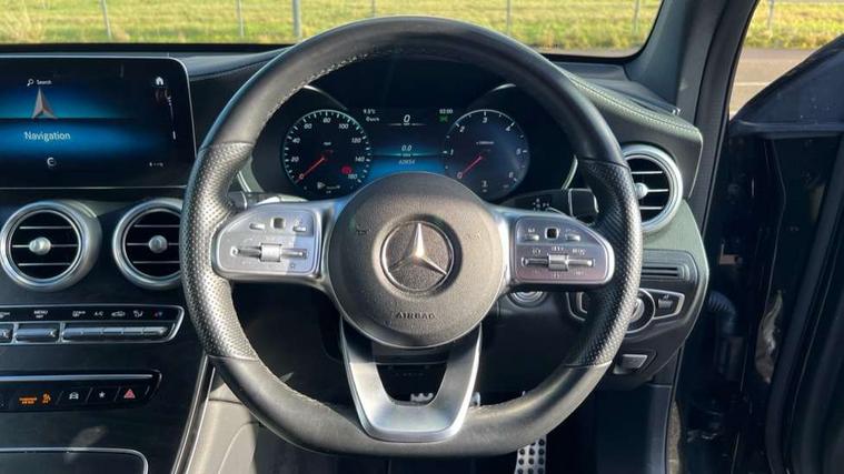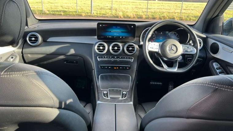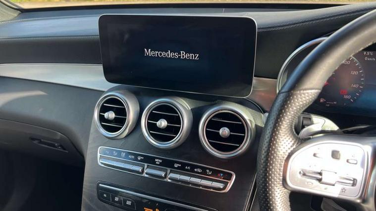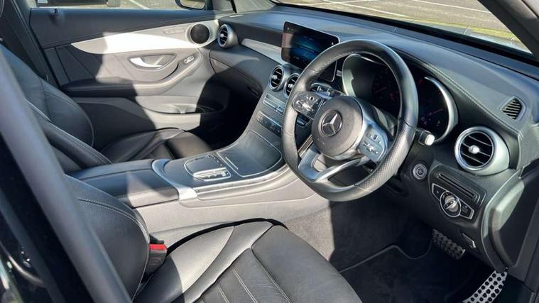 Active parking assist with parktronic system, Attention assist, Bluetooth interface for hands free telephone, Collision prevention assist plus, Cruise control with speedtronic variable speed limiter, Direct steer speed sensitive steering, DYNAMIC SELECT with a choice of driving modes (ECO, Comfort, Sport, Sport+ and Individual), Easy pack automatic powered tailgate, ECO start/stop function, Hard disk navigation, Hey Mercedes Voice activation, Instrument cluster with12.3-inch digital instrument cluster display. High resolution instrument cluster screen with choice of three display styles, MBUX Interior assistant, Mercedes connect me with remote online services, Multi function trip computer, Outside temperature display, rear seatbelt status indicator, Remote boot release, Reversing camera, Service indicator (ASSYST), Smartphone integration with Apple CarPlay and Android auto, Traffic sign assist, 4MATIC permanent four wheel drive, 66 litre fuel tank, 9G TRONIC plus automatic transmission with steering column gear selector, DIRECT SELECT steering wheel gearshift paddles, Diesel particulate filter, Sports suspension tuned for improved handling and driving dynamics, 5 speakers, Frontbass loudspeakers, MBUX multimedia system with DAB digital radio and touchpad, Media display 10.25-inch touchscreen display, Pre installation for Mercedes Benz Link, USB ports x 2 in centre console, Adaptive brake lights, Aluminium roof rails, AMG bodystyling - AMG front apron with sporty air intakes and chrome trim element, AMG diffuser-look rear apron with insert in black, Body colour door mirrors, Body coloured bumpers, Electric windows one touch open/close, Electrically adjustable and heated door mirrors, Front, side and rear exterior chrome trim, Headlamp assist automatic headlamp activation, High level LED brake light, LED high performance headlamps with integrated LED daytime running lights, LED tail lamp, Motor way mode function and locator lighting, Privacy glass with dark glass from B pillar backwards, Radiator diamond grille, Rain sensor windscreen wipers, Range adjustable headlights, Rear side wing doors, Rear wiper, Roof spoiler, Running boards, Tinted glass all round with single layer safety glass, Tinted rear windows, Two chrome plated tailpipe trim elements, Variable front intermittent wipers, 2 way rear head restraints, 3-spoke multifunction sport AMG steering wheel in black nappa leather with flattened bottom section, chrome insert and perforated leather in grip area, 40:20:40 split folding rear seats, Ambient lighting, AMG floor mats with edging and embroidered AMG lettering, AMG sports seats, Artico man-made leather upper dashboard with contrast topstitching, Automatic child seat recognition sensor, Black roof lining, Dividing net - rear, Double cup holder in centre console, Easy-pack removable load compartment cover, Front armrest with storage box, Front door sills with Mercedes Benz lettering, Front head restraints, Front seats with electric adjust (backrest, height and seat cushion inclination) with 4 way electric lumbar support and manual cushion depth adjust, Heated front seats, Height/reach adjustable steering column, Illuminated and lockable glove compartment, Leather upholstery, Rear top tether child seat ISOFIX attachment, Sports pedals with stainless steel surfaces and rubber studs, Steering wheel with touch control buttons, THERMOTRONIC 3 zone automatic climate control, Interior lighting pack - GLC, Mirror pack - GLC, Storage pack - GLC, 3 rear 3 point seatbelts, Active bonnet, Adaptive brake system with HOLD function and brake drying in the wet, ASR, Black seat belts, Brake calipers with Mercedes-Benz lettering + perforated brake discs, Child proof door locks, Dual-stage airbags - driver and front passenger, driver knee bag and window bags for driver, front passenger and rear passengers, Electronic parking brake, Electronic stability programme (ESP) with curve dynamic assist and cross wind assist, Front and rear seatbelt reminder, Front passenger seat occupancy sensor, Hill hold function, Tyre pressure monitoring system, Warning triangle and first aid kit, Alarm system/interior protection/immobiliser, Automatic door locking, KEYLESS-GO starting function, Remote central locking, Open pore black ash wood trim, 20" AMG multi spoke design alloy wheels painted in titanium grey with high sheen finish, Run flat tyres, Summer tyres,