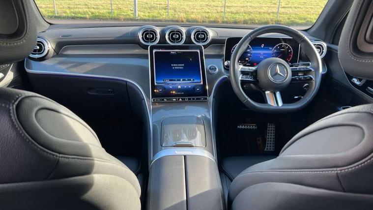 11.9" high resolution multimedia colour display, 12.3" Digital individually configurable instrument display, Acoustic presence indicator, Active lane keeping assist, Attention assist, Blind spot assist, Bluetooth interface for hands free telephone, Collision prevention assist plus, Cruise control with speedtronic variable speed limiter, Dashcam - front camera for video recording, Direct steer speed sensitive steering, DYNAMIC SELECT with a choice of driving modes (ECO, Comfort, Sport, Sport+ and Individual), eCall emergency call system, ECO start/stop function, Fingerprint scanner, Fluorescent jacket for driver, Hard disc navigation, Instrument display in miles with English lettering, MBUX augmented reality for navigation, MBUX navigation premium, MBUX voice control activated by keywords "Hey Mercedes", Mercedes me connect, Outside temperature display, Remote boot release, Remote services, Road sign recognition system, Service indicator (ASSYST), Smartphone integration, Status display for rear seat belts in instrument cluster, Traffic sign assist, Trip computer, Wireless charging, 48V Mild hybrid technology, 4MATIC permanent four wheel drive, 62 litre fuel tank, 9G TRONIC plus automatic transmission, Petrol Particulate Filter (PPF), Sport suspension, DAB digital radio tuner, MBUX extended functions, Mercedes benz sound system, Pre installation for Mercedes Benz Link, Adaptive brake lights, Adaptive high beam assist plus, Aluminium look running boards with rubber studs, Aluminium roof rails, AMG bodystyling front apron, rear apron and side skirts, AMG Line exterior, Auto headlights, Body colour bumpers, Body colour door mirrors, Digital light LED headlights, Electrically adjustable door mirrors, Front and rear electric windows, Headlight washers, Heat insulating dark tinted glass, Heated rear window, High level LED brake light, Integrated LED daytime running lights, LED indicator lights, LED rear fog lights, LED tail lamp, Motor way mode function and locator lighting, Noise acoustic glass, Radiator grille with Mercedes Benz pattern and integreated Mercedes star and louvre in dark grey matt with chrome inlay and black frame, Rain sensor windscreen wipers, Range adjustable headlights, Rear side wing doors, Rear wiper, Transparent Bonnet, Two chrome plated tailpipe trim elements, Variable front intermittent wipers, Welcome and follow-me home light functionality, Wider wheel arch for AMG wheels, 3 seat bench in 2nd row, 40:20:40 split folding rear seats, Ambient lighting premium, AMG line interior, Artico man-made leather upholstery, Audio and onboard settings control on multifunction steering wheel, Automatic child seat recognition sensor, Black fabric roof lining, Black floor mats with AMG lettering, Double cup holder in centre console, Easy-pack removable load compartment cover, Electrically height/reach adjustable steering column, Front centre armrest with stowage compartment, Front head restraints, Galvanised steering wheel gearshift paddles, Heated front seats, Illuminated door sill panels with Mercedes Benz lettering, Illuminated glove compartment, Instrument panel and beltlines in ARTICO manmade leather in nappa look, Multifunction sports steering wheel in nappa leather, Rear centre headrest, Rear head restraints, Rear top tether child seat ISOFIX attachment, Single front passenger seat, Sports pedals with stainless steel surfaces and rubber studs, Sports seats, Sun visors, THERMATIC 2 zone automatic climate control, Anti theft protection package - GLC, Boot comfort package - GLC, Exterior chrome package - GLC, Interior chrome package - GLC, Interior lighting pack - GLC, Keyless-Go comfort package - GLC, Memory pack - GLC, Mirror pack - GLC, Parking package with 360 degree camera - GLC, Seat comfort package - GLC, Stowage space package - GLC, USB Plus Pack - GLC, 3 rear 3 point seatbelts, Active braking assist, Anti-lock braking system (ABS), ASR traction control, Automatic front passenger airbag deactivation, Black seat belts, Brake calipers with Mercedes-Benz lettering + perforated brake discs, Braking system with larger brake discs on the front axle, Child proof door locks, Dual-stage airbags - driver and front passenger, driver knee bag and window bags for driver, front passenger and rear passengers, Electronic parking brake, Electronic stability programme (ESP) with curve dynamic assist and cross wind assist, Front and rear seatbelt reminder, Front passenger seat occupancy sensor, Front seatbelt pretensioners, Hill start assist, Tyre pressure monitoring system, Warning triangle and first aid kit, Automatic door locking, Guard 360 degree vehicle protection plus, Interior protection/immobiliser, Remote central locking, Centre console in metal structure finish, Metal structure trim, 20" AMG 5 spoke aerodynamically optimised light alloy wheels in painted black with high sheen finish, Summer tyres, TIREFIT with tyre inflation compressor,