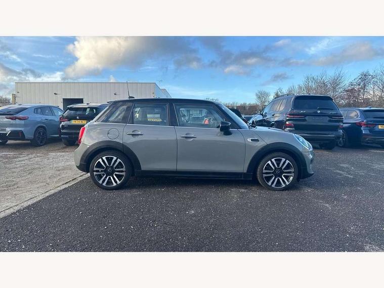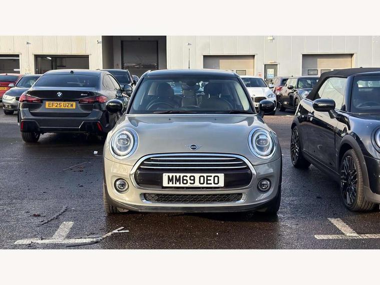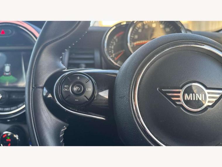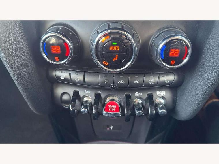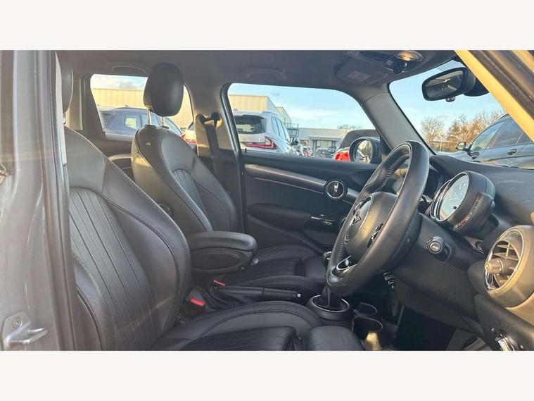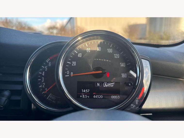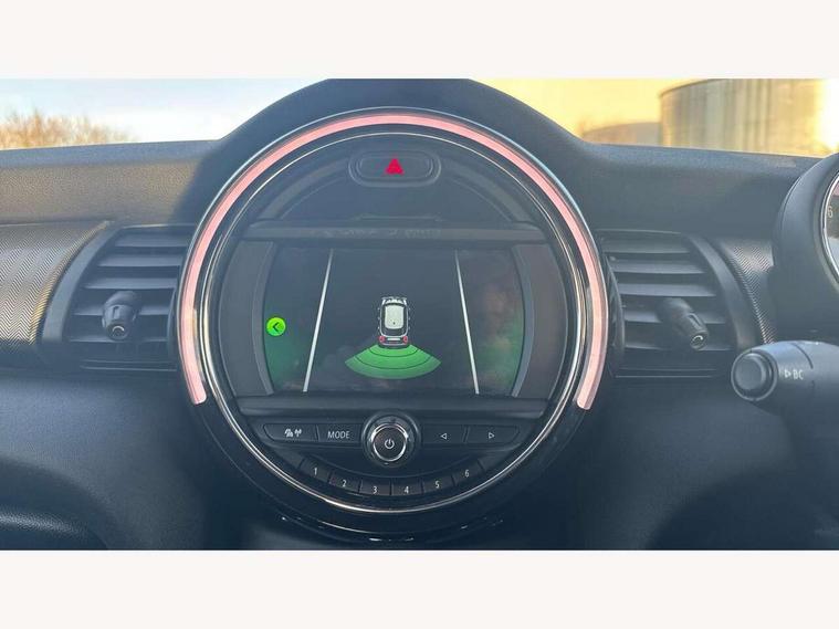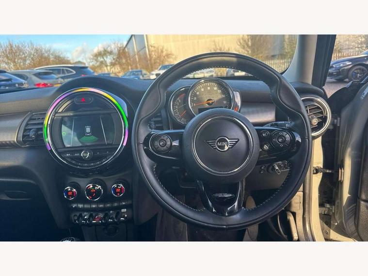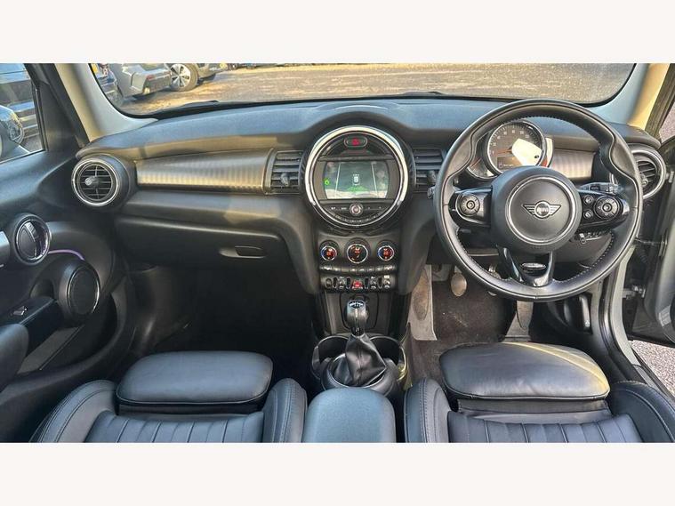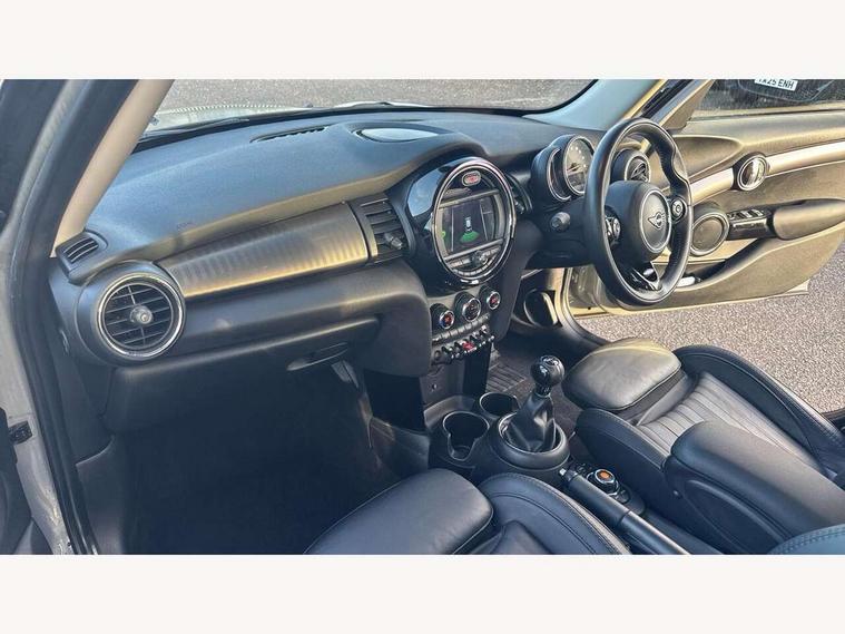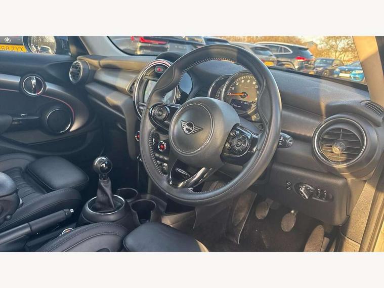 Automatic start/stop function with brake energy recuperation, Compatible mobile phone bluetooth with audio streaming, Electro-mechanical speed dependant steering assistance, Instrument cluster, Mini E-call, MINI TeleServices, On board computer, Service interval indicator, Double Vanos system, Fully variable valve control, High precision injection, 6.5" touchscreen with LED ring, FM tuner and DAB digital radio, Automatic headlight activation switch, Body colour fuel filler cap, Chrome border high gloss black slats radiator grille, Chrome line exterior, Dynamic brake lights, Electric front+rear windows, Heated rear window, Heated windscreen washer jets, LED headlight with closed ring and daytime driving lights, Left exhaust tailpipe with chrome finisher, Metal door sill strips with MINI imprint, Model logo Cooper on right of tailgate, Radiator grille bars, tailgate handle, lower front grille grating, rear central fog light in chrome, Rain sensor window wipers, Rear fog lights, Rear LED lights with union jack design, Rear window wiper, Side scuttle panel with integrated indicator, Sun/heat protection glass, White indicator lenses, 12V Accessory socket in centre console, 4 lashing eyes in luggage compartment, 60/40 split folding rear seat, Air vents, gear lever base, speakers in doors, door handles in chrome, Chrome interior highlights, Cupholders, Front and rear head restraints, Front and rear isofix with front passenger airbag deactivation, Glove compartment, Height and length steering column adjustment, Interior lighting with 12 basic colours selectable via toggle switch in roof, Leather gearshift lever and handbrake gaiters, LED reading lights, vanity mirror lights, front foot well light and spotlight on front seats, Manual air conditioning, Mechanical seat adjustment, driver seat height adjust, forward/back and front seats backrest, Mini logo projection on floor from drivers exterior mirror, MINI Yours leather steering wheel with silver contrasting stitching with MINI Yours badge, Multifunction steering wheel, Storage compartments in doors, Sunvisors with vanity mirrors, 3 point seatbelts on all five seats, 6 Airbags - front, side, head and seat belt tensioners, Anti-lock braking system (ABS), DSC - Dynamic Stability Control, Front and rear disc brakes, Hill start assist, Single tone fanfare horn, Tyre pressure monitoring system, Alarm system with tilt sensor, monitoring doors, bonnet interior and tailgate, Electronic vehicle immobiliser, Start/stop toggle with keyless go, Chrome line interior, Tool kit,