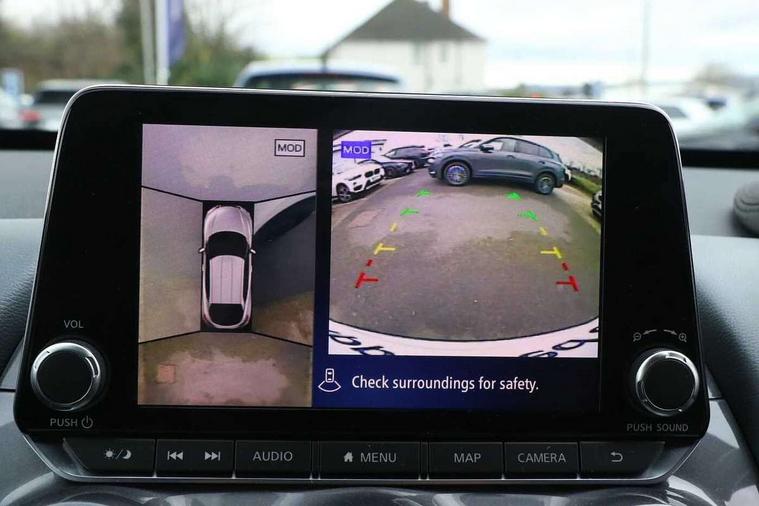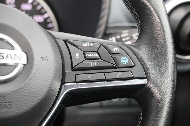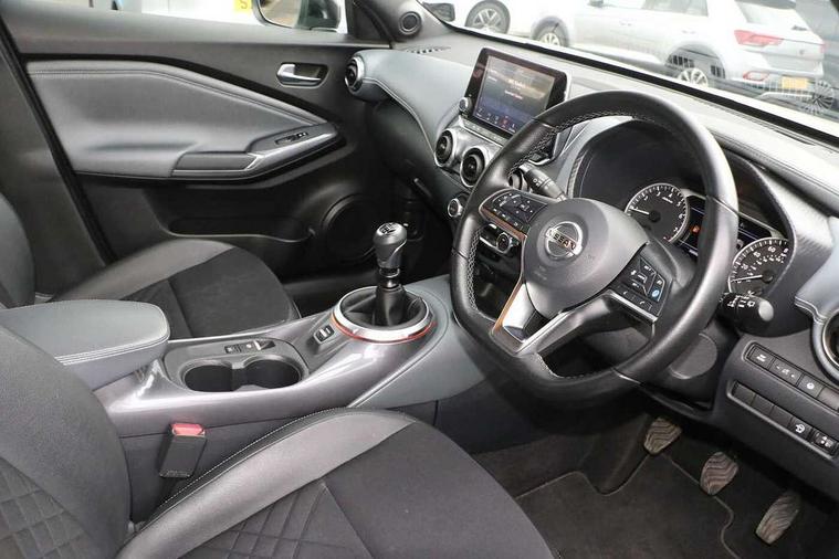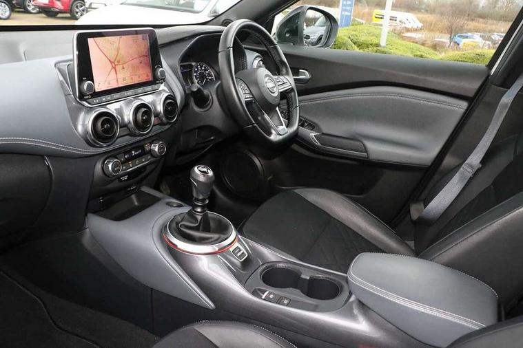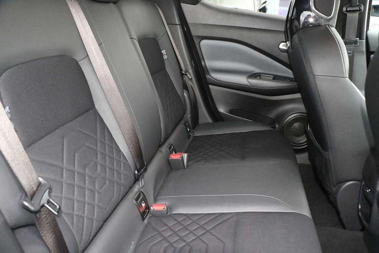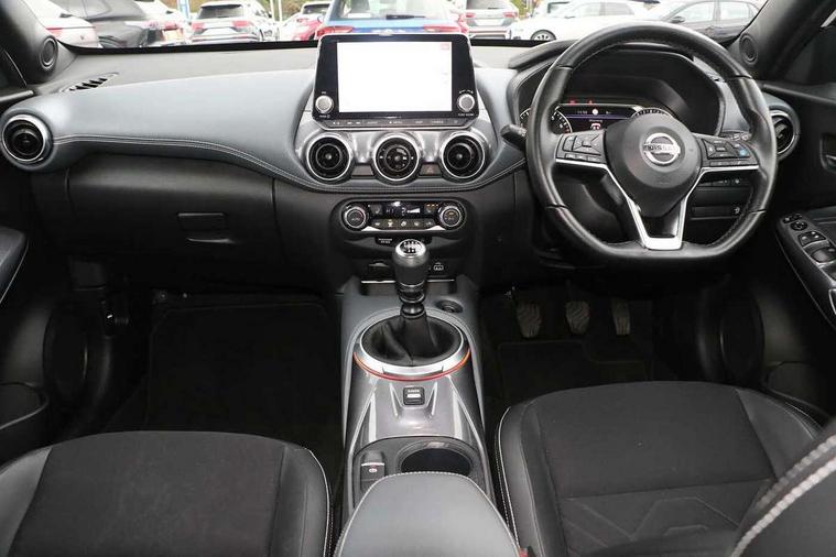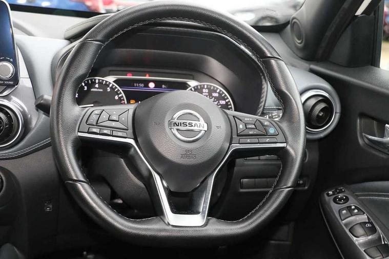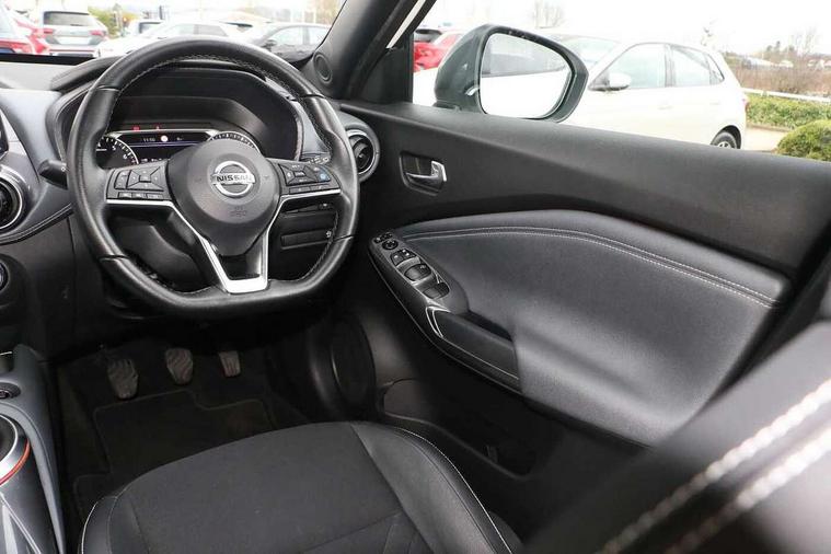 7" full colour TFT screen combimeter, Apple CarPlay and Google Android auto, Drive modes select (Eco, normal and sport), eCall emergency call system, Emergency and breakdown call, Front parking sensor, Idle start/stop system, Intelligent lane intervention, Lane departure warning system, Nissan connect 8" touch screen entertainment system, Nissan connect nav with TomTom traffic, Nissan connect services and Wifi connection, Outside temperature sensor, Power Steering, Rear parking sensor, Traffic sign recognition, Trip computer, Voice recognition, Gasoline particulate filter, Bluetooth system, USB, Aux-in and 12V socket, Bose personal plus audio system with 8 speakers(4 speakers and 2 headrest speaker for driver and passenger seats), Bose personal sound stage control, DAB Digital radio, Rear console USB port, Auto dimming interior rear view mirror, Auto headlights, Automatic hazard signal with emergency stop signal, Body colour bumpers, Body colour door handles, Electrically adjustable door mirrors with integrated indicators, Follow me home headlights, Front and rear electric window with one touch driver window, Heated and auto folding door mirrors, High beam assist, LED daytime running lights, LED front fog lights, LED headlamps, LED rear fog lamp, LED rear lamps, Rain sensor windscreen wipers, Rear privacy glass, Rear side wing doors, Rear wiper, Thermaclear heated windscreen, Three blink turn signal, 3 height adjustable rear headrests, 3 seat bench in 2nd row, 60/40 split folding rear seat, Automatic climate control, Card holder on driver sunvisor, Cloth/Synthetic leather upholstery, Door ambient lighting, Driver and passenger sliding and reclining seats, Driver seat back pocket, Driver side rear coat hanger, Driver/passenger sunvisors and vanity mirrors, Front and rear cabin lights, Front armrest, Front door pockets with bottle holders, Front head restraints, Front passenger isofix child seat anchorage point, Front/rear passenger grab handles, Gear console ambient circle lighting, Grey synthetic leather kneepad, Heated front seats, Height adjustable driver's seat, Height adjustable passenger seat, Internal chrome door handles, Leather gearshift knob, Leather steering wheel, Luggage board, Luggage space lighting, Monoform sporty seats, Multifunction steering wheel, Passenger seat back pocket, Rear door bottle holders, Single front passenger seat, Telescopic steering wheel adjustment, Two cupholders in front centre console, Two rear isofix child seat anchorage points with top tether, Welcome light and console tray ambient lighting, Advanced safety shield pack - Juke, ABS with EBD and brake assist, Active ride control, Active Trace Control, Driver and passenger airbags, Driver and passenger side airbags, Electric handbrake with auto hold function, Electronic Stability Programme (ESP), Front and rear curtain airbags, Height adjustable seatbelts, Hill start assist, Intelligent emergency braking with pedestrian and cyclist recognition, Rear door child safety locks, Seatbelt reminder for driver/front passenger and rear seats, Single tone horn, Three 3 point rear seatbelts, Traction control, Tyre pressure monitoring system, VDC Dynamic Vehicle Control, Ventilated rear brake discs, Alarm, Immobiliser, Intelligent Key with push button starter, Remote central locking,