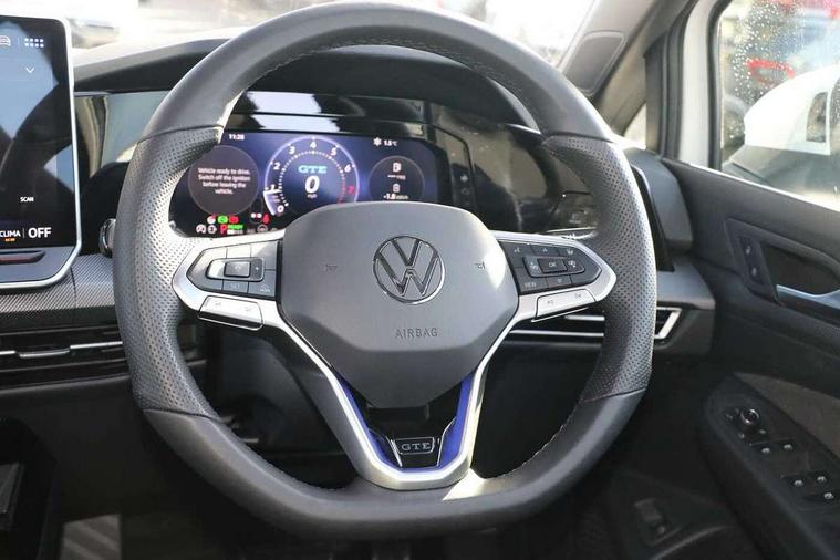 Activated carbon canister, Adaptive cruise control (ACC), Advanced driver attention and drowsiness monitor, Dynamic road sign display, Dynamic steering, E-Sim card for online connectivity, eCall emergency call system, Multi-color Digital cockpit pro, selection of different info profile possible, Multifunction front facing camera for distance control, Navigation system, Oncoming vehicle braking when turning including swerve support, Side assist blind spot lane change system, rear traffic alert and exit warning system, Speed limiter, Speedo, rev counter, electronic odometer, trip, service interval display, exterior temperature and fuel gauge, Traffic jam assist, Voice enhancer and voice control, Warning signal and warning light for front and rear seatbelts not fastened, We connect plus preparation, We connect preparation, Wireless app connect, Charging cable Mode 2 Type 2 (10A), Charging cable mode 3, type 2 32 A, Electric motor (hybrid electric vehicle) total system output 200kw, unit OEK A, Hybrid propulsion system, Start-stop system with battery regeneration (recuperation - energy recovery during braking), XDS electronic differential lock for improved traction and handling, 2 USB C ports in front, 2 USB charging sockets on the centre console in the rear charging capacity upto 45W, 6 Speakers - 4 in front and 2 in rear with central speaker, Digital radio reception (DAB), Diversity antenna for FM reception, Gaming platform via car app, Infotainment system with 12.9" display, Mobile phone interface with inductive charging feature, 3rd brake light, Auto dimming rear view mirror, Automatic headlamp activation with Coming home and Leaving home feature, Body colour door handles, Body coloured bumpers, air intake in honeycomb structure, Exterior mirrors convex on the left and aspherical on the right, Front and rear electric windows, Front fog lamps and cornering light, Heat insulating windshield made of laminated glass, Illuminated lighting animation with wake up/goodbye scenario, LED separate daytime running light, Nameplate 'GTE' set, Rain sensor, Rear exhaust tailpipe, Rear fog light on one side and reversing lights on both sides, Rear side wing doors, Rear windscreen washer and wiper with interval delay, Remote electrically foldable door mirrors, puddle lights and reverse activated passenger's door mirror, Welcome light with surround lighting, 12V socket in front centre console, 12V socket in luggage compartment, 3 rear head restraints, 3 seat bench in 2nd row, 30 colour ambient lighting, illuminated center console storage compartment in front, Air care climatronic 3 Zone automatic climate control with rear air conditioning control panel, Aluminium gearshift handle, Brushed stainless steel pedals, Chrome plated radiator grille inserts, air vent surrounds and light switch surrounds, Entry lights, Front + rear black carpet mats, Front centre armrest, ISOFIX anchors for child seats on outer rear bench seats and on front passanger seat compatible for i-Size, Luggage compartment lighting, Rear cupholder and loadthough, Single front passenger seat, Soul black instrument panel, Soul black roof lining, Split folding backrest with centre armrest and unsplit rear seat bench, Sun visors with illuminated vanity mirrors, Driver assistance pack - Golf Estate/Hatchback Auto, Technology park and comfort pro package - Golf Hatchback, 3 point height adj front seatbelts + pretensioners, 3 rear three point seatbelts, ABS, Autonomous emergency braking front assist with pedestrian and cyclist monitoring, Child locks on rear doors, Driver and front passenger airbag with front passenger airbag deactivation, Electronic parking brake with auto hold, ESC (Electronic Stability Control), Extended pedestrian protection measures, Hill start assist, Rear disc brakes, Two tone horn, Tyre pressure loss indicator, Volkswagen roadside assistance, Anti theft wheel bolts, Preparation for alcohol interlock, Decorative inserts carbon grey for dashboard and front door trim panels, Sporty vehicle dynamics, Tool kit for tyre mobility set, Tyre mobility kit Includes 12V compressor and tyre sealant,