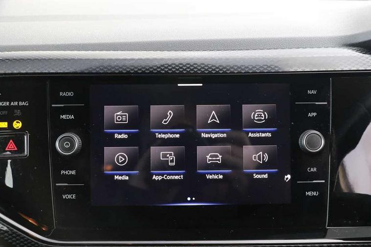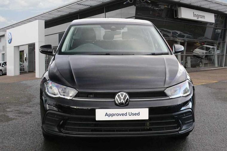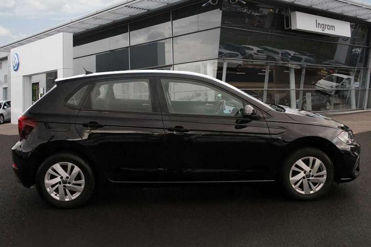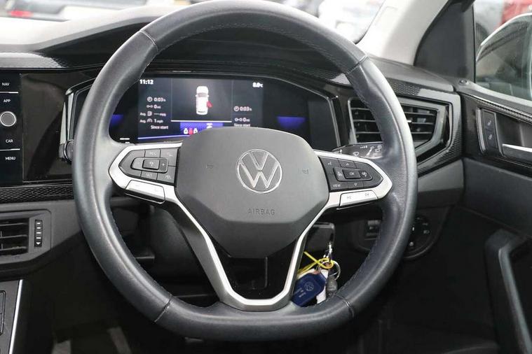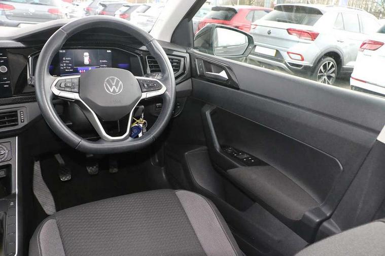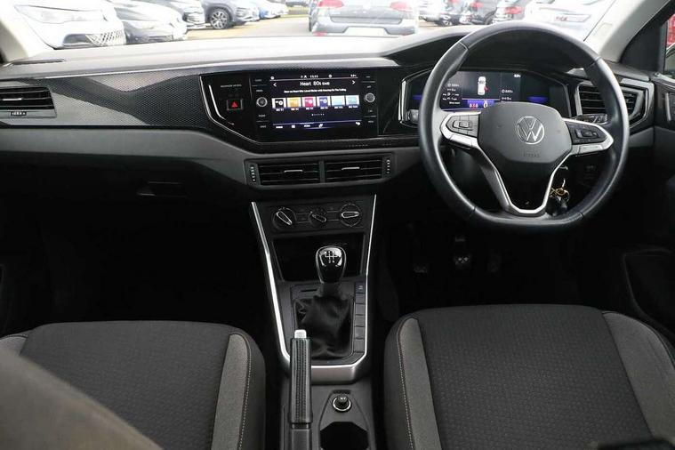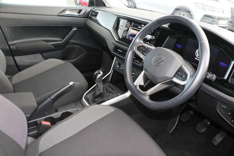 Adaptive cruise control without follow-to-stop and speed limiter, Bluetooth mobile phone interface, Driver alert system, Emergency call service, Front assist system, Power assisted speed sensitive steering, Preparation for We connect and We connect plus, Speedo and rev counter, electronic odometer, trip, service interval display and fuel gauge, Standard rear axle, Travel Assist - Lane keeping system and traffic jam assist, Travel assist including emergency assist, Trip computer, Warning signal and warning light for front and rear seatbelts not fastened, Washer fluid level indicator, Wireless app connect, Front wheel drive, Rear shock absorpion, Start-stop system with battery regeneration (recuperation - energy recovery during braking), DAB Digital radio, Diversity antenna for FM reception, Automatic dimming interior rear view mirror, Body colour bumpers, Body colour door handles, Body colour door mirrors, Electric front windows, Heat insulating darkened glass in side and rear windows, Heat insulating glass windscreen, Power folding adjustable/heated exterior mirrors and front passenger exterior mirror lowering function, Rain sensor, Rear electric windows, Rear fog light, Rear side wing doors, Rear windscreen washer and wiper with interval delay, Third brake light, 12V power socket in centre console, 2 front and 2 rear reading lights, 2 USB-C ports in the front, 2 USB-C charging sockets on the center console in the rear, 3 rear head restraints, 60/40 split folding rear seat and rear seat bench not split, Ceramique headliner, Chrome plated radiator grille inserts, air vent surrounds and light switch surrounds, Door and side trim panel, Driver and front passenger seat height adjustment, Driver/passenger sunvisors with illuminated vanity mirrors, Front centre armrest, Front seat backrest storage pockets, Front standard seats, Handbrake lever handle in leather, Hartley/Thomas cloth upholstery, Isofix child seat preparation easy-fit (for two outer rear seats, and front passenger seat) compatible with I-size, Leather trimmed gear knob, Luggage compartment cover, Luggage compartment floor, Luggage compartment lighting, Multifunction steering wheel, Single front passenger seat, Standard pedal cluster, Light and vision pack - Polo, 3 point height adj front seatbelts + pretensioners, 3x3 point rear seatbelts, ABS, Driver and front passenger airbag with front passenger airbag deactivation, Drivers and front passengers safety optimised head restraints, ESC (Electronic stability control) + EDL (Electronic Differntial lock) and ASR (Traction control), Extended and predictive pedestrian/ cyclist protection, Front curtain and side airbags with center airbag, Front disc brakes, Hill hold control, Manual child lock in rear doors, Rear drum brakes, Single tone horn, Tyre pressure loss indicator, Alarm with interior protection, Anti-theft alarm system with interior monitoring, backup horn, and towing protection, Anti-theft wheel bolts, Electronic engine immobiliser, Lava stone black gloss/matt decorative inserts in dash and front door panels, Low rolling resistance tyres,