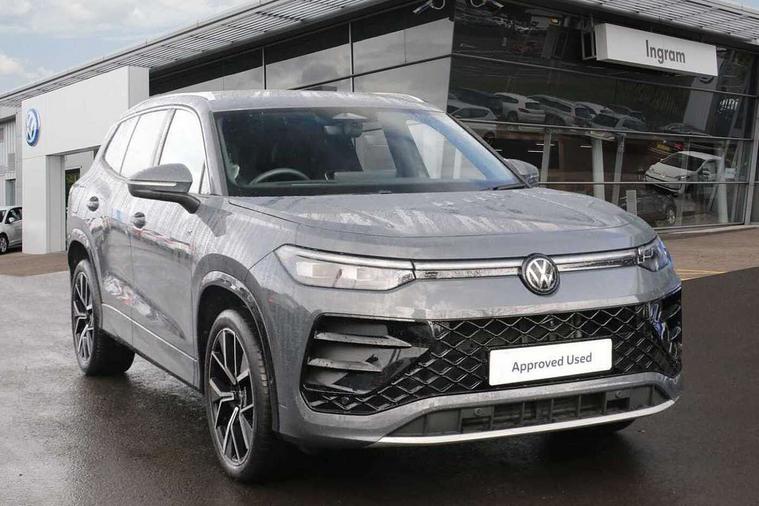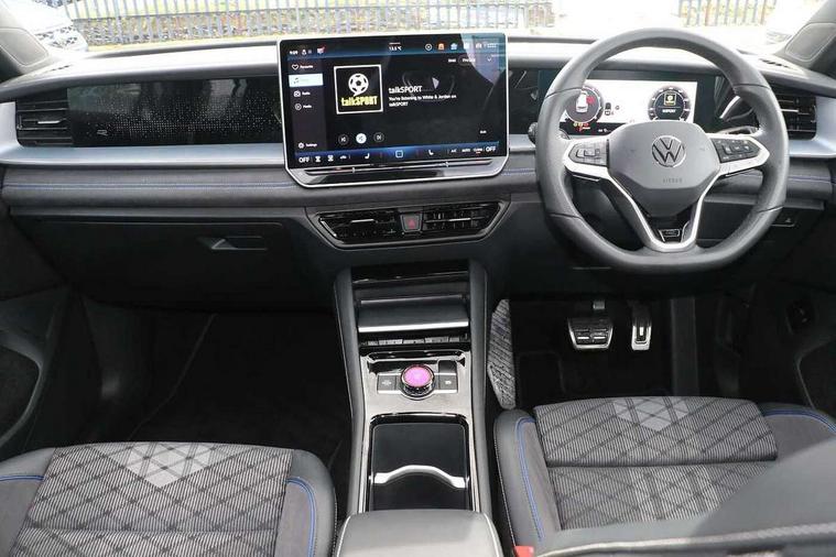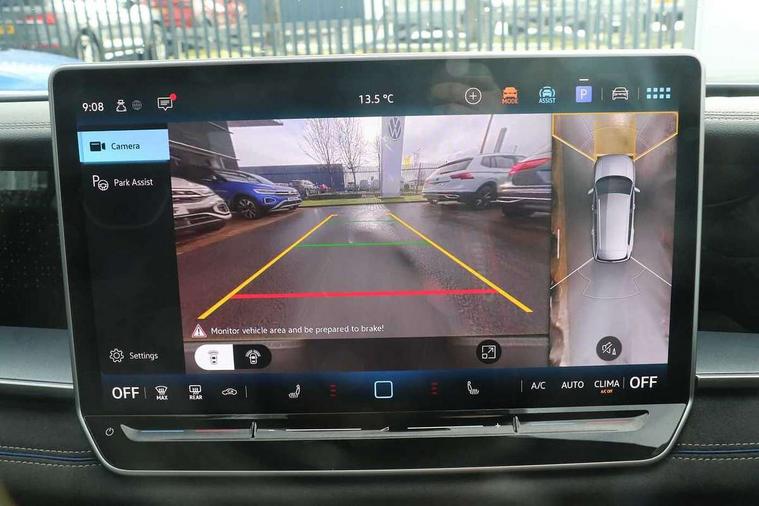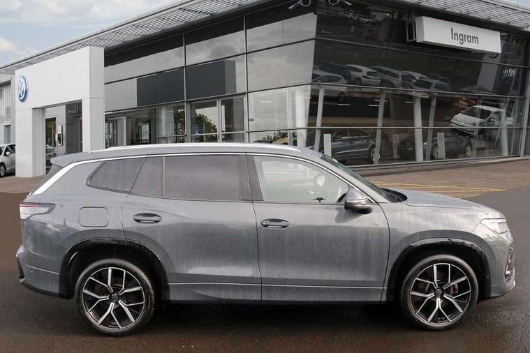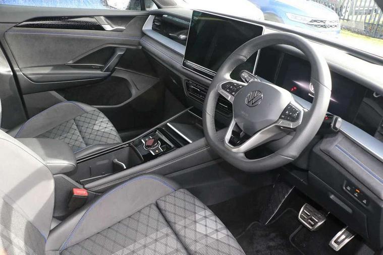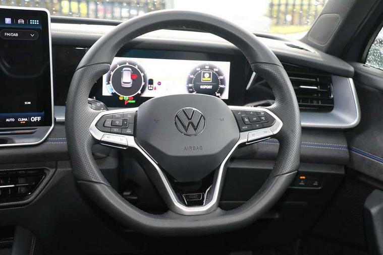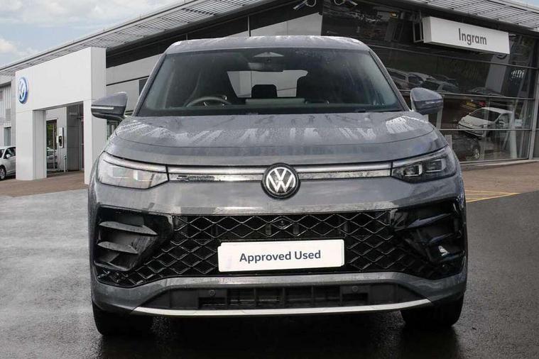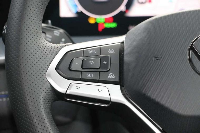 Adaptive cruise control (ACC), Digital Cockpit Pro - 10.25" high resolution dash display screen with customisable menus and information, Driver alert system, Driver attention monitoring system, Dynamic road sign display, E-Sim card for online connectivity, eCall emergency call system, Lane change system, Side assist, Rear traffic alert and Exit warning system, Multifunction front facing camera, Oncoming vehicle braking when turning including swerve support, Start/stop system with regenerative braking, Voice activation spoken voice commands for telephone and navigation system, Warning signal and warning light for front and rear seatbelts not fastened, Wireless App-Connect, Front wheel drive, Digital radio reception (DAB), Diversity antenna for FM reception, Air intake with Chrome trim, Auto dimming interior rear view mirror, Automatic headlight control system, Body colour door handles, Chrome moldings on the side windows, Coming/leaving home lighting function, Dynamic headlight range control with dynamic cornering light, Exterior mirrors convex on the left and aspherical on the right, Heat insulating glass in side and rear windows, Illuminated Volkswagen logo rear with animation, Laminated safety glass windshield, heat insulating, LED 3rd brake light, LED separate signature day time running light, Puddle lights, Rain sensor windscreen wipers, Rear fog light on one side, reversing light on both sides, Rear side wing doors, Rear wiper, Reverse activated passenger's door mirror, Surround lighting with welcome light, Volkswagen logo in front, illuminated lighting animation with wake up/goodbye scenario and illuminated door handles, 10 colour interior ambient lighting, 12V outlet in center console rear and in luggage compartment, 3 rear headrests, 3 rear seat bench in 2nd row, backrest split folding with centre armrest and 2 seats in 3rd row of seats, Black roof lining, Brushed stainless steel pedals, Carpet mats, front and rear, Centre console with illuminated storage compartment with sliding cover and two drinks holders, Chrome elements on the mirror switch and power window switches and door pulls, Door and side trim panel insert in Art velour, Flat luggage compartment floor, Front centre armrest, Front scuff plates in aluminium, ISOFIX anchors for child seats on outer rear seats and front passenger seat compatible with i-Size, Mechanical rear seat release, Power adjustable lumbar support in front, Single front passenger seat, Sports comfort seats in front, Sun visors with illuminated vanity mirrors, 3 Point seat belts in front with pretensioners, 3 point seatbelts in outer rear with ECE label, Autonomous emergency braking front assist with pedestrian and cyclist monitoring, Driver and front passenger airbag with front passenger airbag deactivation, Electronic parking brake with auto hold, First aid kit with warning triangle and safety vest, Front and rear curtain airbags, Front and rear side airbags, Front centre airbag, Front disc brakes, Hill start assist, Rear disc brakes, Two tone horn, Decorative material set R-Line, Interior door handle in matte chrome,