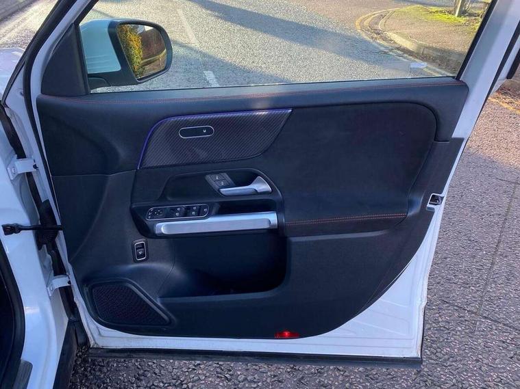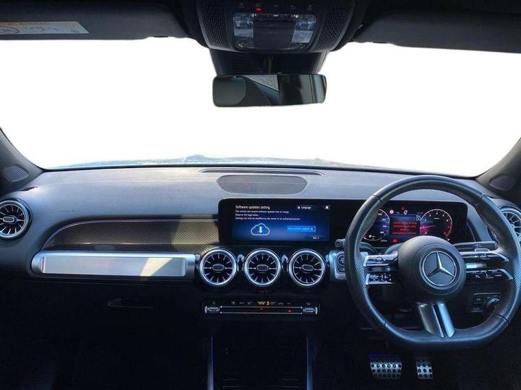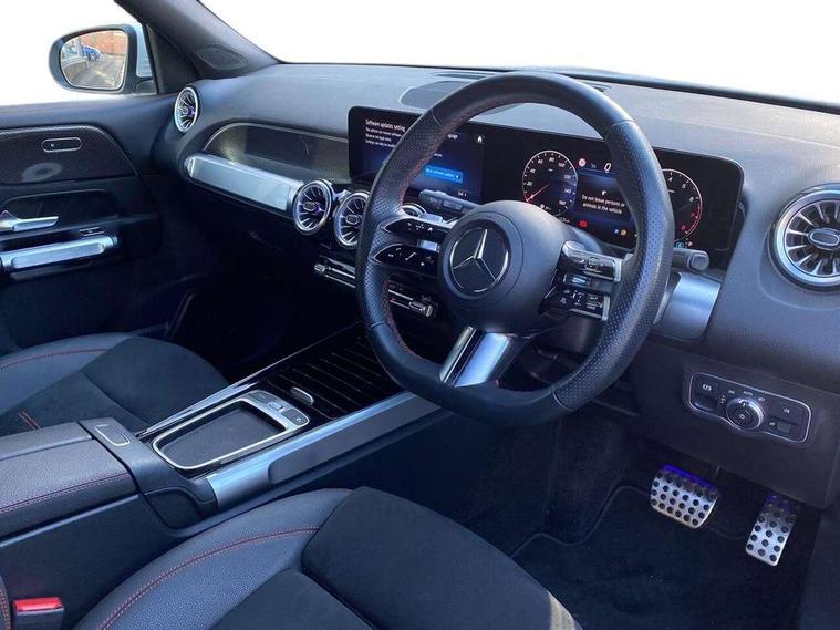 10.25 inch touchscreen central media display, 10.25" Digital instrument cluster display screen, 12 ultrasonic sensors in front and rear bumpers, 180 degree reversing camera with parking guidelines, Assisted parking: reversing backwards into perpendicular and parallel parking spaces, Attention assist - Monitors steering behaviour and long journey fatigue, Bluetooth connection, Brake pad wear indicator warning light, Car wash mode, Convenience opening and closing, Direct steering, DYNAMIC SELECT with a choice of driving modes (ECO, Comfort, Sport and Individual), ECO start/stop function, Engine start/stop button, Fluid level warning indicator for fuel, oil, coolant and washer fluid, Hard disk navigation, Hey Mercedes Voice activation, Lamp failure indicator, Lane keep assist, MBUX navigation premium, Mercedes me connect including emergency call system, accident recovery, breakdown and maintenance management, Mercedes me remote services, Outside temperature gauge, Owners manual and service booklet in English, Pre-installation of private car share, Preinstallation for parking damage notification, Radio aerial integrated into front and rear windshields, Remote boot closing, Service indicator (ASSYST), Smartphone integration with Apple CarPlay and Android auto, Speed limit assist, Tailgate, Trip computer in multifunction display with current consumption indicator, Ultrasound sensors - positioned in the handle of the tailgate, Wireless charging, Comfort suspension with ride height lowering, Rear axle multi-link, 1 USB-C port in the oddments compartment (Charge + Data transfer), 2 USB-C ports for the rear on the centre armrest (Charge only), 2 USB-C ports under the front centre armrest (Charge + Data transfer), DAB digital radio tuner, MBUX multimedia system, Mercedes Benz sound system (100 W) with 6 speakers, Pre installation for Mercedes Benz Link, Adaptive brake lights, Adaptive high beam assist, AMG front apron with front splitter in the colour of the vehicle with chrome trim element, AMG rear apron with visible tailpipe trim and chrome trim element, AMG specific/dual flow exhaust pipes in chrome (non-functional), Auto dimming rear view mirror, Beltline trim and window line trim strip in high gloss aluminium, Black grained side sill trim with chrome inlay, Body coloured door handles, Electric adjustable and heated door mirrors with integrated LED side indicators, Electric folding door mirrors, Front and rear electric windows, Headlamp assist automatic headlamp activation, Heat insulating dark-tinted glass starting from B-pillar, Heated glass rear windscreen + timer control, High level LED third brake light, Interior mirror with black reading lamps and frameless, LED high performance headlamps with integrated LED daytime running lights, LED tail lamp, Polished aluminium roof rails, Radiator grille as a diamond grille with chrome pins and central Mercedes star, Rain sensor windscreen wipers, Rear fog lamp, Rear side wing doors, Rear wiper, Single louvre in matt grey with chrome inserts and black highlights, Two visible tailpipe trim elements exhaust, Ultrasonic sensors - positioned in the front and rear bumpers, Wheel arch liners in the colour of the vehicle, 12V socket in the oddments compartment, 3 seat bench in 2nd row, 3 twin spoke flattened multifunction steering wheel in nappa leather - horizontal twin spoke in high gloss black, vertical twin spoke in silver chrome, 4 way adjustable lumbar support, 40:20:40 split folding rear seats, Air vents with silver chrome surrounds, AMG floor mats, AMG sports pedals with brushed stainless steel surfaces and black rubber studs, Automatic child seat recognition sensor, Black roof lining, Door handles with chrome inserts, Fluorescent jacket, Front and rear headrests, Front centre armrest with stowage, Galvanised steering wheel gearshift paddles in silver chrome, Handle recess lighting, Heated front seats, Height adjustable head restraints, Height/reach adjustable steering column, Interior lighting - 64 colour Ambient lighting, Luggage net on driver/front passenger seat backrest, Single front passenger seat, Sports seats, Stowage compartment with retractable cover, Sun visors with illuminated vanity mirrors, THERMATIC automatic climate control, Third row of seats for two people on rear seat, Twin front cup holders, Two outer rear seat isofix and top tether child seat fixing points, Easy pack tailgate, Interior lighting with light and sight pack - GLB, Seat comfort package - GLB, 3 rear 3 point seatbelts, Active bonnet pedestrain safety measure which detects an impact and raises bonnet by 65mm, Active brake assist includes forward collision warning system with autonomous braking, Adaptive brake assist with hold function and hill start assist, Airbags - kneebag for driver, Anti-lock braking system (ABS) with brake assist, Black seatbelts, Bonnet with power domes, Childproof locks manually operated for rear doors and electrically operated for rear power windows, Crash responsive emergency lighting, Curve dynamic assist, Driver and front passenger head and sidebags, Driver and front passenger windowbags, Dual stage driver and front passenger airbags, Electric parking brake, Electronic stability programme with acceleration skid control, Front and rear seatbelt reminder, Front brake callipers with Mercedes Benz lettering, Front passenger seat occupancy sensor, Perforated front brake discs, Tyre pressure monitoring system, Warning triangle and first aid kit, Guard 360 degree vehicle protection - Anti theft alarm system, tow away protection with visual, acoustic warning and alarm, Interior monitoring system, Keyless Go Access and drive authorisation system, KEYLESS-GO starting function, Remote central locking and crash sensor with emergency opening function, Thatcham category 1 alarm system with immobiliser and interior protection, Vehicle key with KEYLESS GO functionality, Carbon structure trim, 19" AMG 5 twin spoke light alloy wheels aerodynamically optimise