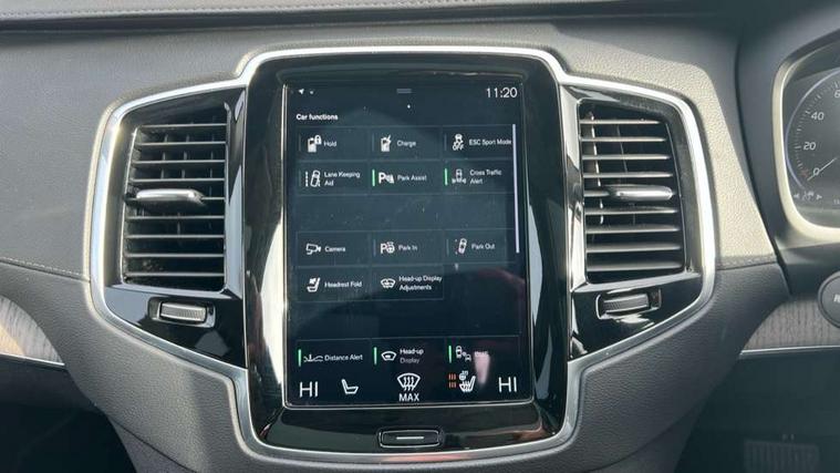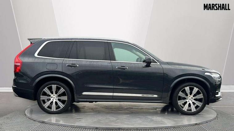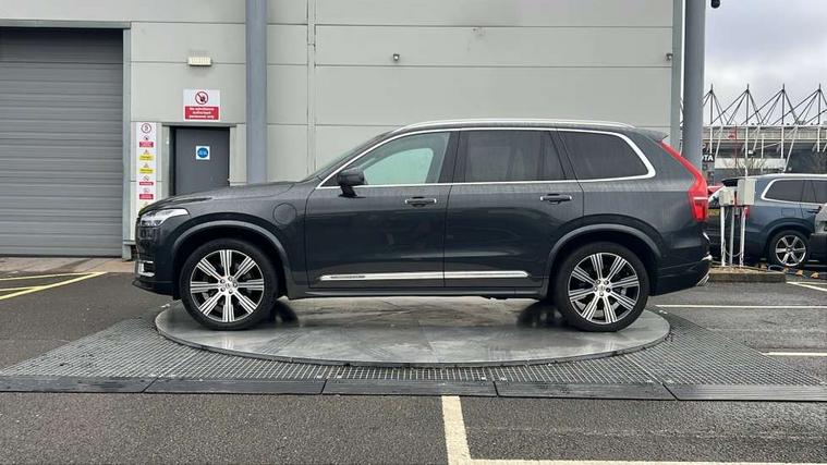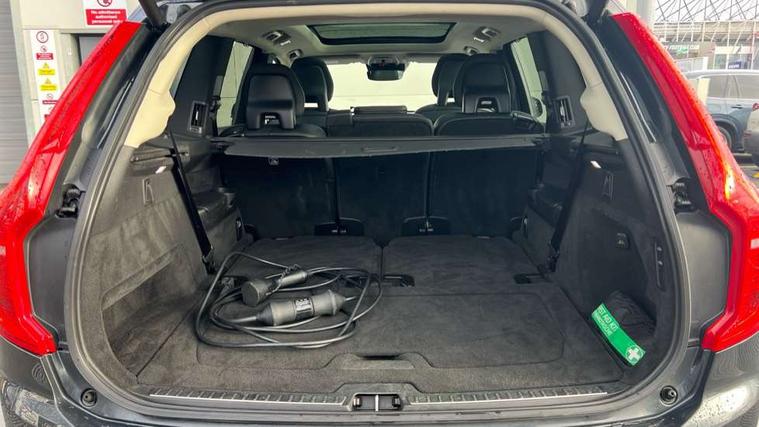 Grey ash inlays, Tailored instrument panel and door tops, Lighting pack - XC90 Recharge, Tyre sealant kit + 12v compressor, Anti-theft alarm including immobiliser/volume sensor + level sensor, Care key with user defined top speed, Key integrated remote control central locking + fuel flap with deadlocking system and auto open/close power windows, Keyless drive (includes keyless entry and keyless start) with remote tag, Locking wheel nuts, Private locking for glovebox and tailgate, DAB Radio (Digital Audio Broadcasting), Steering wheel remote infotainment controls, 7 three point seatbelts, City safety includes pedestrian, cyclist and large animal detection and front collision warning with full auto brake, Drivers knee airbag, Dual stage driver/passenger airbags, First aid kit, Front seats SIPS airbags, Hill descent control, Hill start assist, IC (Inflatable Curtains) - Full Length, Passenger airbag cut-off switch, Power parking brake with auto hold function, Road sign information display, Run off Road Mitigation, Run off Road Protection, Seatbelt reminder and pretensioners for all seats, SIPS (Side Impact Protection System), Slippery road and hazard light alert, Stability and Traction Control with Spin control, Engine Drag Control and Corner Traction Control, Tyre pressure monitoring system, Vehicle deceleration control with Anti-lock Brake System, Electronic Brake Distribution and Emergency Brake Assist, Warning triangle, WHIPS whiplash protection system - front, Adaptive brake lights with high level LED brake lights, Auto dimming interior + exterior mirrors, Automatic headlight levelling system, Automatic LED Headlights + Active high beam incorporating daytime running lights, Body colour bumpers, Chrome Front and Rear Bumper plus Lower Side Mouldings, Chrome window surround, Colour coordinated auto folding and heated power door mirrors, Dual integrated exhaust pipes, Front and rear power windows, Heated washer nozzles, Home safe and approach lighting, Integrated roof rails in silver, Matt silver front grille with chrome detailing, Puddle lights, Rain sensor with automatic windscreen wiper activation, Rear wash/wipe with intermittent wipe setting, Recharging port located in nearside front wing, Roof antenna, Roof spoiler, Visible VIN plate, 12V socket front tunnel console, rear passenger compartment and cargo area, 4 Zone electronic climate control + cooled glovebox, A-pillar parking ticket holder, Ambient door and instrument panel lighting, B Pillar ventilation, Bright metal luggage threshold, Cargo divider with grocery bag holder, Centre console cupholders and storage, Driver's side lower dashboard storage compartment, Front and rear door pocket and front cupholder illumination, Front footwell and side step illumination, Front headrests, Front seat backrest massage, Front seat cushion extension and power adjustable front seats side support, Heated front seats, Height/reach adjustable steering column, Illuminated luggage compartment, Illuminated tailgate, Illuminated vanity mirrors + ticket holder, Illumination lockable glovebox compartment, Integrated sun curtains in rear doors, Load protection net, Luxury floor mats, Multicolour theatre lighting, Orrefors Crystal Gear Lever Knob, Outboard armrest with cupholder and storage for third row passengers, Perforated and ventilated nappa soft leather upholstery, Power driver seat with multi directional lumbar support and memory for seat and exterior mirrors, Power folding 2nd row headrests, Power passenger seat with multi directional lumbar support and memory, Rear footwell and side step illumination, Rear headrests, Recharge aluminium tread plates, Semi automatic load cover, Steering wheel audio controls, Three 2nd row individual folding passenger seats with fore/aft adjustment, Two 3rd row individual folding passenger seats, Underfloor cargo storage, 12.3" Active TFT crystal driver's instrument display, 7m Charge Cable with 3 Pin Plug, 7m Type 2/mode 3 charge cable, 9" centre console portrait touch screen, Adjustable steering wheel force, Bluetooth hands free telephone connection, Drive mode settings, Driver alert control with lane keeping aid, Driver assistance (pilot assist and adaptive cruise control), Driver awareness - Blind spot information system with steer assist, cross traffic alert with autobrake and rear collision warning and mitigation, Front and rear park assist, Handsfree power tailgate opening and closing, Oncoming Lane Mitigation, Sensus navigation with European mapping and traffic information, Service interval indicator, Smartphone integration with Apple CarPlay and Android auto, Speed limiter, Speed sensitive steering, Trip computer, Voice activated control for key functions, Volvo on call, 8 speed automatic transmission with start/stop + manual change functions, Active four C chassis - four corner adaptive dampers with electronic air suspension, All wheel drive system, Electric rear axle drive, Lithium-ion battery,