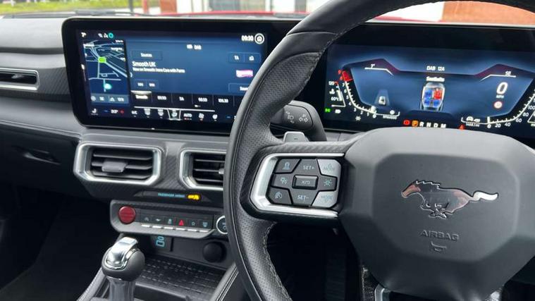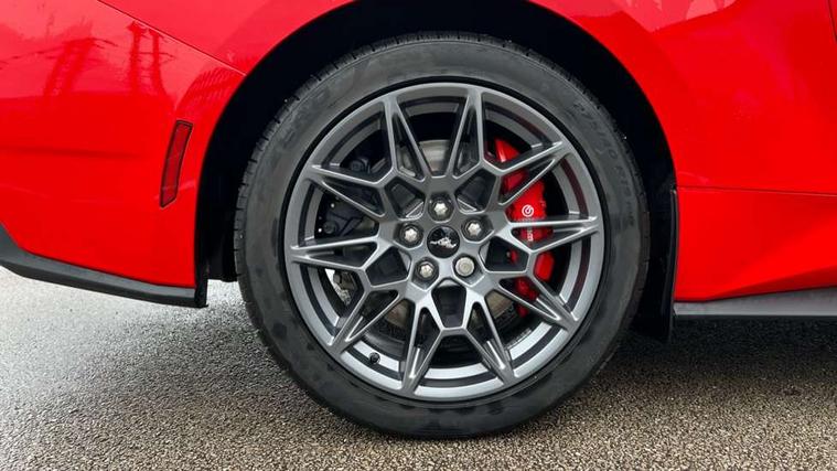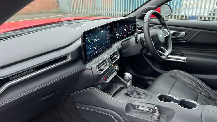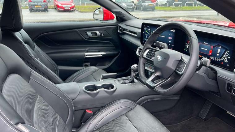 12" digital LCD instrument cluster, Adaptive cruise control with adjustable speed limiter, Apple car play/Android Auto, Bluetooth connectivity with voice control, Electric power steering, Emergency services call system, Ford pass connect embedded modem, Fully customisable 13.2" Touchscreen with wireless smartphone integration, FordPass connect & connected navigation, Lane keeping aid with lane keeping assist, Oil pressure gauge, Rear view camera with rear parking sensors, Selectable driving modes - normal, mymode, snow/wet, sport+, track and drag mode, Service interval indicator, SYNC Emergency Assistance, Track apps with accelerometer technology, Trip computer, Wireless charging and USB charging port, Fully independent front and rear suspension, Limited slip differential, Bang & Olufsen 12-speaker surround sound audio system, DAB Digital radio, USB connection, 3rd brake light, Active exhaust system with quad tailpipes, Auto dimming rear view mirror, Auto high beam, Automatic headlights, Automatic rain sensing wipers, Body colour bumpers, Bonnet air intake, Electric front windows, GT bodykit with black door frame mouldings, GT front grille with vertical power bars, LED daytime running lights, LED rear lights with sequential indicators and welcome / farewell animations, Power-folding door mirrors including blind spot informaion system and mustang logo projection puddle lamps, Rear boot, Silver Triple-LED headlamps with welcome / farewell animation, 6 way power adjustable front seats, Ambient lighting, Cup holders, Electronic automatic temperature control (EATC), Front headrests, Heated leather flat bottom steering wheel, Heated/ventilated and cooled front seats, Illuminated entry system, Individually folding 2 rear seats in 2nd row, Isofix system on outer rear seats, Leather gearknob, Leather/vinyl upholstery, Reach and rake adjustable leather steering wheel with integrated controls, Rear head restraints, Single front passenger seat, Sports seats, 4 seatbelts, ABS, Drivers knee airbag, Dual front airbags, Electronic Line Lock, Electronic Stability Control (ESC) with three settings, ESP, Front side airbags, Performance brake system with brembo 6 piston front callipers and electronic brake prefill, Pre-collision assist with AEB and pedestrian and cyclist detection, Side curtain airbags, Tyre pressure monitor, Ford key free system with power starter button and keyless entry, Immobiliser, Thatcham Cat.1 alarm, Tyre repair kit,