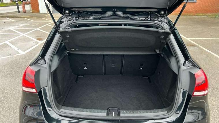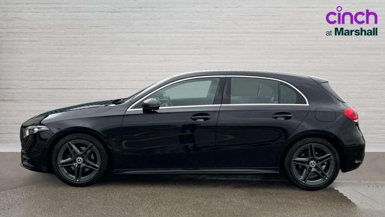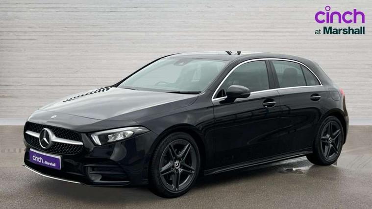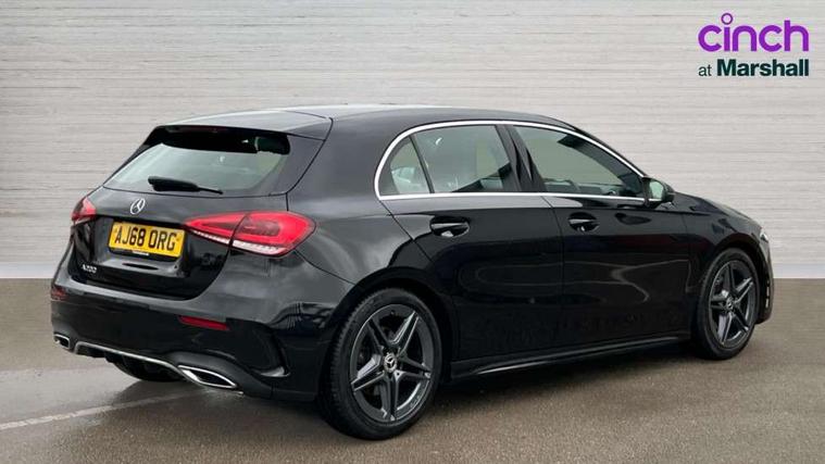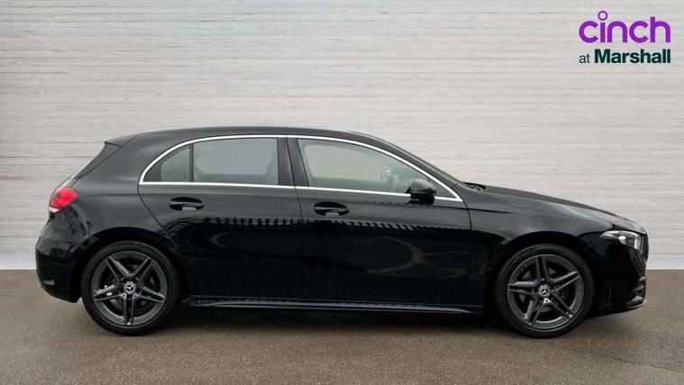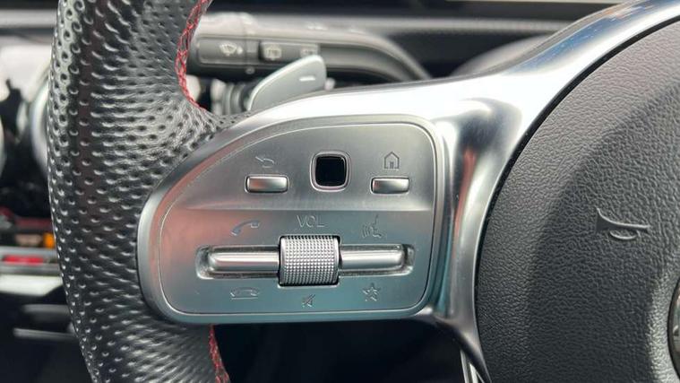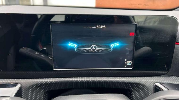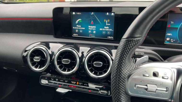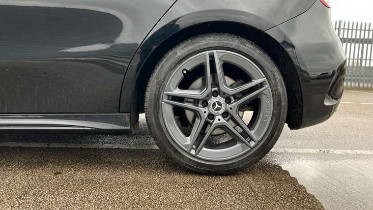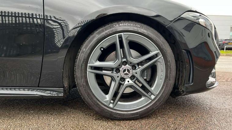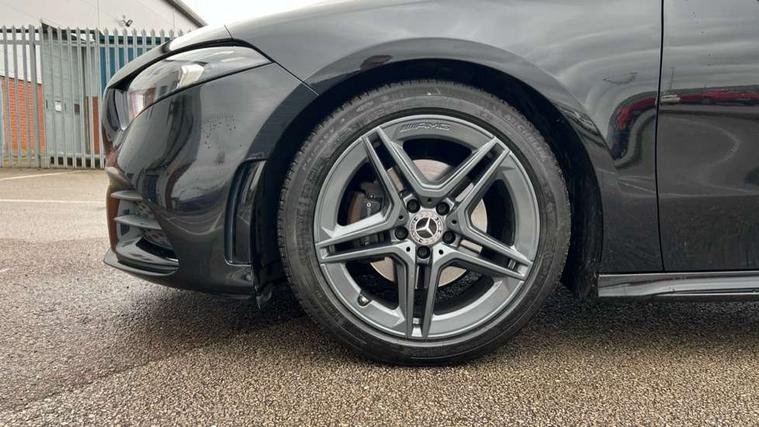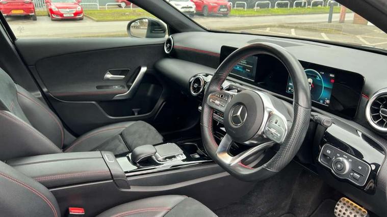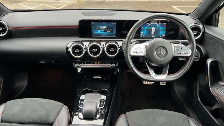Seat comfort pack - A Class, 18" AMG 5 twin spoke light alloy wheels in titanium grey with highsheen finish, Tirefit sealant kit, Alarm system/interior protection/immobiliser, Keyless Go, Remote central locking and crash sensor with emergency opening function, DAB Digital radio, Dual bluetooth interface, 2 USB ports (type C), 3 rear 3 point seatbelts, ABS with Brake Assist, Active bonnet, Active brake assist includes forward collision warning system with autonomous braking, Adaptive brake assist with hold function and hill start assist, Black seatbelts, Brake calipers with Mercedes-Benz lettering + perforated brake discs, Childproof locks manually operated for rear doors and electrically operated for rear power windows, Crash responsive emergency lighting, Driver and passenger head and side airbags, Drivers knee airbag, Dual stage driver/passenger airbags, Electronic parking brake, ESP curve dynamic assist, ESP with ASR, Front and rear seatbelt reminder, Tyre pressure monitoring system, Warning triangle and first aid kit, Window airbags, Adaptive brake lights, AMG front, rear apron and side skirts, Blue tinted glass, Body colour bumpers, Body colour door handles, Body colour side skirt, Body coloured door mirrors, Chrome beltline trim, Diamond radiator grille with chrome pins and silver louvre + chrome insert, Electric adjustable and heated door mirrors with integrated LED side indicators, Electric front windows, Electric rear windows, Exhaust system - Twin trapezoidal tailpipes in polished stainless steel, Headlamp assist automatic headlamp activation, Heated glass rear windscreen + timer control, LED high performance headlamps with integrated LED daytime running lights, LED tail lamp, LED third brake light, Rain sensor windscreen wipers, Rear fog lights, Rear wiper, 12V socket, 3 Spoke flat bottom leather multi function steering wheel with perforated leather in grip area, 40:20:40 split folding rear seats, Air vents surround and cruciform nozzle in silver chrome, AMG floor mats with red stitching, Artico man-made leather/Microfibre Dinamica upholstery with red contrast stitching, Auto Mercedes-Benz child seat recognition sensor, Black roof lining, Brushed stainless steel sports pedals with rubber studs, Controller on centre console with chrome surround, Cup holder and stowage compartment lighting, Front centre armrest with storage compartment, Front door sills with Mercedes benz lettering, Front doors with ambient and signal light, Front footwell lights, Front reading lamps, Front seat backs luggage nets, Front seat cushion length adjustment, Front signal exit lamp, Front vanity lights, Gearshift paddles on steering wheel, Handle recess/closing light, Height/reach adjustable steering column, Illuminated glovebox, ISOFIX Child seat top tethers and anchor fixings, Load securing rings in luggage compartment, Luggage compartment cover, Manual height adjustable front seats, Oddments tray lighting, Rear head restraints, Rear Reading Lamps, Seat occupancy sensor for front passenger seat, Sports seats with integrated headrests, Storage compartment under load area floor, Sunvisors with illuminated vanity mirrors, Touchpad, Touchpad illumination, Twin front cupholders, Two zone thermotronic luxury automatic climate control, 180 degree rear view camera with parking guidelines, 7" colour screen in instrument panel, 7" touchscreen media display, Active lane keep assist, Attention assist, Brake pad wear indicator warning light, Cruise control + speed limiter, Direct steering, Direction indicators with lane change function, DYNAMIC SELECT with a choice of driving modes (ECO, Comfort, Sport, Sport+ and Individual), Fluid level warning indicator for fuel, oil, coolant and washer fluid, Hard-disk navigation, Lamp failure indicator, MBUX multimedia system with DAB digital radio and touchpad including satellite navigation, Mercedes me connect including emergency call system, accident recovery, breakdown management and maintenance, Outside temperature gauge, Radio aerial integrated into roof spoiler, Service indicator (ASSYST), Speed sensitive power steering, Stop/start system, Trip computer, Voice activation, Lowered comfort suspension,