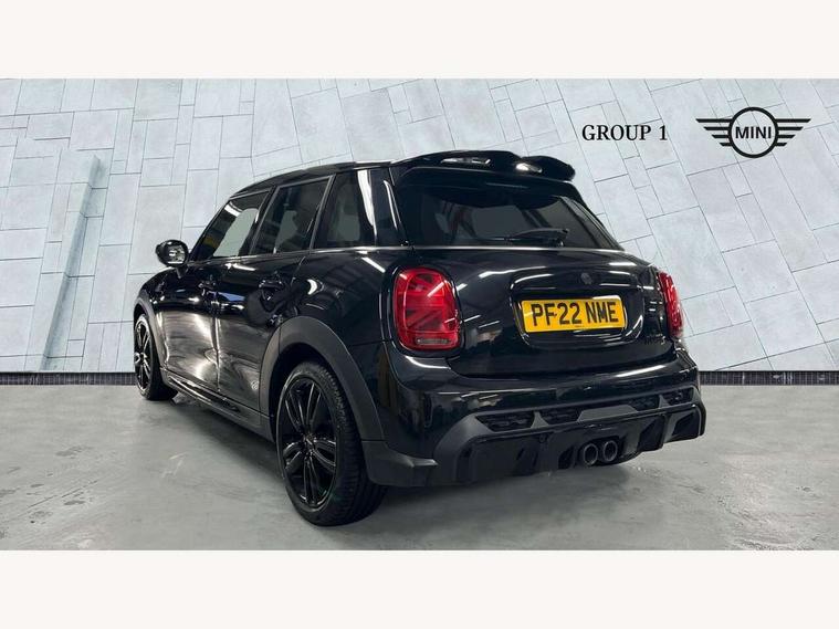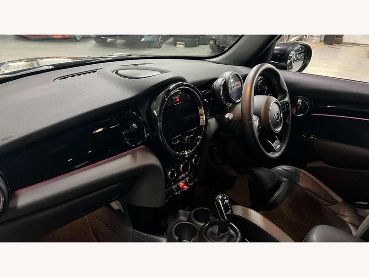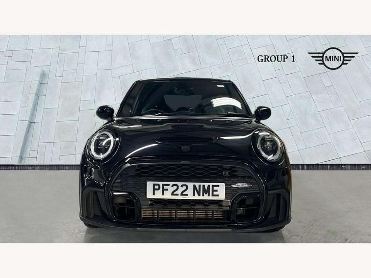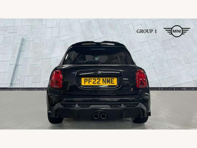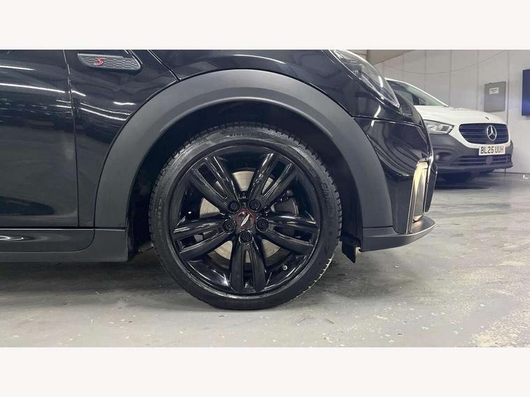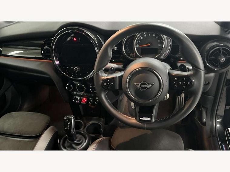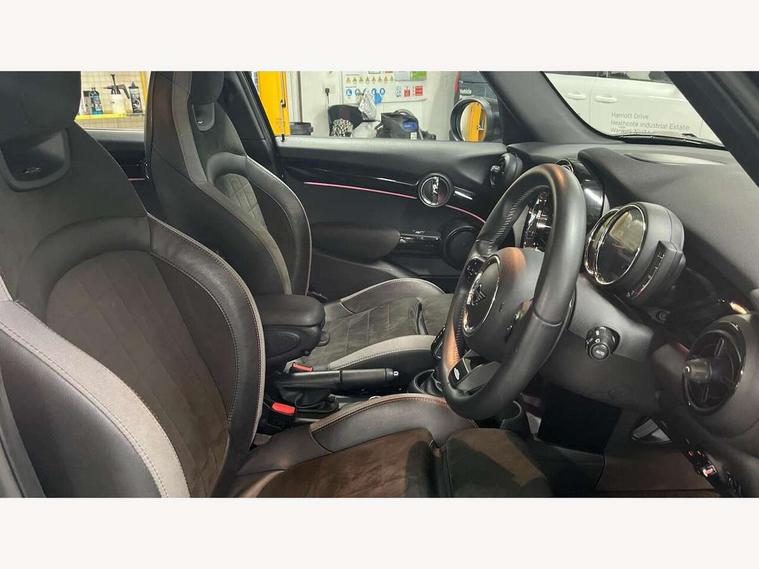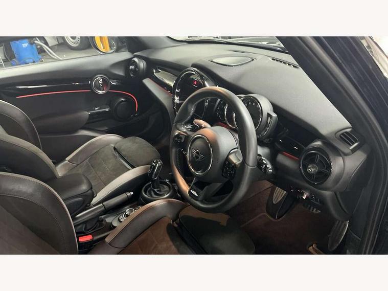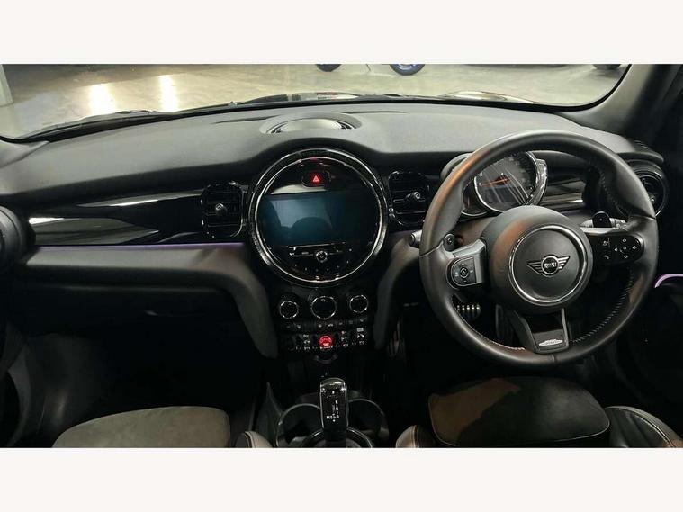 Apple CarPlay, Automatic start/stop function with brake energy recuperation, Compatible mobile phone bluetooth with audio streaming, Cruise control with brake assist, Electro-mechanical speed dependant steering assistance, Flexible car sharing preparation, Instrument cluster, MINI Driving Modes - centre toggle switch to control driving setting (sport, mid and green), Mini E-call, MINI TeleServices, On board computer, Rear park distance control, Service interval indicator, Adaptive suspension, Double Vanos system, Fully variable valve control, Gear change indicator display, High precision injection, Performance Control, Steptronic sport transmission with double clutch and steering wheel paddles, 8.8" touchscreen with LED ring, FM tuner and DAB digital radio, 3rd brake light, Automatic headlight activation switch, Bonnet scoop, Dynamic brake lights, Electric front+rear windows, Heated rear window, Heated windscreen washer jets, JCW Aerodynamic kit - Front and rear bumpers with sporty JCW styling and part-painted side sills with MINI John Cooper Works door sill finishers, John Cooper Works rear spoiler, LED headlight with closed ring and daytime driving lights, Metal door sill strips with Cooper S imprint, Model logo Cooper S on right of tailgate, Radiator grille chrome border with honeycomb structure including S Badge, Rain sensor window wipers, Rear fog lights, Rear LED lights with union jack design, Rear side wing doors, Rear window wiper, Side scuttle panel with integrated indicator, Sun/heat protection glass, Two central exhaust tailpipes with chrome finisher, White indicator lenses, 12V Accessory socket in centre console, 3 seat bench in 2nd row, 4 lashing eyes in luggage compartment, 60/40 split folding rear seat, Anthracite headliner including grab handles and clothes hooks, Carbon black colour line - Knee roll and door armrest, Chrome interior highlights, Cupholders, Front and rear isofix with front passenger airbag deactivation, Front and rear velour floor mats, Glove compartment, Height and length steering column adjustment, Interior lighting with 12 different colours across the dashboard, underneath door bezel with illuminated laser-engraved design on central display, JCW Sport seats with integrated headrests, adjustable thigh support and John Cooper Works logo, Leatherette gearshift lever and handbrake gaiters, LED reading lights, vanity mirror lights, front foot well light and spotlight on front seats, Manual air conditioning, Mechanical seat adjustment - forward/back & backrest for front seats and driver seat height adjust, Multifunction steering wheel, Single front passenger seat, Sport leather steering wheel with speed limiter and audio/communication controls, Storage compartments in doors, Storage pocket on back of front seats, Sunvisors with vanity mirrors, Tool kit, Walknappa leather steering wheel with grey seam and John Cooper Works badge on Piano Black lower steering wheel spoke, Piano black exterior pack - Mini Hatchback Cooper S, 3 point seatbelts on all five seats, 6 Airbags - front, side, head and seat belt tensioners, Anti-lock braking system (ABS), Child locks on rear doors, DSC - Dynamic Stability Control, Front and rear disc brakes, Hill start assist, Two tone horn, Tyre pressure monitoring system, Alarm system with tilt sensor, monitoring doors, bonnet interior and tailgate, Electronic vehicle immobiliser, Start/stop toggle with keyless go, Piano black interior trim,