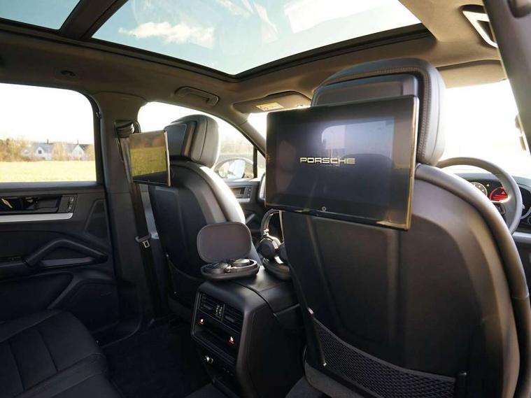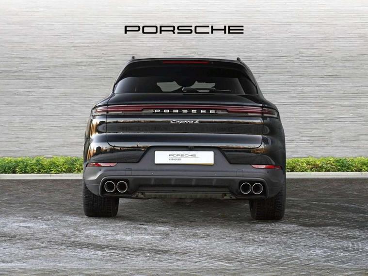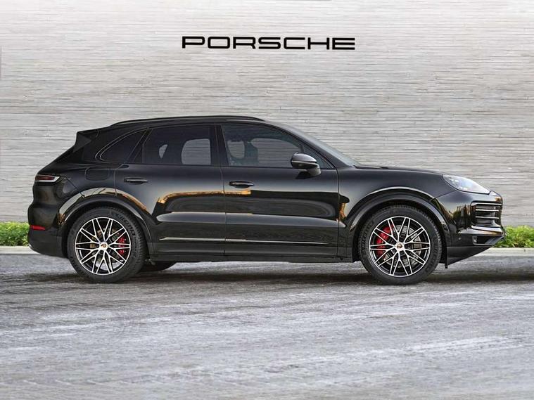 Active parking assist and 360 camera, Active speed limit assist, Android Auto, Apple car play, Brake pad wear indicator, Central analogue rev counter with black dial face, Driver personalisation for climate, audio and communication, assistance systems and other customisable car systems, Driving modes, Emergency call service, High resolution 12.3-inch touchscreen display in full HD resolution, Individual mode for individual selection of vehicle drive settings, Instrument cluster with 12.6" curved display, Instrument cluster with two high-resolution displays, Mobile phone preparation with Bluetooth interface for telephone and music, Mode switch, Porsche Communication Management (PCM) including online navigation module, mobile phone preparation, audio interfaces and voice control system, Power steering plus, Power tailgate with gesture control, Reversible occupant protection measures, Smartphone integration, Speed limit indicator, Vehicle electrical system recuperation, Warn and brake assist including pedestrian protection, 8 speed automatic gearbox, 90 litre fuel tank, Aluminium cylinder heads and engine block, Direct fuel injection (DFI) with central injector position, Front and rear aluminium multi link axles, Gasoline particulate filter, Sport mode, Twin turbocharger, VarioCam Plus, Water cooled with thermal management, AM radio, Digital radio, Fast charging two USB-C PD connectivity and charging port in front storage compartment, Smartphone compartment with wireless charging, Two USB-C PD charging ports in the rear, Active air intake flaps, Aluminium roof, Auto dimming interior + exterior mirrors, Automatic headlight activation including welcome home functionality, Bumper system with high strength cross members and two deformation elements + Two receptacles with screw threads towing lug + onboard tool kit, Deletion of GTS logo on sideskirt inlays, Door handles painted in exterior colour, Electric windows + anti trap protection + one touch open/close drivers side, Electrically adjustable, folding and heated exterior mirrors, aspherical on drivers side including courtesy lights, Extensive aerodynamic underbody protection, Exterior mirror lower trims including mirror base in black, Four point signature LED daytime running lights, Front end with integrated air intakes and airblades for the side air intakes, Front light modules including position lights and direction indicators in LED light guide technology, Front windscreen wipers with two speeds, intermittent wipe and rain sensor, Fully galvanised steel / aluminium hybrid lightweight bodyshell and Aluminium bonnet, tailgate, doors, side panels, roof and front wings, Heated rear window with automatic switch off, LED High level third brake light integrated into roof spoiler, Lower valance, PORSCHE' lettering integrated in tailgate strip, Rear diffusor in louvered design, Rear side wing doors, Rear window wiper with intermittent function and washer jet, Right fuel filler cover, 3 seat bench in 2nd row, 4-way headrests front/2-way headrests rear, Ambient lighting, B-pillar clothes hooks on driver and passenger's side, Charge air cooling, Deletion of turbo S logo embossed on headrests, Door interior with decorative surfaces and accent trims, Double sun visors for driver and front passenger, Elevated centre console with handles, Five seats rear seat system with two comfort outer seats and a central seat, Front and rear bottle holders in door panels, Front centre armrest, Heated front seats, Illuminated make-up mirror in sun visors, Isofix fastening system for child seats on outer rear seats, Leather door panel and central armrests, Leather gear selector, LED interior light with switchoff delay function, footwell + glove compartment light, ashtray + ignition lock illumination, front + rear reading light, Manual height adjust for driver and front passenger seat belt, Manual steering column with angle and reach adjustment, Particle/pollen filter with active carbon filter, PM 2.5 fine dust filtering, Rear seat split folding design 40:20:40, Fold out centre armrest with integrated cup holder, manual fore/after adjust and backrest angle adjust, Retractable roller luggage compartment cover in detachable cassette, Single front passenger seat, Soft close doors, SPORT button, Stainless steel pedals, Storage compartments - Cooled glove compartment, front centre console, door and map pockets on front seat backrests + side luggage compartment, Three 12V power sockets - front below the glove compartment, centre console and at side of luggage compartment, Two integrated cup holders in front and rear with variable diameter, Driver memory pack - Cayenne, 3-point automatic seatbelts with front and outer rear seats pretensioners and front force limiter with 3-point automatic seatbelt for rear centre seat, 4 piston aluminium monobloc fixed brake calipers at rear, 6 piston aluminium monobloc fixed caliper brakes at front, Active bonnet, Auto hold function, Brake discs with diameter 410 mm at front, 358 mm at rear, Curtain airbags along roof frame and side glazing from the A-pillar to the C-pillar, Distance warning, Electronic parking brake, Front passenger airbag deactivation function for front seat mounting of child seat, Front side airbags integrated into seat, Full size driver and front passenger airbags, Knee driver and passenger airbags, Mounting points on passenger seat for ISOFIX child seat mounting system, Multi-Collision braking, Porsche hill control (PHC), PTM Porsche Traction Management active all-wheel drive with an electronically variable, map-controlled multi-plate clutch, ABD and anti-slip regulation, Rear door child safety locks, Rear side airbags, Rollover detection for activation of curtain airbags and seat belt pretensioners, Seat belt warning system for driver and front passenger and rear seat system, Side impact protection in doors, Tyre pressure monitoring system, Vehicle stability system, Porsche stability management (PSM) including ABS, ASR,