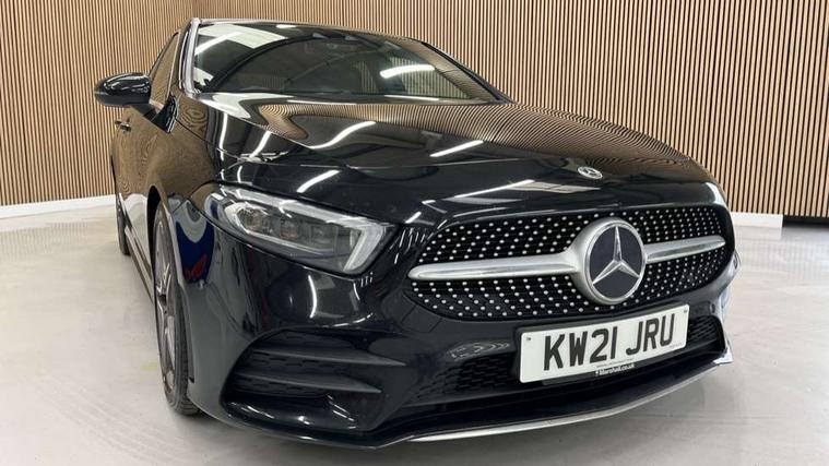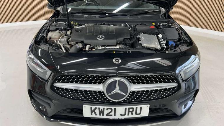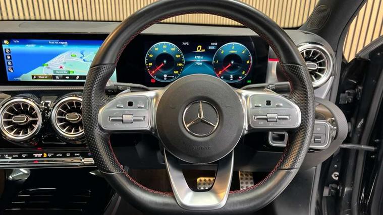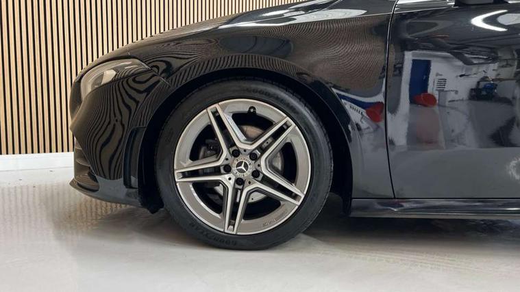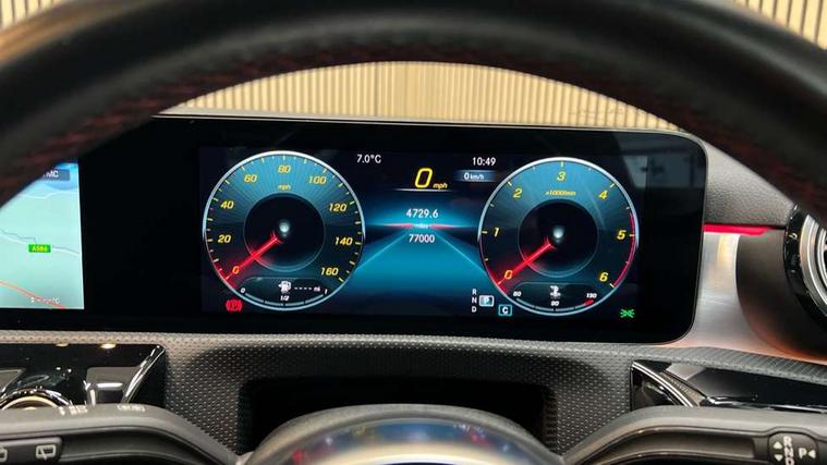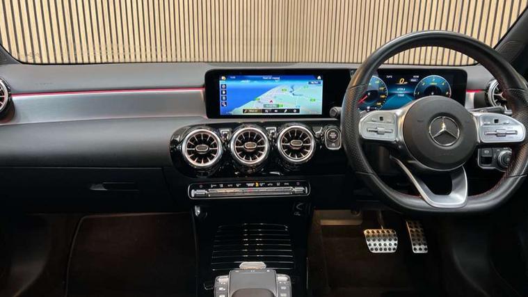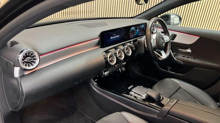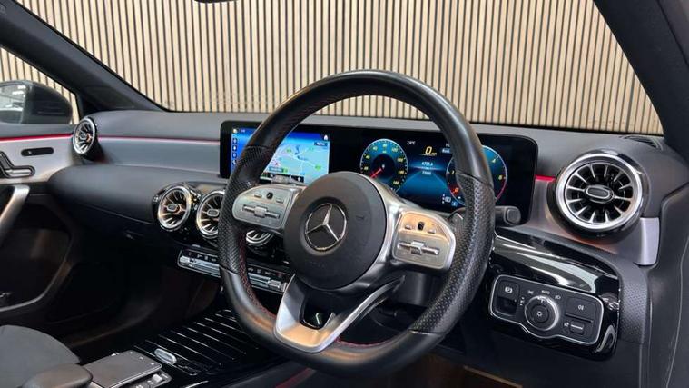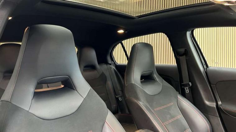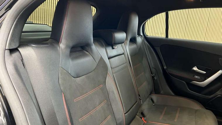 Light aluminium with longitudinal grain interior trim, Light and sight pack - A Class, Mirror package - A Class, Seat comfort pack - A Class, 18" AMG 5 twin spoke light alloy wheels in titanium grey with highsheen finish, Summer tyres, Tirefit sealant kit, Alarm system/interior protection/immobiliser, Keyless entry lock/unlock, Keyless Go, Remote central locking and crash sensor with emergency opening function, Urban guard vehicle protection system with immobiliser and interior protection, 10 speakers, 2 USB ports (type C) in rear stowage compartment and one in front of center console, DAB Digital radio, MBUX multimedia system with DAB digital radio and touchpad including satellite navigation, Mercedes-Benz advanced sound system - 225W, 3 rear 3 point seatbelts, ABS with Brake Assist, Active bonnet, Adaptive brake assist with hold function and hill start assist, Black seatbelts, Childproof locks manually operated for rear doors and electrically operated for rear power windows, Crash responsive emergency lighting, Driver and passenger head and side airbags, Drivers knee airbag, Dual stage driver/passenger airbags, Electronic parking brake, ESP curve dynamic assist, ESP with ASR, Front and rear seatbelt reminder, Front brake callipers with Mercedes Benz lettering, Tyre pressure monitoring system, Warning triangle and first aid kit, Window airbags, 4 Electric Front and Rear windows, Adaptive brake lights, AMG bodystyling - Front apron with splitter in chrome, rear apron with chrome trim and chrome visible trim elements in tailpipe, Black weather strip, Body colour bumpers, Body colour door handles, Body colour side skirt, Body coloured door mirrors, Chrome beltline trim, Diamond radiator grille with chrome pins and silver louvre + chrome insert, Electric adjustable and heated door mirrors with integrated LED side indicators, Exhaust system - Twin visible tailpipes in polished stainless steel, Headlamp assist automatic headlamp activation, Heated glass rear windscreen + timer control, LED high performance headlamps with integrated LED daytime running lights, LED tail lamp, LED third brake light, Multibeam LED with adaptive highbeam assist plus, Panoramic sliding sunroof, Privacy glass, Radio aerial, Rain sensing windscreen wipers with two sensitivity settings, Rear fog lights, Rear wiper, Window line trim strip in chrome, 3 Spoke flat bottom leather multi function steering wheel with perforated leather in grip area, 40:20:40 split folding rear seats, Artico man-made leather/Microfibre Dinamica upholstery with red contrast stitching, Auto Mercedes-Benz child seat recognition sensor, Black air vents with surround in silver chrome, Black roof lining, Brushed stainless steel sports pedals with rubber studs, Controller on centre console with chrome surround, Electrically adjustable front memory seats including lumbar support, Floor mats with stitched edging and AMG lettering, Front centre armrest with storage compartment, Front seat backs luggage nets, Front seat cushion length adjustment, Galvanished gear shift paddles on steering wheel, Heated front seats, Height/reach adjustable steering column, Illuminated front door sills with changeable cover, Interior lighting - 64 colour Ambient lighting, Interior mirror with reading lamps in black and frameless, ISOFIX and top tether child seat fixing points in two outer rear seats, Rear armrest with 2 cupholders, Rear head restraints, Seat occupancy sensor for front passenger seat, Sports seats with integrated headrests, Stowage compartment in centre console with retractable cover, Sunvisors with illuminated vanity mirrors, Touchpad on center console, Twin front cupholders, Two zone thermotronic luxury automatic climate control, Ultrasonic sensors positioned in the front and rear bumpers, 10.25" Digital instrument cluster display screen, 10.25" media display, 180 degree rear view camera with parking guidelines, Active parking assist with visual and audible warning of detected obstacles, Attention assist, Brake pad wear indicator warning light, Car wash mode, Direct steering, Dual bluetooth interfaces, DYNAMIC SELECT with a choice of driving modes (ECO, Comfort, Sport and Individual), ECO start/stop function, Fluid level warning indicator for fuel, oil, coolant and washer fluid, Hard-disk navigation, Hey Mercedes Voice activation, Lamp failure indicator, MBUX augmented reality for navigation, Mercedes me connect including emergency call system, accident recovery, breakdown management and maintenance, Mercedes me remote services, Outside temperature gauge, Owners manual in English, Pre-installation for car sharing, Preinstallation for Mercedes Benz link, Service indicator (ASSYST), Smartphone integration with Apple CarPlay and Android auto, Traffic sign assist, Trip computer, Wireless charging, Lowered comfort suspension, Rear axle torsion beam,