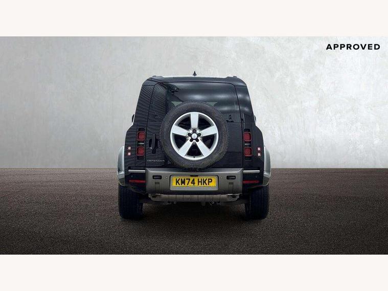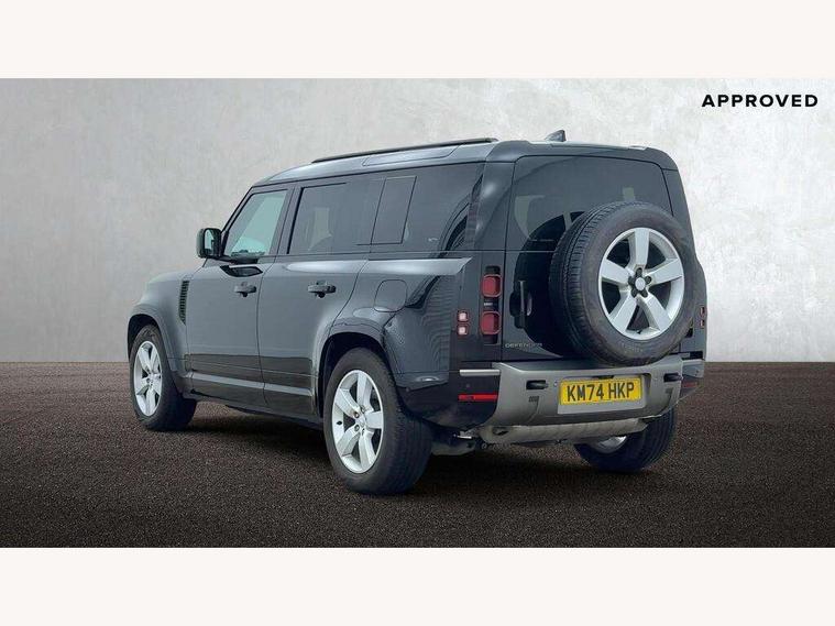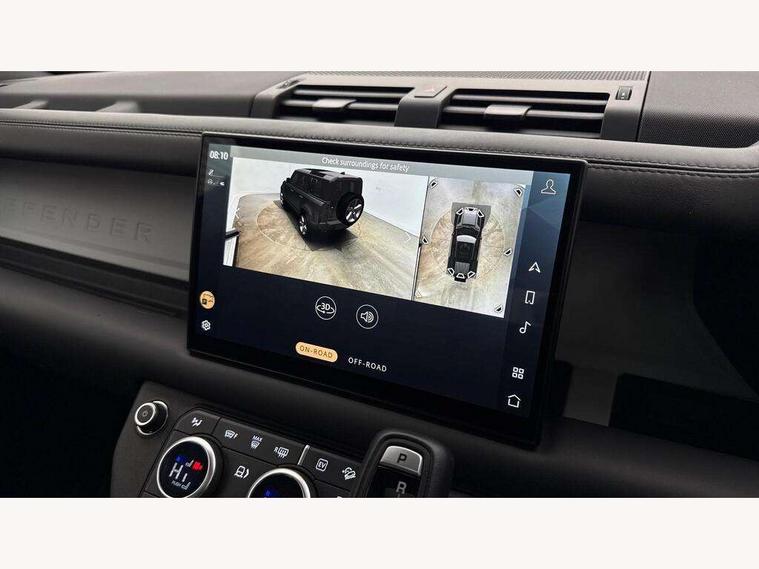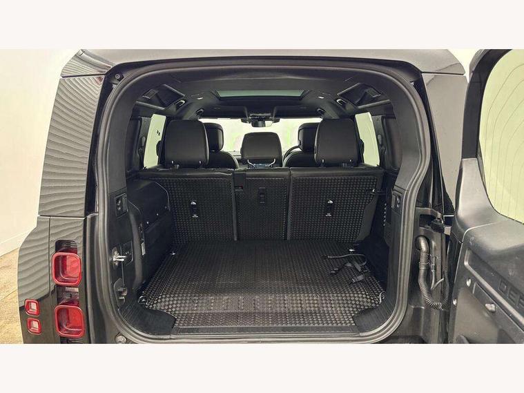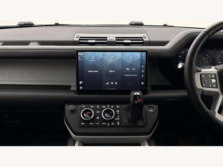 1 x USB-C (power only) & 1 x USB-C (power & data) in Row 1, 2 x USB-C in Row 2, 11.4" touchscreen, 360 degree parking aid, 3D Surround Camera with 360 View, 180 Rear View, Front Traffic Detection, Forward Vehicle Guidance, Tow Hitch Assist and clear sight Ground View, Adaptive cruise control, Android Auto, Apple CarPlay, Blind spot assist, Bluetooth system, Brake pad wear indicator, Clear exit monitor, Connected navigation pro, Driver condition monitor, Electric power assisted steering (EPAS), Interactive driver display, Lane keep assist, Push button start, Rear collision monitor, Rear traffic monitor, Traffic sign recognition with adaptive speed limiter, Trip computer, Wireless device charging, 8 speed automatic transmission, AC/DC charging, Adaptive dynamics, All wheel drive system, Electronic air suspension, Home charging cable mode 2 basic, Public charging cable, Twin speed transfer box, DAB Radio (Digital Audio Broadcasting), Meridian 700w surround sound audio system with 15 speakers, Pivi pro connected, Automatic headlight levelling, Automatic headlights, Black exposed rear recovery eyes, Body coloured bonnet, Centre high mounted stop light, Electric heated/power fold door mirrors with approach lights and auto dimming driver side, Electric windows with one touch open/close and anti-trap, Follow me home lighting, Front fog lights, Heated rear window with timer, Heated windscreen, Illuminated metal treadplates with brand name script, LED tail lights, Matrix LED headlights with signature DRL, Privacy glass, Puddle lights, Rain sensing windscreen wipers, Rear fog lights, Rear side wing doors, Rear wiper, Side hinged tailgate, Sliding panoramic roof, Standard tail door, Trailer stability assist, X-Dynamic badge, 12V power socket in loadspace, 3 seat bench in 2nd row, Alpine lights, Configurable cabin lighting, Durable rubber cabin flooring, Durable rubber loadspace flooring, Electric reach + rake adjustable steering column, Electrically adjustable steering column, Extended leather upgrade, Footwell lights, Front passenger isofix child seat attachment, Heated steering wheel, Loadspace cover, Loadspace Hook, Multifunction steering wheel, No flat load floor storage, Overhead stowage for sunglasses, Rear headrests, Rear ISOFIX, Rear reading lights, Single front passenger seat, Soft close tail door, Standard seat configuration, Storage glovebox, Sunvisors with illuminated vanity mirrors, Twin front cupholders, Non-smoker package, Online pack with data plan - Defender, 5 x 3 point seatbelts, ABS, Brake hold function, Cornering brake control (CBC), Customer configurable autolock, Driver and passenger airbags, DSC - Dynamic Stability Control, EBD - Electronic brakeforce distribution, Electric parking brake (EPB), Emergency brake assist, Emergency braking, ESP + traction control, Front airbags with passenger seat occupant detector, HDC - Hill descent control, Hill launch assist, Low traction launch, Power operated child locks, Remote for (e-Call, Optimised assistance call, InControl app, Climate, beep and flash and door), RSC - Roll stability control, Seat belt reminder, TPMS (Tyre pressure monitoring system), Alarm, Immobiliser, Intrusion sensor, Keyless entry, Locking wheel nuts, Secure tracker pro,