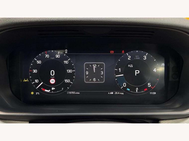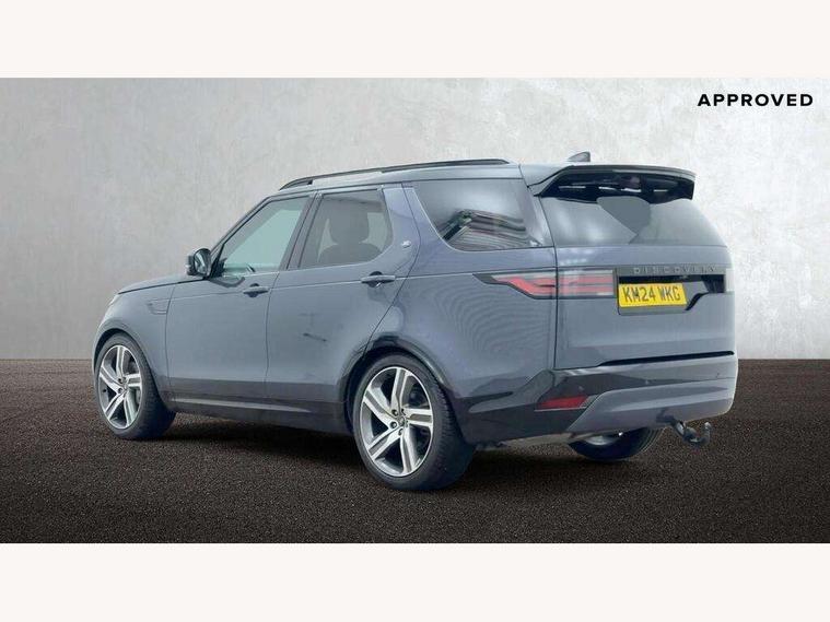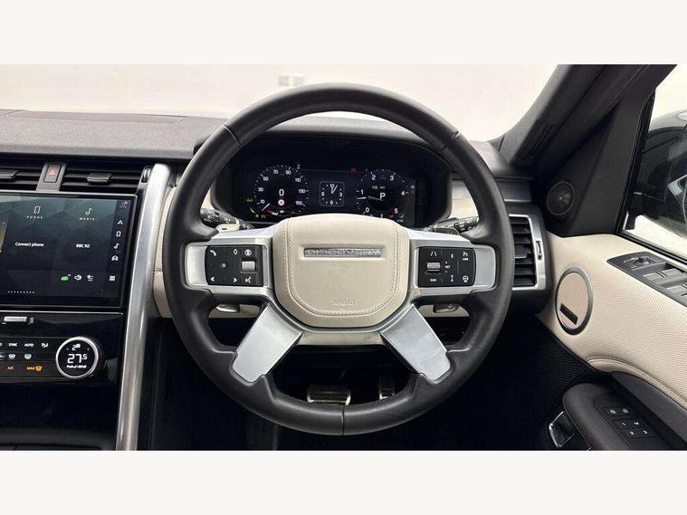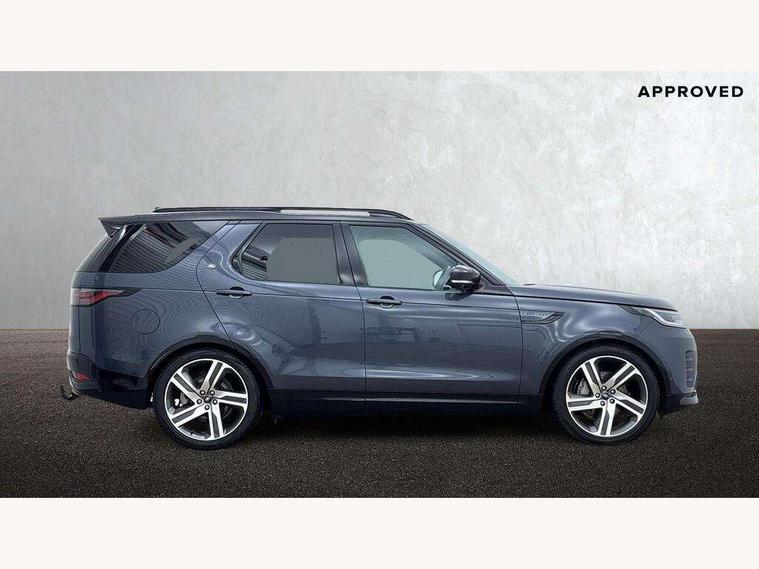 11.4" touchscreen, 3D surround camera, Adaptive cruise control, Android Auto, Apple car play, Blind spot assist, Driver condition monitor, Electric power assisted steering (EPAS), Emergency services call system, Front and rear parking aid, Interactive driver display, Lane keep assist, Power inner tailgate, Power tailgate/boot lid, Push button start, Rear collision monitor, Rear traffic monitor, Remote, Remote boot release, Service interval indicator, Speed proportional steering, Sportshift selector, Stop/start system, Traffic sign recognition with adaptive speed limiter, Trip computer, Wade Sensing, Adaptive dynamics, Dynamic stability control, Electronic air suspension, Front axle open differential, Digital Audio Broadcast radio-DAB, Dynamic volume control, Pivi pro connected, USB/aux input socket, Acoustic laminated windscreen, Animated directional indicators, Auto dimming interior rear view mirror, Automatic headlight levelling, Automatic headlights, Body colour bumpers, Body colour door handles, Centre high mounted stop light, D300 badge, Electric heated/power fold memory door mirrors with approach lights and auto dimming driver side, Electric windows with one touch open/close and anti-trap, Heated rear window, Heated windscreen, LED darkend tail lights, Matrix LED headlights with signature DRL, Narvik black Discovery script, Privacy glass, Puddle lights, Rain sensing windscreen wipers, Rear fog lights, Rear side wing doors, Rear wash/wipe, Trailer stability assist, Variable intermittent wiper, 12V power sockets, 12V USB charging socket in loadspace, 2 seat bench in 3rd row, 3 seat bench in 2nd row, 60/40 electric heated folding rear seats with manual slide and powered recline, centre headrest and armrest, Central hinged twin lidded storage, Configurable cabin lighting, Ebony morzine headlining, Electric adjustable steering column, First and second row door bins, Footwell lights, Front and rear 12V with front USB, Front passenger seat isofix location point, In-facia storage, Isofix child seat preparation for front passenger seat, Leather steering wheel, Loadspace cover, Loadspace Hook, Loadspace light, Lockable glovebox, Lower centre console storage, Luggage tie downs in loadspace, Multi function steering wheel, Overhead lighting console, Premium carpet mats, Rear ISOFIX, Shopping bag hook, Single front passenger seat, Storage glovebox, Sunvisors with illuminated vanity mirrors, Third row storage, Treadplates with metal inserts, Twin front cupholders with cover, USB with 12V socket in centre console, Black exterior pack - Discovery Dynamic SE/HSE, Online pack with data plan - Discovery, 3x3 point rear seatbelts, Anti-lock braking system (ABS), Brake pre-fill technology, Cornering brake control, Curtain airbags, Customer configurable autolock, Driver and passenger airbags, EBD - Electronic brakeforce distribution, Electronic traction control, Emergency brake assist, Emergency braking, ESP, Front side airbags, Gradient acceleration control, Hill descent control, Hill launch assist, Power operated child locks, Rear airbags, Roll stability control, Seat belt reminder, Torque vectoring brake, Tyre pressure monitoring system, Immobiliser, Intrusion sensor, Keyless entry, Locking wheel nuts, Remote central locking, All terrain tyres,