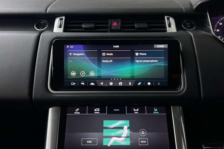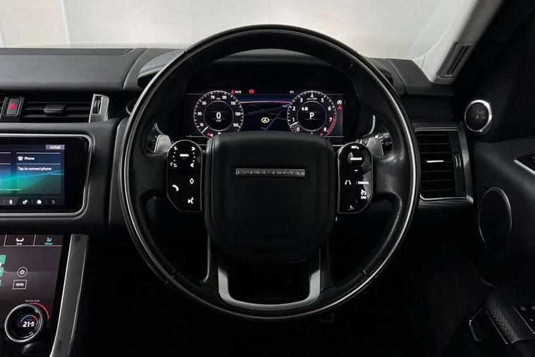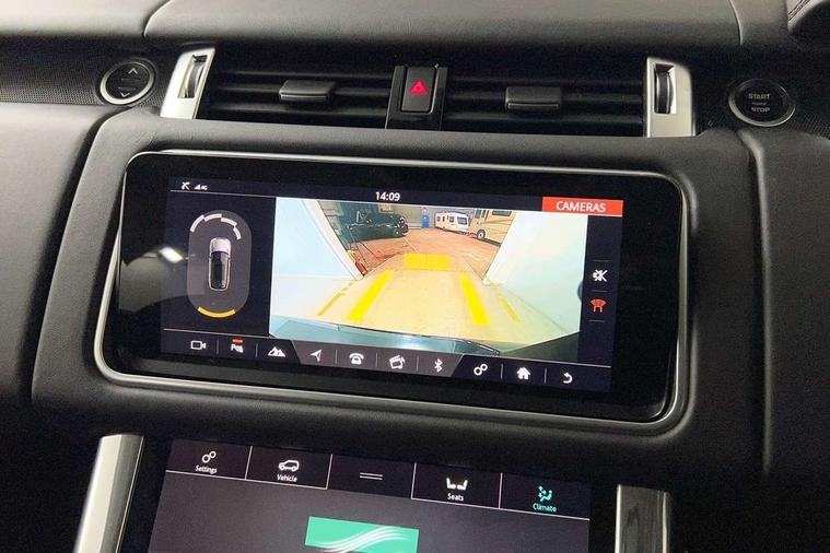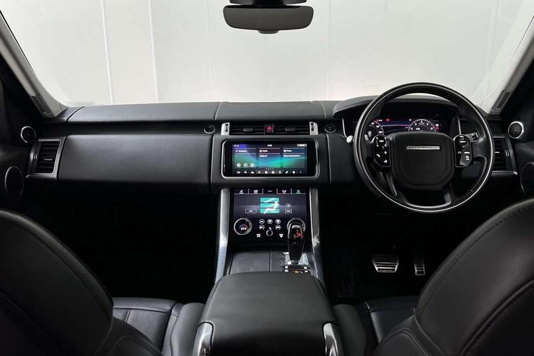 Bluetooth telephone connection, Dual view touch screen, Front parking aid with visual display, Gesture tailgate, InControl secure, Mist sensor, Navigation pro system with 10" touch screen, app interface and media storage, Push button starter, Rear park distance control, Speed sensitive power steering, TFT Virtual Instrument Panel, Trip computer, Adaptive dynamics, All terrain progress control, Electronic air suspension, Terrain Response 2 Auto, Twin speed transfer box, Bluetooth audio streaming, DAB Digital radio, InControl protect, USB/aux input socket, Adaptive brake lights, Auto dimming rear view mirror, Body coloured side sills and bumpers, Daytime running lights, Door/quarter lights in toughened plate glass, Electric front/rear windows/one touch operation, Electric heated, adjustable, folding door mirrors with memory + approach lamp, Follow me home headlights, Front fog lights, Heated rear window, Heated washer jets, Heated windscreen, Illuminated aluminium treadplates with Range Rover lettering, Laminated front side windows, Laminated windscreen, LED rear lamps, Rain sensor windscreen wipers, Rear wash/wipe, Remote window closing, Trailer stability assist, Twin bright tailpipes, 2 way active front head restraints, 2 way rear head restraints, Auto air recirculation, Bright metal foot pedals, Centre armrest with cubby box, Climate control memory, Driver's footrest, Front and rear cupholders, Front door storage bin, Front map lights, Front seat back map pockets, Front stowage pocket, Front/rear passenger grab handles, Glovebox, Isofix child seat preparation, Leather steering wheel with chrome inserts, Luggage compartment lighting, Multifunction steering wheel, Pollen filter, Reach/rake electric adjustable steering column + entry/exit tilt away, Rear centre armrest, Roller blind loadspace cover, Satin chrome gearshift paddles, Sports pedals, Three 12V accessory power outlets, Extended leather pack - Range Rover Sport, InControl connect Pack - Range Rover Sport, 3 point seatbelts on all seats, ABS + EBD + EBA, Auto lock system when vehicle in motion, Auto locking differential, Autonomous emergency braking, Cornering brake control (CBC), Curtain airbags, DSC - Dynamic Stability Control, Dual stage driver/passenger airbags, Electric child locks, Electronic parking brake, Electronic traction control, Front seatbelt pretensioners, Front side airbags, Grey brake calipers, Height adjustable front seatbelts, Hill descent control, Low traction launch, Roll stability control, Seatbelt warning, Tyre pressure monitoring system, Immobiliser, Keyless entry, Locking wheel nuts, Perimetric and volumetric anti theft alarm, Remote locking,