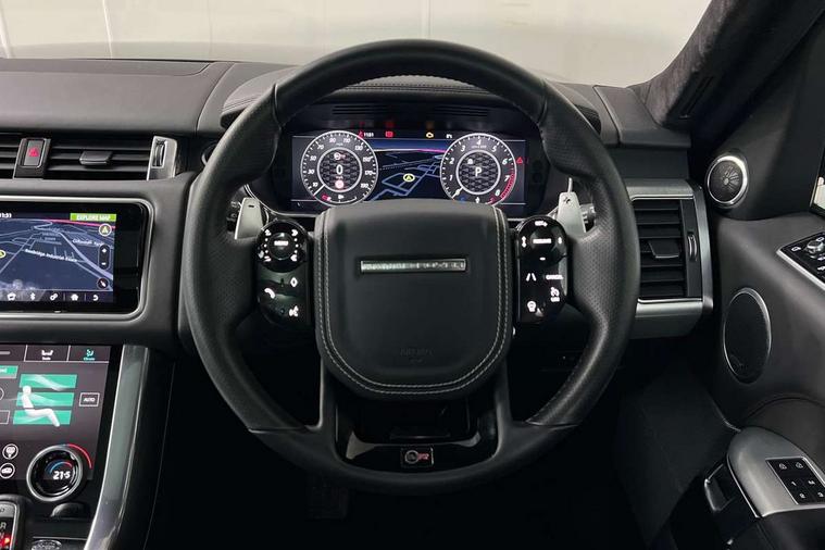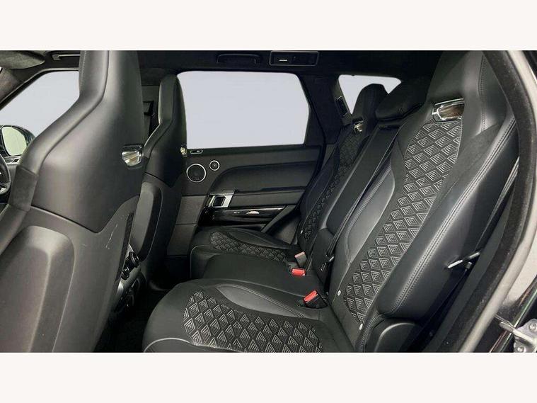 360 Parking aid, All Terrain Info Centre, Android Auto, Apple car play, Bluetooth connectivity, Clear exit monitor, Driver condition monitor, Electric power assisted steering (EPAS), Incontrol apps in vehicle touchscreen, Interactive Driver display instrument cluster, Mist sensor, Navigation pro system with 10" touch screen, app interface and media storage, Powered gesture tailgate/boot lid, Pro services and wifi hotspot, Push button start, Rear traffic monitor, Remote premium - Upgraded Incontrol remote app including remote climate control (engine dependent), remote lock + Unlock and remote beep + flash, Touch pro duo system, Traffic sign recognition with adaptive speed limiter, Trip computer, Adaptive dynamics, All terrain progress control, Configurable dynamics, Electronic active differential with brake torque vectoring, Gradient release control (GRC), SVR sports suspension with dynamic response (active roll control), Terrain Response 2 with dynamic program, Twin speed transfer box, Bluetooth audio streaming, DAB Radio (Digital Audio Broadcasting), Incontrol protect - SOS emergency call with automatic collision detection, optimised assistance call and Incontrol remote app essential, USB/aux input socket, Acoustic front and toughened rear side glass, Acoustic laminated front windows, Active exhaust system with integrated exhaust mounted quad tailpipes, Adaptive brake lights, Auto dimming interior rear view mirror, Automatic headlights, Body coloured side sills and bumpers corners, Centre high mounted stop light, Electric windows with one touch open/close and anti trap, Electrical towing preparation, Follow me home lighting, Front and rear recovery eyes, Headlight power wash, Heated rear window, Heated windscreen includes heated washer jets, Illuminated metal treadplates with brand name script, LED rear lamps, Power fold, auto-dimming, heated door mirrors with memory and approach lights, Rain sensing windscreen wipers, Rear fog lights, Rear side wing doors, Rear wash/wipe, Remote window closing, Side repeater indicators in mirror, SVR badge, SVR exterior styling, Switchable sports exhaust, Trailer stability assist, Unique light weight exhaust system, 16 way driver/passenger electrically adjustable SVR performance seats with memory, 2 way rear head restraints, 3 seat bench in 2nd row, 4 way lumbar support with memory function, 60/40 split folding rear seat, Aluminium gear shift paddles, Auto air recirculation, Bright metal foot pedals, Centre console with armrest, Climate control memory, Configurable Ambient interior lighting, Customer configurable single point entry, Driver's footrest, Extended leather upgrade includes door top rolls and leather instrument panel mid section, Front and rear cupholders, Front and rear premium carpet mats, Front door storage space, Front map lights, Front seat back map pockets, Front stowage pocket, Front/rear passenger grab handles, Heated steering wheel, Integrated front head restraints, Isofix child seat preparation, Loadspace light, Loadspace mounting provisions, Lockable glovebox, Multifunction steering wheel, Pollen filter, Power socket, Reach/rake electric adjustable steering column + entry/exit tilt away, Rear centre armrest, Rear ISOFIX, Roller blind loadspace cover, Single front passenger seat, Sports pedals, SVR leather steering wheel, SVR Performance seats, Three 12V accessory power outlets, Smartphone pack - Range Rover Sport, 3 point seatbelts on all seats, Anti-lock braking system (ABS), Brake pre-fill technology, Cornering brake control (CBC), Curtain airbags, Customer configurable autolock, DSC - Dynamic Stability Control, Dual stage driver/passenger airbags, EBD - Electronic brakeforce distribution, Electric parking brake, Electronic traction control, Emergency braking includes city, urban AEB and pedestrian, Front seatbelt pretensioners, Gradient acceleration control, Height adjustable front seatbelts, High speed emergency braking, Hill descent control, Hill launch assist, Low traction launch, Passenger seat occupant detector with front airbags, Power operated child locks, Roll stability control, Seatbelt warning, TPMS (Tyre pressure monitoring system), Immobiliser, Intrusion sensor, Keyless entry, Locking wheel nuts, Perimetric and volumetric anti theft alarm, Remote locking,