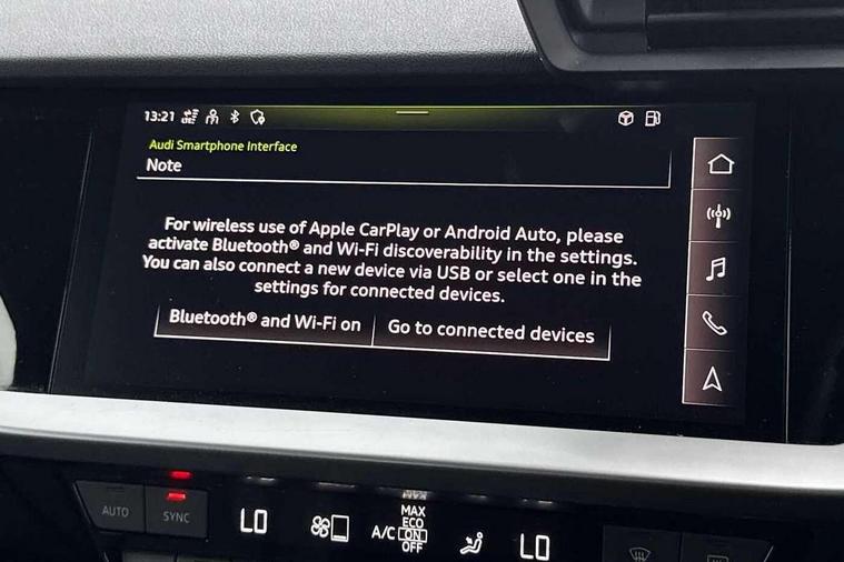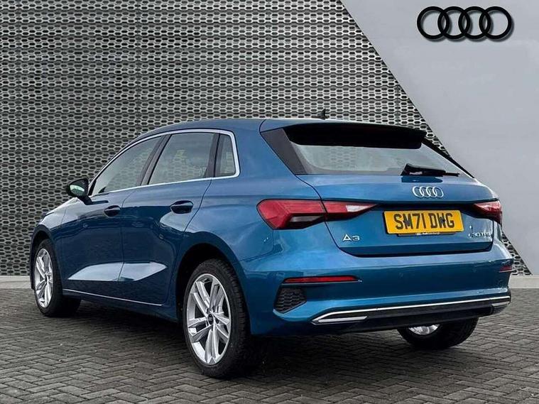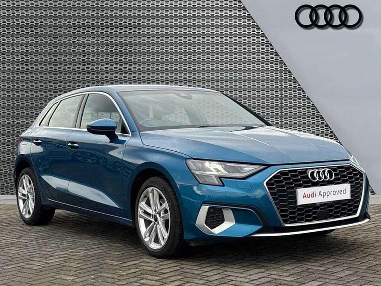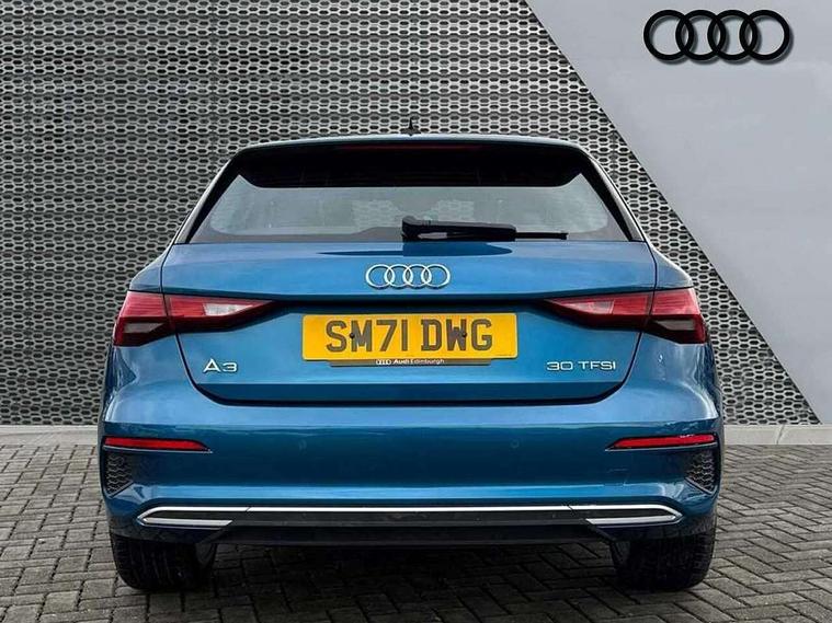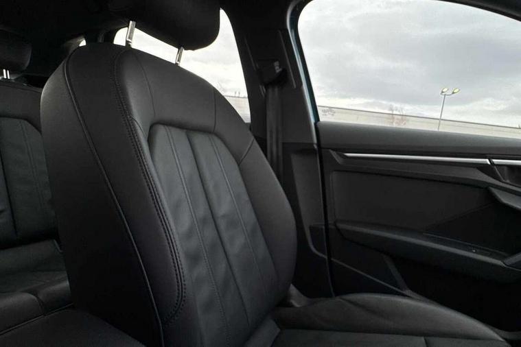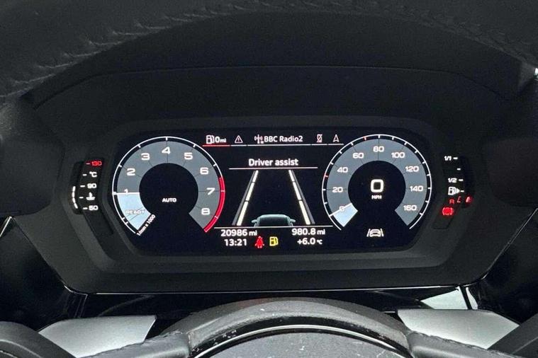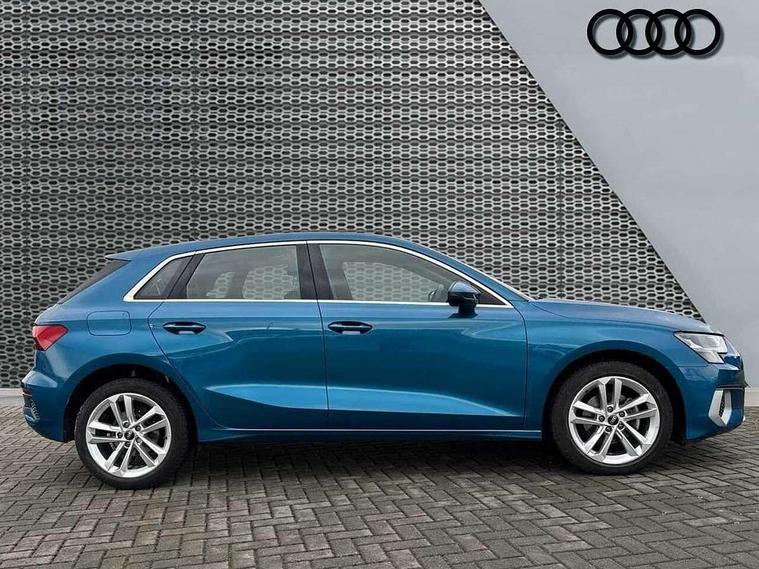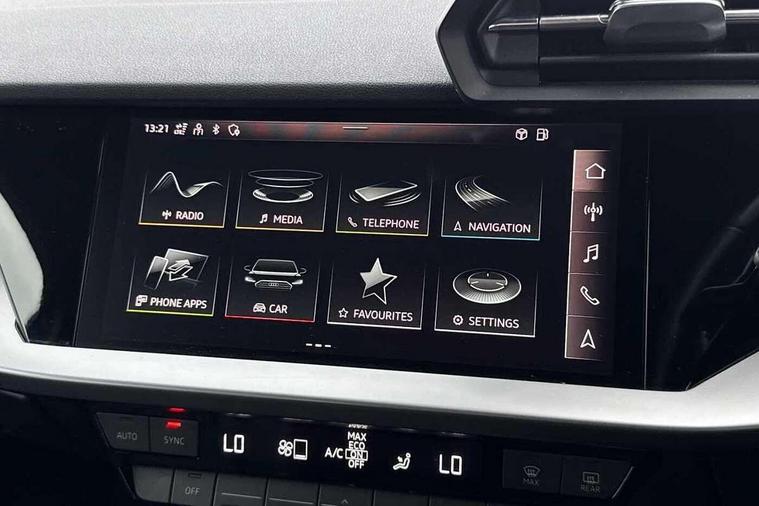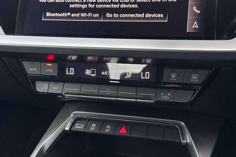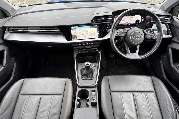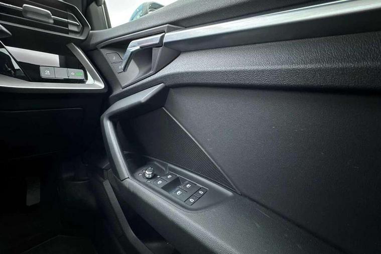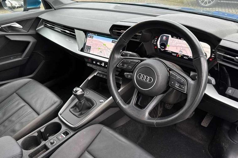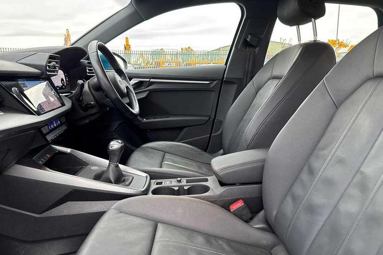 Audi connect emergency call and service, Audi drive select (Auto, Comfort, Dynamic and Individual), Audi smartphone interface, Audi Virtual Cockpit - 10.25" digital and colour instrument cluster, Automatic start/stop system with recuperation, Bluetooth interface, Collision avoidance assistant, Electromechanical power speed sensitive steering, Lane departure warning system, MMI Navigation Plus with high resolution 10.1" colour touch screen display, Service indicator, Trip computer, Voice control system with natural language interaction, Standard suspension, 2xUSB-C connection with data and charging functions, 6 passive loudspeakers, DAB Digital radio, 3rd brake light, Acoustic glass windscreen, Aluminium window trim, Auto dimming frameless rear view mirror, Body colour exterior mirrors, Body colour roof spoiler, Electrically adjustable/heated/folding/auto dimming door mirrors with integrated LED indications + kerb view function for passenger side, Front electric windows, LED daytime running lights, LED headlights and halogen rear lights, Light and rain sensors, Rear electric windows, Rear window, rear door windows and rear side windows in clear glass, Rear wiper, 12V socket and storage compartment in front centre console, 40/20/40 split folding rear seat bench with cupholder, Dual zone electronic climate control, Front and rear centre armrest, Front and rear headrests, Front door sill trims with aluminium inlay, Front/rear floor mats, Height and reach adjustable steering wheel, Interior lighting - Front and rear roof module including reading lights, glove compartment light and right hand side, Luggage compartment floor covering, Manual boot compartment lid, Manually adjustable front seats, Seat side bolsters, Steel grey cloth headlining, Twin leather upholstery, Aluminium interior elements pack - A3 Sportback, Sport styling pack - A3 Sportback, 3x3 point rear seat belts, Driver and front passenger airbag with passenger airbag deactivation, Electronic Stabilisation Control (ESC) including ABS, ASR and EDL, First aid kit with warning triangle and 2 safety vests, Front side airbags with head airbags and interaction airbag, Hill hold assist, Pre-sense front with pedestrian and cyclist detection, Seatbelt monitoring, Tyre pressure loss indicator, Anti theft alarm, Anti-theft wheel bolts, Electronically operated child lock, Immobiliser, Remote control central locking, Inlays with silk effect paint in platinum grey,