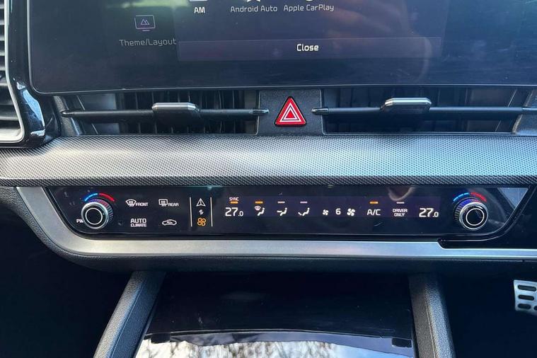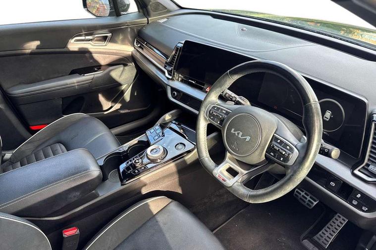 12.3" Display with navigation, 12.3" supervision colour cluster display, 360 degree around view monitor, Apple car play/Android Auto with voice control, Blind spot collision avoidance assist, Blind spot view monitor, Drive mode selector, E-call, Forward collision avoidance assist (FCA) - city/pedestrian/cyclist/junction covering, Front and rear parking sensors, Highway Driving Assist (HDA), Intelligent speed limit assist, Kia Connect (UVO), Lane Following Assist (LFA), Lane keep assist, Low washer fluid warning, Parking collision avoidance assist (PCA), Remote smart parking assist, Reversing camera system integrated into centre fascia screen, Smart cruise control with stop and go functionality, Smart power tailgate, Speed sensitive power steering, Trip computer, Windscreen washer level indicator, Wireless Smartphone charger, Intelligent Stop and Go, Bluetooth audio streaming, DAB Radio with MP3, Harman Kardon premium sound system, Rear USB port, Steering wheel mounted audio controls, USB C type charging ports on centre console, USB C type charging ports on side of front seats, USB port for connection of a media device, All round electric windows with drivers and front passenger auto up/down function, Automatic headlight control system, Automatic window defogger, Backlite glass heated with timer, Body colour and black bumper with silver accents, Body colour exterior door handles, Body colour radiator upper garnish and door garnish, Dual LED adaptive headlamps, Electric panoramic glass sunroof (Electric one touch with safety function), Electrically adjustable/heated/folding door mirrors with LED indicators, Front and rear chrome skid plates, Gloss black door mirrors, Gloss black radiator grille, Gloss black side sill and wheel arch body mouldings, Glossy black roof rack, High beam assist, Interior electrochromic mirror, LED daytime running lights, LED front fog lamps, LED High mounted stop light, LED rear combination lamp, Rain sensing wipers with aero blades, Rear fog lamp, Rear privacy glass, Rear side wing doors, Rear spoiler, Rear wiper, Satin finished beltline, Silver coloured inserts to bumpers, Tinted rear glass, Trailer stability assist, 10 way driver/8 way passenger electrically power adjustable seats, 12V power socket in front centre fascia and luggage compartment, 3 seat bench in 2nd row, 3 x passenger assist grips, 40/20/40 split folding rear seat, All-round height adjustable headrests, Ambient lighting, Black headlining, Centre console storage box, Cupholders in rear armrest, D-Shaped sports leather steering wheel and perforated inserts with GT-Line logo, Door courtesy lamps, Drink holder at centre armrest, Driver and front passenger side sunvisors with illuminated vanity mirrors, Driver seat memory function, Drivers seat power lumbar support, Front and rear door storage, Front seat and rear pockets, Front/rear centre armrests, Gear shift indicator, Glovebox illumination, Heated front and outer rear seats, Heated steering wheel, Interior door lock/unlock function, ISOFIX Child seat top tethers and anchor fixings outer rear seats, LED interior personal lamp, LED lighting in overhead console, Luggage area LED light, Luggage area load cover, Luggage net with hooks, Metal paint interior door handles, Paddle shift controls, Rear cabin light, Rear coat hooks, Single front passenger seat, Sports pedals, Suede leather upholstery, Three zone climate control, Tilt/telescopic adjustable steering wheel, Ventilated front seats, Ventilation ducts to rear compartment, Active front headrests, All round 3-point seatbelts, Anti-lock braking system (ABS), Dual front side airbags, Dual horn, Electronic parking brake, Electronic stability control with downhill brake control, Front passenger airbag cut-off switch, Front seatbelt pretensioners + load limiters, Height adjustable front seatbelts, Hill start assist control (HAC), Impact sensing auto door unlocking, Multi collision brake assist, Rear door child safety locks, Rear seat alert system, Traction control, Twin curtain airbags, Twin front airbags, Tyre pressure monitoring system, Advanced anti-theft system including immobiliser and alarm, Door deadlocks, Engine Start/Stop Button with Smart Entry System, Locking wheel nuts, Speed sensitive auto door locking, Visible vehicle identification number, Aluminium pattern finish centre fascia and door garnish, 18" GT-Line alloy wheels, Michelin tyres, Tyre mobility kit,