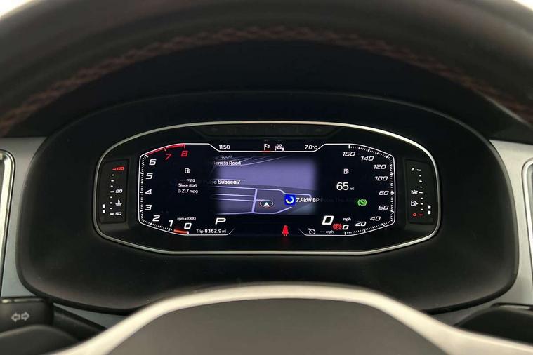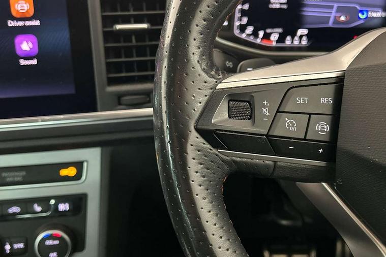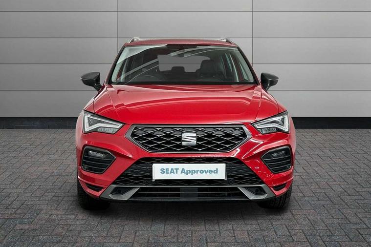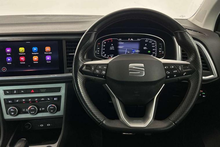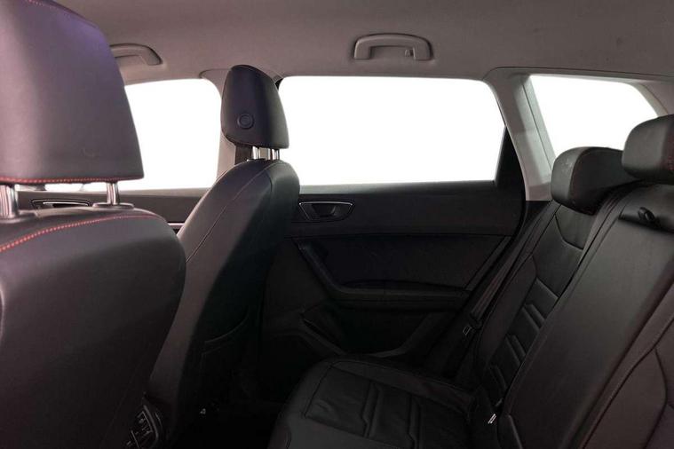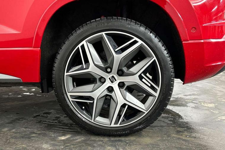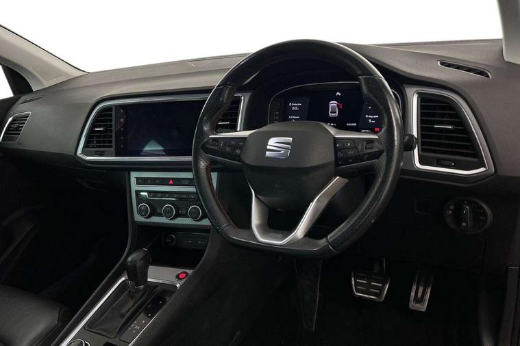 10" Digital cockpit, Cruise control system with speed limiter, E-call, Outside temperature gauge, Progressive power assisted steering, SEAT drive profile with driving experience button - Normal, Sport, Eco and Individual mode, gearshift, steering and throttle response, Self parking functionality (includes front and rear parking sensors), Trip computer, Wireless full link smartphone integration, Wireless phone charger, Steering wheel mounted audio/phone controls, Body colour bumpers, Body coloured wheel arch surrounds, Chrome front grille frame, Chrome roof rails, Chrome side window trim, Dark tinted rear windows, Daytime running lights, Door mirrors with welcome light silhouette, Dynamic headlight range control with self adjusting whilst driving, Electric adjustable/heated/folding door mirrors, Front and rear electric windows, Full LED headlamps with lens and LED front fog lamps with cornering function, Illuminated aluminium front door sill, LED rear tail lights with dynamic indicators, Rear fog lights, Rear side wing doors, Rear spoiler, Rear wash/wipe, Simulated exhaust pipes in chrome frame, 12V socket in front, 3 seat bench in 2nd row, 60/40 split folding rear seat, Aluminium pedals, Dual zone climate control, Electric adjustable driver seat with lumbar adjustment, Front and rear head restraints, Front centre armrest, Front seat back storage pockets, Heated front seats, Height adjustable passenger seats with lumbar adjustment, ISOFIX points in outer rear seats with top tether anchorage points, Leather steering wheel and gear knob, Leather upholstery with front comfort seats, Rear armrest and easy back seat release mechanism from boot, Single front passenger seat, Steering wheel mounted gearshift paddles, Convenience pack - Ateca, Interior lighting pack - Ateca, Navigation system pack with DAB - Ateca, 3x3 point rear seatbelts, ABS, Traction control system (TCS), Electronic stability control (ESC) and Electronic differential lock system (XDS), Airbags - Driver and front passenger airbag with deactivation, front side, two curtain and driver's knee airbags, Electric parking brake with auto hold function, Front and rear seatbelt reminder, Front assist with autonomous emergency braking, Hill hold control, Manual rear child locks, Tiredness recognition system, Traction control, Tyre pressure monitoring system, Alarm, Keyless entry, Locking wheel bolts, Chrome interior detailing, 19" Exclusive machined alloy wheels with decorative inserts 36/7 in cosmo grey,