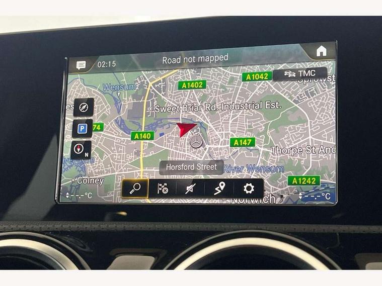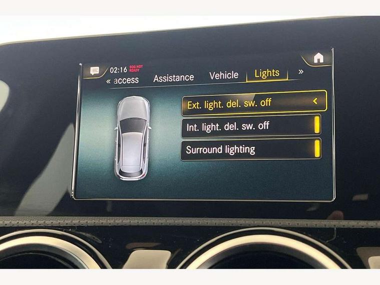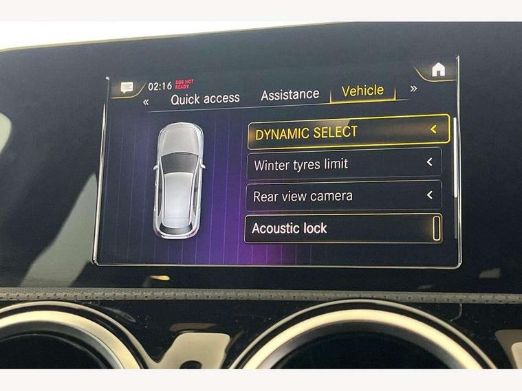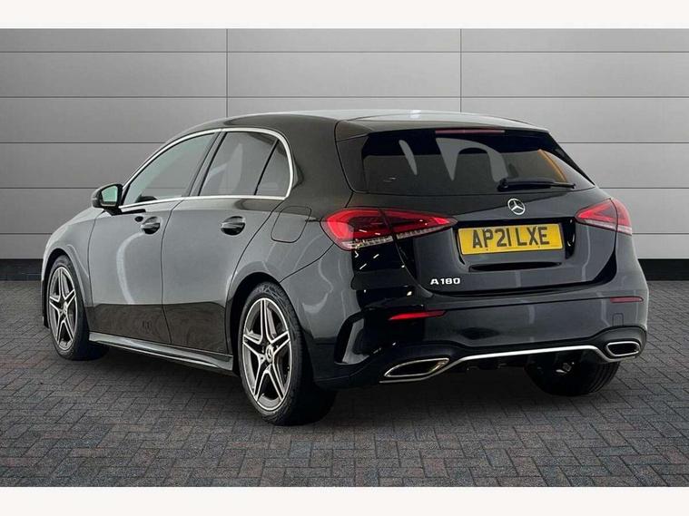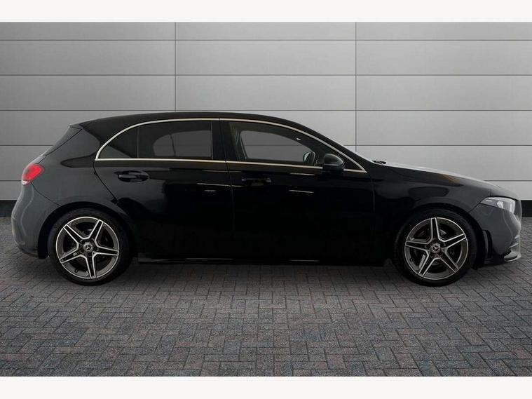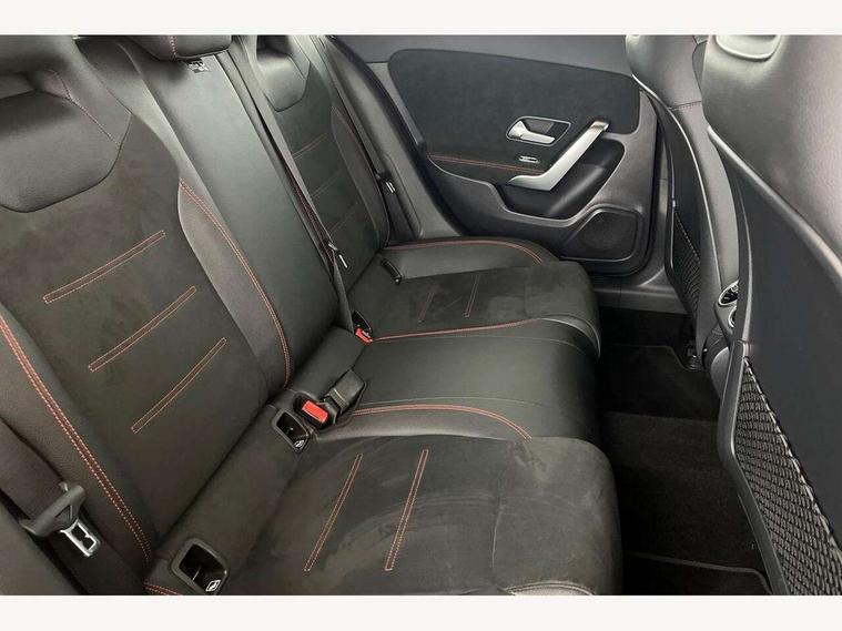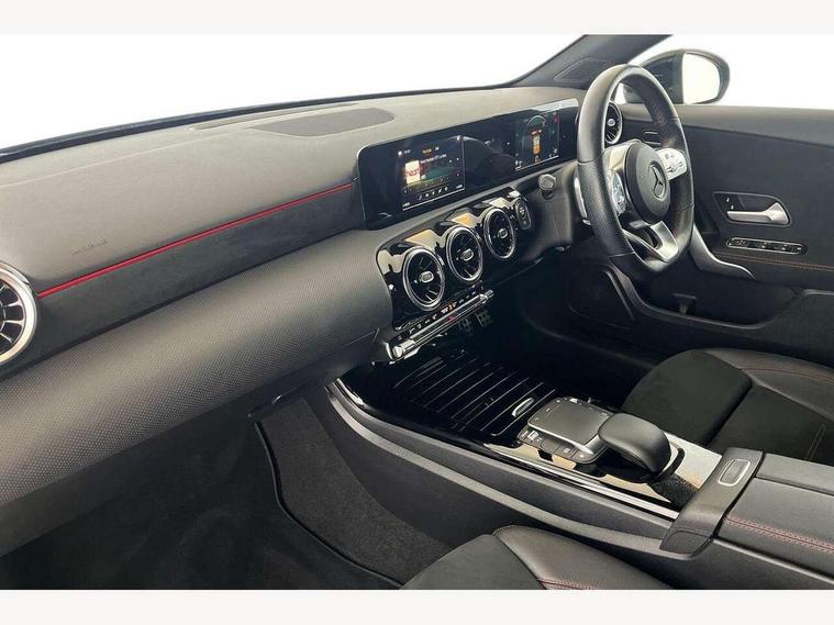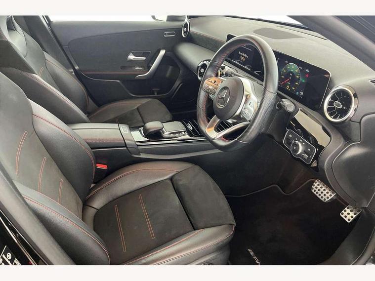 180 degree rear view camera with parking guidelines, 7" colour screen in instrument panel, 7" touchscreen media display, Attention assist, Brake pad wear indicator warning light, Car wash mode, Cruise control + speed limiter, Direct steering, Dual bluetooth interfaces, DYNAMIC SELECT with a choice of driving modes (ECO, Comfort, Sport and Individual), ECO start/stop function, Fluid level warning indicator for fuel, oil, coolant and washer fluid, Hard-disk navigation, Hey Mercedes Voice activation, Lamp failure indicator, Mercedes me connect including emergency call system, accident recovery, breakdown and maintenance management, Mercedes me remote services, Outside temperature gauge, Owners manual in English, Pre-installation for private car sharing, Preinstallation for Mercedes Benz link, Service indicator (ASSYST), Speed sensitive power steering, Trip computer, Lowered comfort suspension, Rear axle torsion beam, 2 USB ports (type C) in rear stowage compartment and one in front of center console, 6 speakers, DAB Digital radio, MBUX multimedia system with DAB digital radio and touchpad including satellite navigation, Mercedes-Benz sound system - 100W, 4 Electric Front and Rear windows, Adaptive brake lights, AMG bodystyling - Front apron with splitter in chrome, rear apron with chrome trim and chrome visible trim elements in tailpipe, Black weather strip, Body colour bumpers, Body colour door handles, Body colour side skirt, Body coloured door mirrors, Chrome beltline trim, Diamond radiator grille with chrome pins and silver louvre + chrome insert, Electric adjustable and heated door mirrors with integrated LED side indicators, Exhaust system - Twin visible tailpipes in polished stainless steel, Headlamp assist automatic headlamp activation, Heated glass rear windscreen + timer control, LED high performance headlamps with integrated LED daytime running lights, LED tail lamp, LED third brake light, Privacy glass, Radio aerial, Rain sensing windscreen wipers with two sensitivity settings, Rear fog lights, Rear wiper, Window line trim strip in chrome, 3 Spoke flat bottom leather multi function steering wheel with perforated leather in grip area, 40:20:40 split folding rear seats, Artico man-made leather/Microfibre Dinamica upholstery with red contrast stitching, Auto Mercedes-Benz child seat recognition sensor, Black air vents with surround in silver chrome, Black roof lining, Brushed stainless steel sports pedals with rubber studs, Controller on centre console with chrome surround, Floor mats with stitched edging and AMG lettering, Front centre armrest with storage compartment, Front door sills with Mercedes Benz lettering, Front seat backs luggage nets, Front seat cushion length adjustment, Galvanished gear shift paddles on steering wheel, Heated front seats, Height/reach adjustable steering column, Interior mirror with reading lamps in black and frameless, Manual height adjustable front seats, Rear head restraints, Seat occupancy sensor for front passenger seat, Sports seats with integrated headrests, Stowage compartment in centre console with retractable cover, Sunvisors with illuminated vanity mirrors, Touchpad on center console, Twin front cupholders, Two zone thermotronic luxury automatic climate control, Light and sight pack - A Class, Seat comfort pack - A Class, 3 rear 3 point seatbelts, ABS with Brake Assist, Active bonnet, Active brake assist includes forward collision warning system with autonomous braking, Adaptive brake assist with hold function and hill start assist, Black seatbelts, Childproof locks manually operated for rear doors and electrically operated for rear power windows, Crash responsive emergency lighting, Driver and passenger head and side airbags, Drivers knee airbag, Dual stage driver/passenger airbags, Electronic parking brake, ESP curve dynamic assist, ESP with ASR, Front and rear seatbelt reminder, Front brake callipers with Mercedes Benz lettering, ISOFIX and top tether child seat fixing points in two outer rear seats, Tyre pressure monitoring system, Warning triangle and first aid kit, Window airbags, Alarm system/interior protection/immobiliser, Keyless Go, Remote central locking and crash sensor with emergency opening function, Urban guard vehicle protection system with immobiliser and interior protection, Dinamica microfibre trim in black, 18" AMG 5 twin spoke light alloy wheels in titanium grey with highsheen finish, Summer tyres, Tirefit sealant kit,