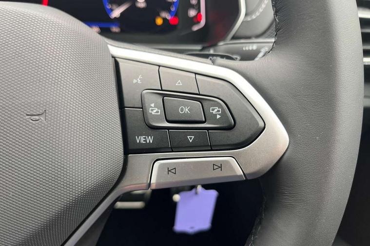 'Lights On' Reminder warning buzzer, 10.25" Digital cockpit pro, Advanced driver attention and drowsiness monitor, Car information display, Driver profile selection including ECO function, Dynamic road sign display, E-Sim card for online connectivity, eCall emergency call system, Front and rear parking sensors, Front assist, forward collision warning, autonomous emergency braking and speed limiter, Low washer fluid warning light, Mobile phone interface with inductive charging, Multifunction computer with visual gear change recommendation for fuel consumption, Multifunction front facing camera for distance control, Operating permit alteration, Power assisted steering, Predictive adaptive cruise control, Preparation for navigation system with media and internet package, Preparation for We connect and We connect plus, Semi-automated driving assistance, travel assist including lane keeping system Lane Assist and emergency assisst, Side assist, Speedo, rev counter, electronic odometer, trip, service interval display, exterior temperature and fuel gauge, Warning sound and light for doors and tailgate open, Warning sound and light for front seatbelts unfastened, Wireless Car net app connect with Apple CarPlay, combined functionality of Apple CarPlay/Android Auto and MirrorLink, Wireless charging, Misfuel prevention device, Start-stop system with battery regeneration (recuperation - energy recovery during braking), 2 USB C ports in front, 2 USB charging sockets on the centre console in the rear charging capacity upto 45W, Diversity antenna for FM reception, Music playback - MP3, WMA and AAC files, Radio, Advanced high beam control dynamic light assist, Automatic dimming interior rear view mirror, Automatic hazard lights activation under emergency braking, Automatic headlight control and coming home and leaving home feature, Black roof rails, Body colour door handles, Body coloured bumpers, Cornering light and poor weather light, Dynamic headlight range control, Electric folding door mirror, adjustable, heated with front passenger exterior mirror lowering function, Exterior mirror housings in black, Exterior mirrors convex on the left and aspherical on the right, Front and rear electric windows, Front door sill protectors with R-Line logo, Galvanised body, Heat insulating and laminated safety glass windshield, Heat insulating darkened glass in side and rear windows, Illuminated molding between headlamps, IQ.Light LED matrix headlamps with LED separate daytime running light, LED rear tail lights with dynamic turn signal, LED third brake light, Lower door sills and door pillars in black, Privacy glass for rear side windows and rear window, Rain sensor, Rear fog light on one side, reversing light on both sides, Rear side wing doors, Rear window aerial, Rear window wiper with intermittent control, Reflectors in all doors, Scuff plates, Tailgate with integrated roof spoiler, 12V Accessory socket in centre console, 2 Front and rear reading lights incorporating LED technology, 3 rear head restraints, 3 seat bench in 2nd row, 60/40 split folding rear seat backrest, Air care climatronic 2 zone air conditioning system, Ambient lighting and logo projection, Brushed stainless steel pedals, Chrome plated radiator grille inserts, air vent surrounds and light switch surrounds, Cloth upholstery, Comfort front sport seats, Door and side trim panel, Driver and front passenger sunvisor with vanity mirror, Dust and pollen filter, Front + rear carpet mats, Front centre armrest, Front centre armrest with storage compartment, Front footwell illumination, Front seat back storage pockets, Glove compartment door with light, Heated front seats, Heating and fresh air system with 4 stage blower, Height/reach adjust steering wheel, Instrument lighting white adjustable panel illumination, Interior light with switch off delay and dimmer, Isofix anchors for child seats on outer rear seats and front passenger seats, Leather gearshift handle, Leather wrapped multifunction steering wheel with paddle shift, Luggage compartment floor, Luggage compartment lighting, Manual front seats with height adjustment, Padded dashboard, Removable luggage compartment cover, Single front passenger seat, Storage compartment in drivers and front passengers door, Titanium black roof lining, Unsplit sliding rear seat bench, Without drawers under front seats, 3 point outer rear seat belts with ECE label, 3 Point seatbelt for centre rear seat, Anti-lock Braking System (ABS) with Hydraulic Brake Assist (HBA), Automatic post collision braking system, Disc brakes in front, Disc brakes in rear, Driver and front passenger safety-optimised head restraints, Drivers and Front Passengers airbags with front passengers airbag deactivation switch, ESC with EDL and ASR (traction control), Extended and predictive pedestrian/cyclist protection, Front and rear passenger curtain airbag system including front side airbags, Height adjustable front 3 point seatbelts + pretensioners, Hill start assist, Pre crash preventive occupant protection, Proactive passenger protection system in combination with front assist, Rear door child safety locks, Rigid safety cell with front and rear crumple zones, Single tone horn, Tyre pressure loss indicator, Volkswagen roadside assistance, Alarm with interior protection, Anti theft alarm system, Anti theft wheel bolts, Electronic engine immobiliser, Remote tailgate unlocking using key fob, Black decorative trims, Titanium Black Decorative inserts - R Line, 18" York alloy wheels in black, Low rolling resistance tyres,