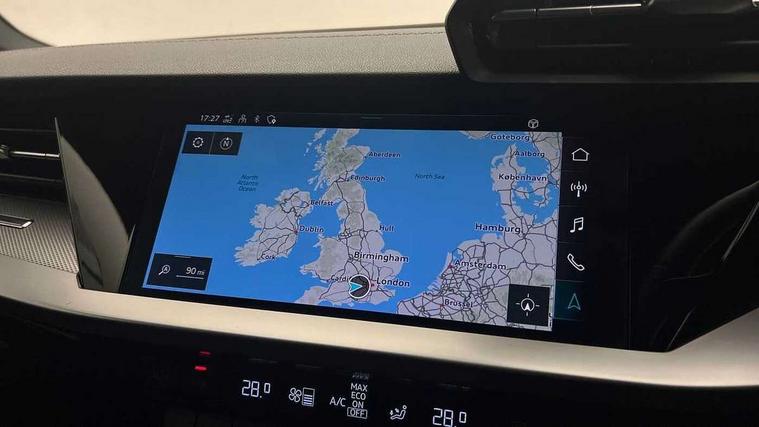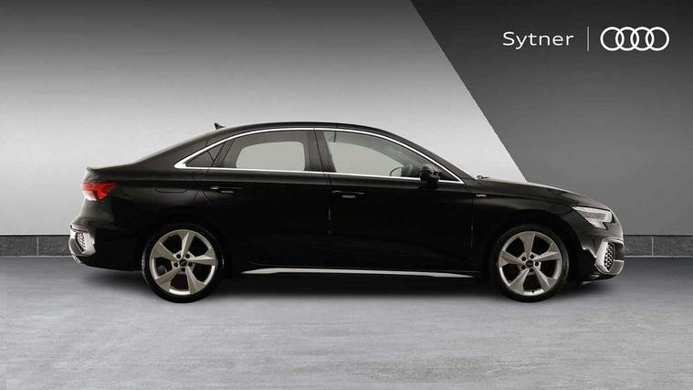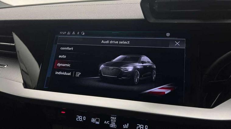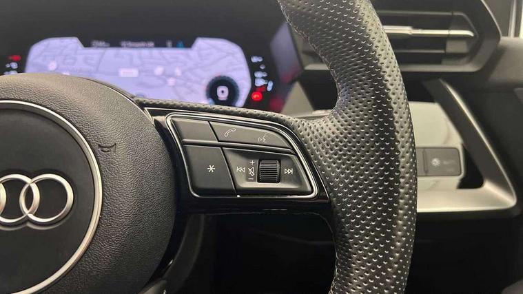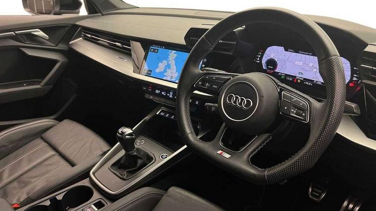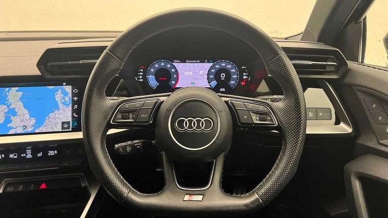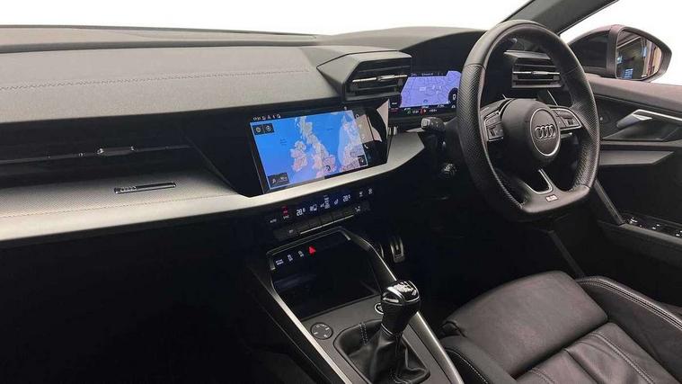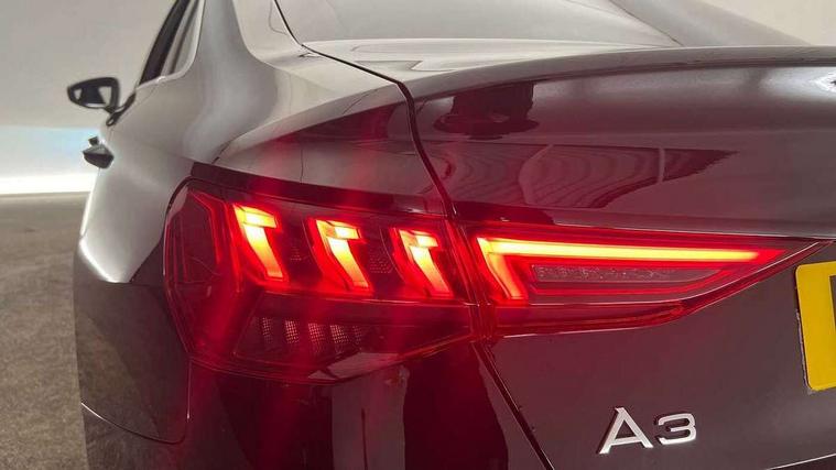 Audi connect emergency call and service, Audi drive select (Auto, Comfort, Dynamic and Individual), Audi smartphone interface, Audi Virtual Cockpit - 10.25" digital and colour instrument cluster, Automatic start/stop system with recuperation, Bluetooth interface, Collision avoidance assistant, Cruise control + speed limiter, Electromechanical power speed sensitive steering, Lane departure warning system, MMI Navigation Plus with high resolution 10.1" colour touch screen display, Rear parking sensors, Service indicator, Voice control system with natural language interaction, 2x USB Type C ports (for charging and data transfer), 6 passive loudspeakers, CD player, DAB Digital radio, 3rd brake light, Acoustic glass windscreen, Aluminium window trim, Auto dimming frameless rear view mirror, Electrically adjustable/heated/folding/auto dimming door mirrors with integrated LED indications + kerb view function for passenger side, Front electric windows, Illuminated door sills with aluminium inserts at the front with S logo, LED daytime running lights, LED headlights with LED rear lights and dynamic rear indicators, Light and rain sensors, Model and engine designation badges at rear, Privacy glass - dark tinted rear window, rear door and side windows, Rear boot, Rear electric windows, Rear side wing doors, S line bumpers, S roof spoiler, 12V socket and storage compartment in front centre console, 3 seat bench in 2nd row, 40/20/40 split folding rear seat bench with cupholder, Black cloth headlining, Dual zone electronic climate control, Front and rear centre armrest in leather, Front and rear headrests, Front/rear floor mats, Height and reach adjustable steering wheel, Illuminated vanity mirror, Interior lighting - glove compartment light and right hand side, Luggage compartment floor covering, Manual boot compartment lid, Manually adjustable front sport seats, Seat side bolsters, Single front passenger seat, Stainless steel pedals and front footrest in black, Twin leather upholstery with front sports seats S embossed logo, Aluminium interior elements pack - A3, S line styling pack - A3 Saloon, 3x3 point rear seat belts, Driver and front passenger airbag with passenger airbag deactivation, Electronic Stabilisation Control (ESC) including ABS, ASR and EDL, First aid kit with warning triangle and 2 safety vests, Front side airbags with head airbags and interaction airbag, Hill hold assist, Pre-sense front with pedestrian and cyclist detection, Seatbelt monitoring, Tyre pressure loss indicator, Anti theft alarm, Anti-theft wheel bolts, Immobiliser, Manual child locks, Remote control central locking, Aluminium air vent surrounds, Aluminium trim elements, Dark spectrum aluminium inlays, accent surfaces in the dashboard and centre console in platinum grey silk effect paint finish,