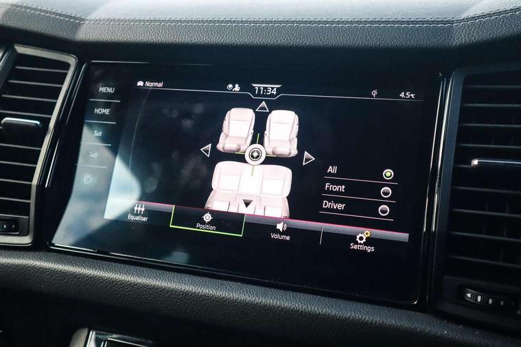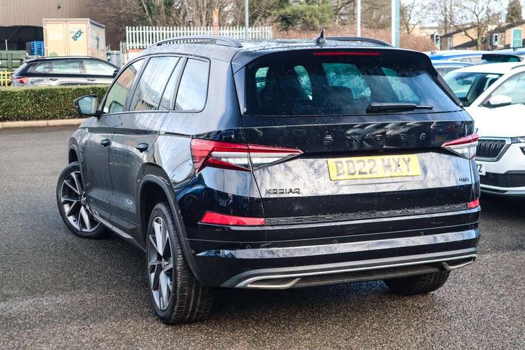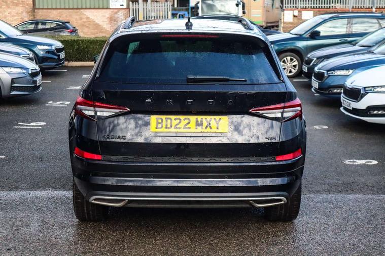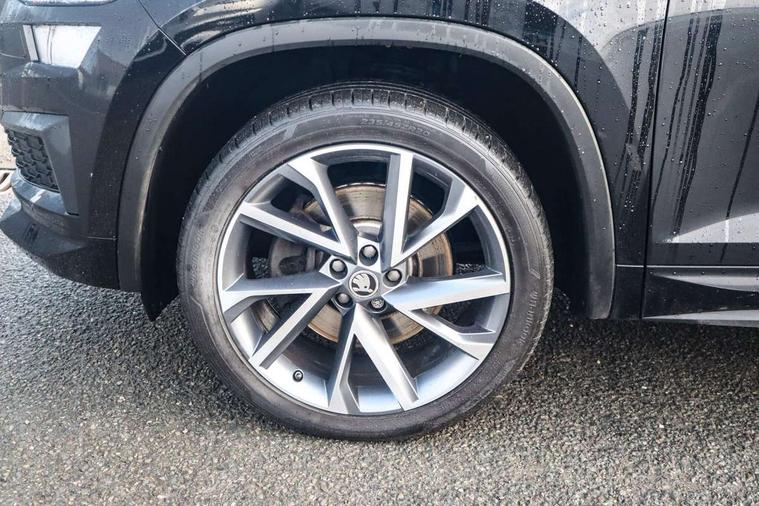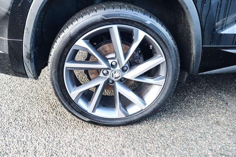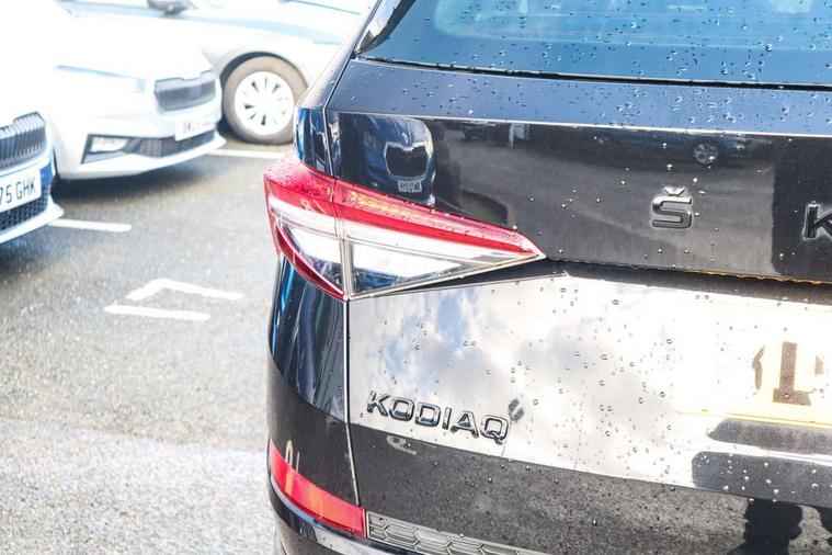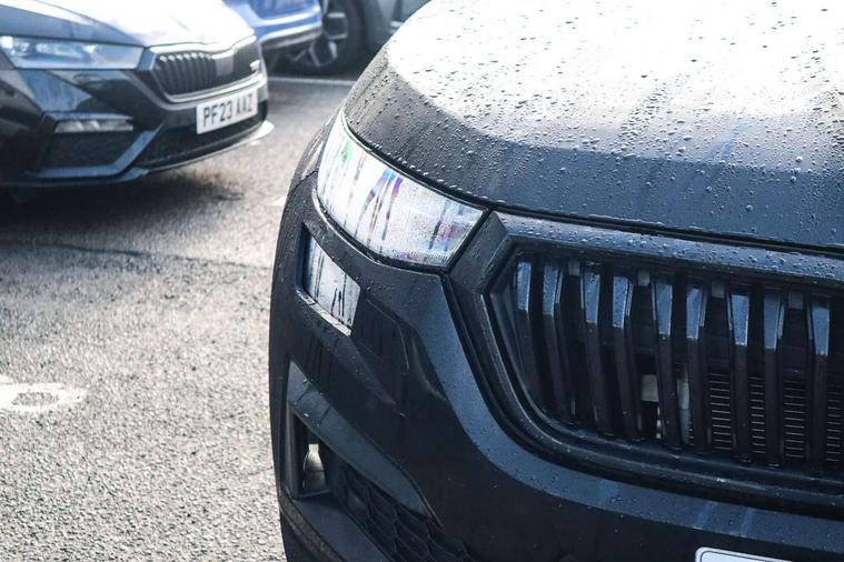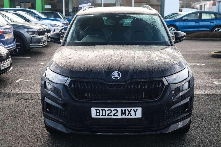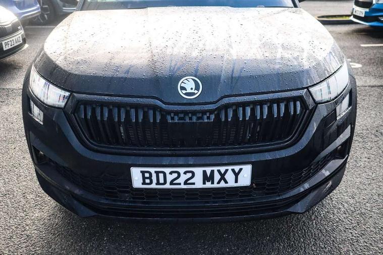 Bluetooth system, Columbus satellite navigation with 9.2" touchscreen, integrated Wi-Fi, web radio, Digital voice enhancement, E-call, ECO Stop/start function, Exterior temperature indicator, Progressive steering, Rear view camera, Smartlink wireless for apple carplay and wired for android auto, Speed limiter, Tailgate unlocking from outside, USB C Port x 2 in front centre console, Wireless charging, 8 Speakers, DAB Digital radio, Aero front windscreen wipers with intermittent function, Aero rear window wiper, Auto dimming rear view mirror, Black roof rails, Black sports styling including front grille and window surrounds, Black wheel arch surrounds, Body colour bumpers, Body colour door handles, Electric adjustable/heated/folding door mirrors, driver side auto dimming with boarding sports and memory function, Electric front and rear windows, Extended rear spoiler with finlets in gloss black, Front fog lights, Full LED matrix headlights with AFS (adaptive front light system), cornering function and AWL (all weather lighting system), Gloss black door mirrors, Headlight washers, Heated rear window, Invisible tailpipe, LED daytime running lights, LED rear fog light, LED third brake light in rear spoiler, Light assistant (coming/leaving home/tunnel light), Off-road style lower front bumper element, Privacy glass, Rain and light sensors, Rear diffuser, Rear LED lights (high functionality) with welcome effect and dynamic indicators, Rear side wing doors, Safety reflectors on front and rear doors, Sportline badge on front fender, Sports front and rear bumpers including lower rear chrome strip, Tailgate lettering in Black, Window control switches with black trim, Without engine designation, 12V socket in boot, 2 rails with 2 hooks, 2 seat bench in 3rd row, 3 seat bench in 2nd row, 4 foldable roof handles with rear coat hooks, 60:40 foldable rear seat with sliding adjustment and backrest angle adjustment, Aluminium pedals, Black roof headlining, Bottle holders in door panel in the 1.5 litre front and 1 litre rear, Cargo storage compartments, Chrome headlight control button, Chrome interior door handles, Coat hooks on B pillar, Covered storage compartment on driver side, Front centre armrest with storage compartment, cup holder and 12V socket, Front courtesy lights, Gear shift lever with chrome frame and black gloss insert, Grey stitching in front and rear armrests and door armrests + door inserts, Height adjustable front headrests, Illuminated and cooled glovebox, Illuminated luggage compartment, Isofix child seat fittings in outer rear seats with top tether, Manually adjustable steering column, Microsuede door panels, Net programme in boot (1x horizontal Net, 2x vertical Nets), Overhead glasses storage compartment, Pollen filter, Rear centre armrest with cupholders, Single front passenger seat, Sliding trunk cover, Small Bags on the inner sides of the front backrests, Sports seats, Sunvisors with illuminated vanity mirrors, Three rear height adjustable headrests, Ticket holder on A Pillar, Umbrella in door panel, Variable boot floor, LED Interior light pack - Kodiaq, Auto door release and activation of warning lights in the event of an accident, Child locks on rear doors, Driver and front passenger airbag with knee airbag and front passenger airbag deactivation, Electronic parking brake with hill start assist, Emergency rear braking signal, ESC (incl. ABS+MSR+ASR+EDS+HBA+DSR+RBS+MKB), Front assist with autonomous emergency braking, Front side airbags with curtain airbags, Fuel cut off safety device, Height adjustable front 3 point seatbelts + pretensioners, Hill hold control, Rear disc brakes, Safety vest holder in door, Seat belt reminder for all seats, Three point rear seat belts, Two tone horn, Tyre pressure monitor, Alarm with interior monitoring and tilt sensor with safe function, Anti-theft wheel bolts, Immobiliser, Keyless entry and start system (KESSY), Remote central locking with 2 keys, Black air vent surround, Carbon finish dashboard and door inserts, Grey stitching in dashboard, 20" Vega Anthracite alloy wheels, Temporary spare wheel (space saver),
