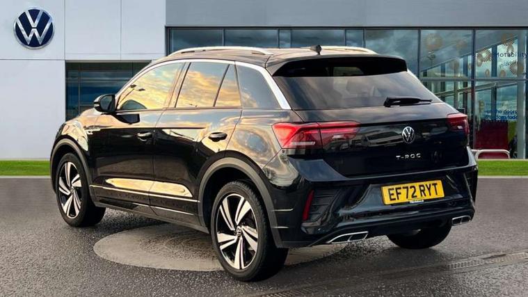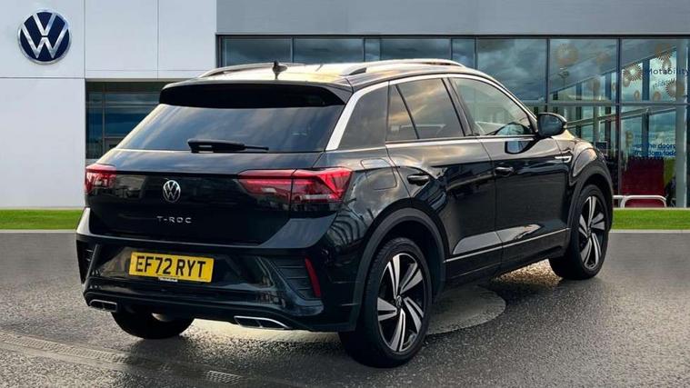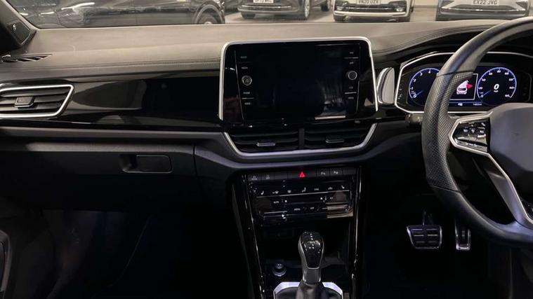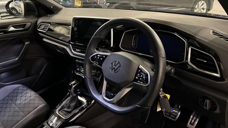 10.25" Digital cockpit pro, Bluetooth mobile phone interface, Driver alert system with fatigue detection, Driver tips and journey analysis, Emergency call service, Lane keeping system Lane Assist, Modified key software - reduce switch off time for key status change to Long no motion, Online services, Park assist including front and rear parking sensors, Service interval indicator, Tailgate/trunk lid release from outside, Think blue trainer driver tips and journey analysis, Warning sound and light for front seatbelts unfastened, Wireless app connect, Battery regeneration during braking, Start/stop function with battery regeneration, Diversity antenna for FM reception, Front and rear 6 speakers, Music playback - MP3, WMA and AAC files, Premium USB cable in choice of either Apple or Android smartphone compatibility, SD card slot, Simultaneous pairing of 2 compatible mobile devices, Title and cover art display, We Connect and We Connect Plus functionality, 3rd brake light, Auto dimming interior rear view mirror, Automatic hazard lights activation under emergency braking, Automatic headlight control with LED separate daytime running lights with coming/leaving home function, Extended roof spoiler, Exterior mirrors aspherical on driver side, convex on front passenger side, External USB type C socket and charging sockets, Front windscreen wiper with intermittent wipe and 4 position delay, Heated rear window, LED Plus headlamps, LED rear combination lamps, LED rear number plate lights, LED tail lamp rear comination lamps, Power windows with comfort operation and circuit breaker, R-Line design body coloured bumpers, Rain sensor, Rear exhaust tailpipe, Rear fog light on one side and reversing lights on both sides, Rear side wing doors, Rear wash/wipe with intermittent wipe setting, Remote electrically foldable door mirrors, puddle lights and reverse activated passenger's door mirror, 12V power socket in centre console, 3 rear head restraints, 3 seat bench in 2nd row, 4 load lashing points in luggage compartment, Air care climatronic air conditoning system with active combination filter and 2-zone temperature control, Black roof lining, Chrome plated radiator grille inserts, air vent surrounds and light switch surrounds, Door and side trim panel with leatherette insert, Drawer under drivers seat, Front + rear carpet mats, Front centre armrest, Front cupholders x 2, Front footwell illumination, Front reading light, Front scuff plates with R logo, Instrument lighting, white adjustable panel illumination, Interior ambient lighting and surround lighting, Interior light delay, Isofix child seat preparation, Leather gearshift handle, Load-through provision with cup holder when folded down ('Unsplit rear seat bench, split folding backrest, with centre armrest), Luggage compartment lighting, Single front passenger seat, Stainless steel pedals, Storage compartment in left and right luggage area, Storage compartment in rear doors, Storage compartments in driver and front passenger doors, Sunvisors with illuminated vanity mirrors, Variable boot floor, height adjustable and removable, Driver assistance pack without proactive passenger protection - T-Roc, 3 point height adj front seatbelts + pretensioners, 3 point seatbelts in outer rear with ECE label, ABS, Child locks on rear doors, Driver and front passenger airbag with front passenger airbag deactivation, Driver and front passenger safety-optimised head restraints, Drivers seatbelt reminder, Electronic parking brake, Electronic Stability Control (ESC) inc EDL (Electronic Differential Lock) and ASR (Traction Control), Front and rear passengers curtain airbag system including front side airbags, Front assist with city emergency braking and pedestrian monitoring, Front seat side impact airbags, Hill start assist, Predictive pedestrian protection, Rear disc brakes, Single tone horn, Tyre pressure loss indicator, Volkswagen roadside assistance, Alarm with interior protection, Anti-theft alarm system with interior monitoring, backup horn, and towing protection, Remote central locking with SAFELOCK, radio remote control with 2 remote control folding keys, Trims for alloy wheels,