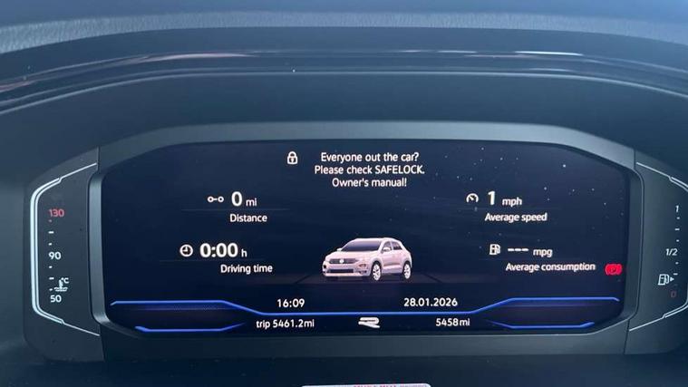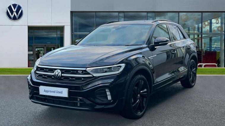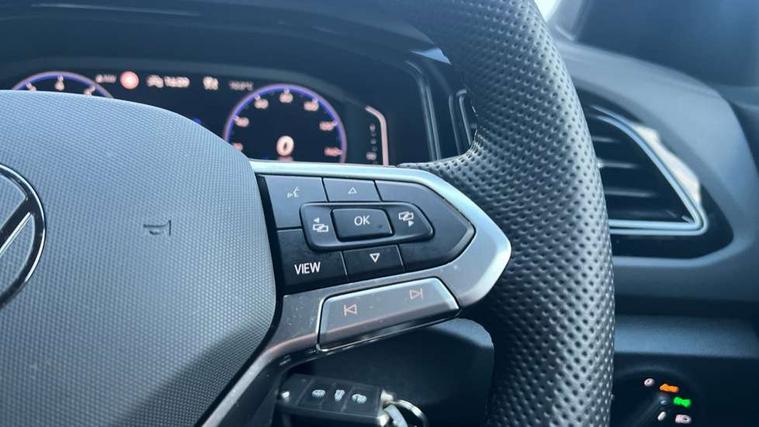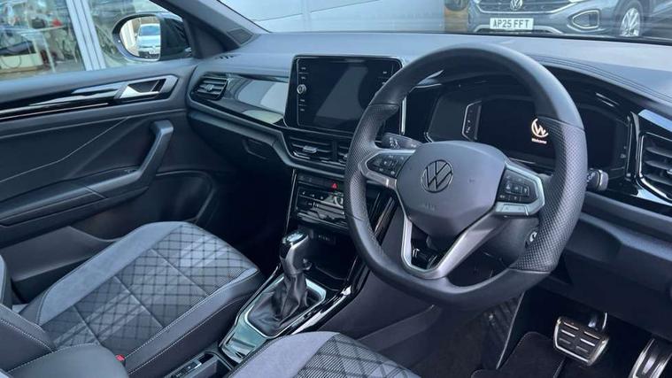 10.25" Digital cockpit pro, Advanced driver attention and drowsiness monitor, Emergency call service, Lane keeping system Lane Assist, Mobile phone interface, Modified key software - reduce switch off time for key status change to Long no motion, Online services, Park assist including front and rear parking sensors, Power assisted speed sensitive steering, Service interval indicator, Tailgate/trunk lid release from outside, Think blue trainer driver tips and journey analysis, Warning sound and light for front seatbelts unfastened, Wireless app connect, Battery regeneration during braking, Rear shock absorption chassis with increased ride height, Start/stop function with battery regeneration, DAB Digital radio, Diversity antenna for FM reception, Front and rear 6 speakers, Music playback - MP3, WMA and AAC files, Premium USB cable in choice of either Apple or Android smartphone compatibility, SD card slot, Simultaneous pairing of 2 compatible mobile devices, Title and cover art display, We Connect and We Connect Plus functionality, Auto dimming interior rear view mirror, Automatic hazard lights activation under emergency braking, Automatic headlight control with LED separate daytime running lights with coming/leaving home function, Dynamic cornering light, Electrically adjustable and heated door mirrors, Extended roof spoiler, Exterior mirrors aspherical on driver side, convex on front passenger side, External USB type C socket and charging sockets, Front windscreen wiper with intermittent wipe and 4 position delay, Heated rear window, Illuminated front grille, IQ LED matrix headlights, LED 3rd brake light, LED rear number plate lights, LED rear tail lights with dynamic turn signal, Light mode for poor weather, rain, fog or snow, Power windows with comfort operation and circuit breaker, R-Line design body coloured bumpers, Rain sensor, Rear exhaust tailpipe, Rear fog light on one side and reversing lights on both sides, Rear side wing doors, Rear wash/wipe with intermittent wipe setting, Remote electrically foldable door mirrors, puddle lights and reverse activated passenger's door mirror, 12V power socket in centre console, 3 rear head restraints, 3 seat bench in 2nd row, 4 load lashing points in luggage compartment, Air care climatronic air conditoning system with active combination filter and 2-zone temperature control, Artvelours cloth upholstery, Black roof lining, Chrome plated radiator grille inserts, air vent surrounds and light switch surrounds, Door and side trim panel with leatherette insert, Drawer under drivers seat, Driver seat height adjust, Driver's seat lumbar support, Front + rear carpet mats, Front centre armrest, Front comfort sports seats, Front cupholders x 2, Front footwell illumination, Front reading light, Front scuff plates with R Line logo, Front seat back storage pockets, Glove compartment door with light, Instrument lighting, white adjustable panel illumination, Interior ambient lighting and surround lighting, Interior light delay, Isofix child seat preparation, Leather gearshift handle, Leather wrapped multifunction steering wheel with paddle shift, Load-through provision with cup holder when folded down ('Unsplit rear seat bench, split folding backrest, with centre armrest), Luggage compartment lighting, Non-folding front passenger seat backrest, Passenger seat height adjuster, Passenger seat lumbar support, Single front passenger seat, Stainless steel pedals, Storage compartment in left and right luggage area, Storage compartment in rear doors, Storage compartments in driver and front passenger doors, Sunvisors with illuminated vanity mirrors, Variable boot floor, height adjustable and removable, Winter pack without heated windscreen washer jets - T-Roc, 3 point height adj front seatbelts + pretensioners, 3 point seatbelts in outer rear with ECE label, ABS, Child locks on rear doors, City emergency braking and pedestrian monitoring, Driver and front passenger airbag with front passenger airbag deactivation, Driver and front passenger safety-optimised head restraints, Drivers seatbelt reminder, Electronic parking brake, Electronic Stability Control (ESC) inc EDL (Electronic Differential Lock) and ASR (Traction Control), Front and rear passengers curtain airbag system including front side airbags, Front disc brakes, Hill start assist, Predictive pedestrian protection, Rear disc brakes, Two tone horn, Tyre pressure loss indicator, Volkswagen roadside assistance, Tool kit, Trims for alloy wheels, Tyre mobility kit including compressor and sealing foam,
