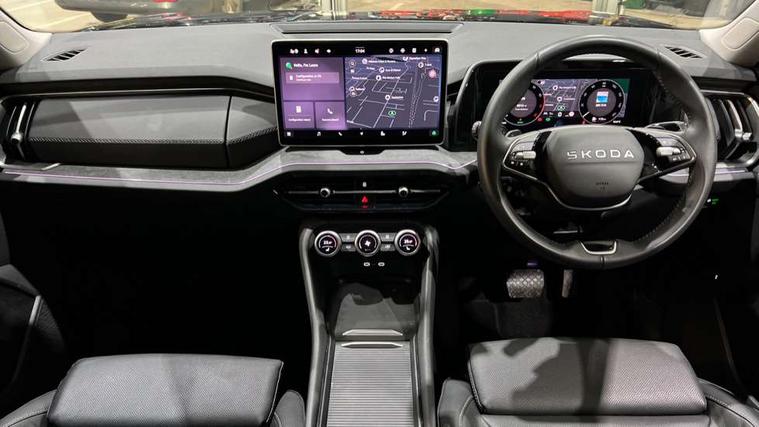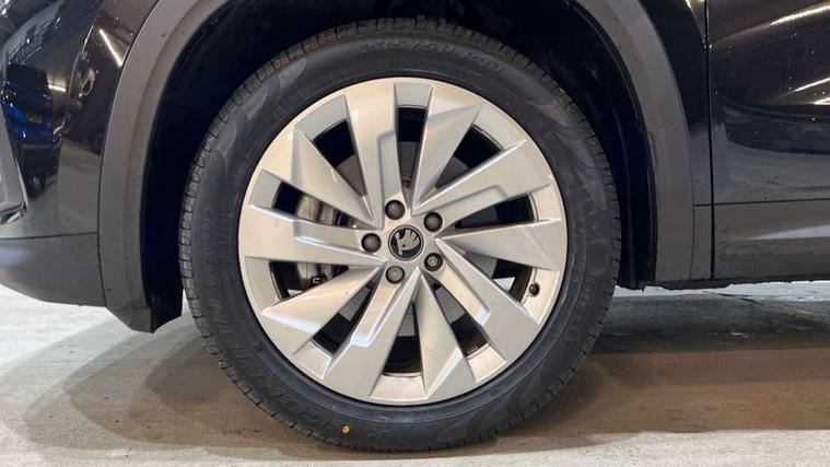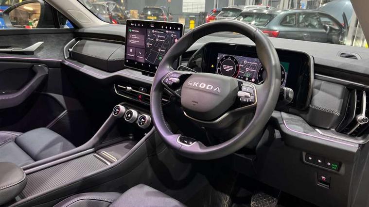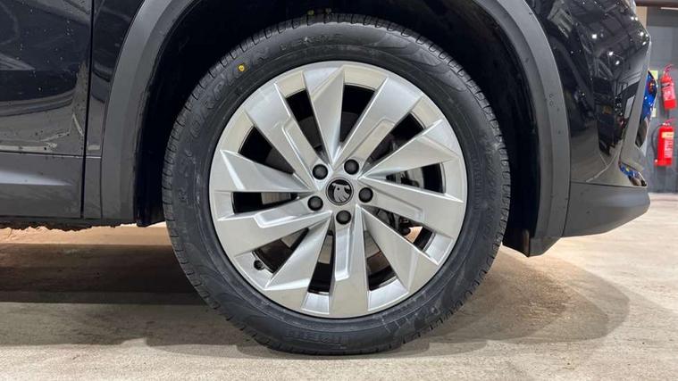 13" satellite navigation touchscreen display, Blind spot detection with door exit warning, Bluetooth system, ChatGPT functionality, Driver alert - Fatigue and drowsiness monitor, Dry display cleaner, Emergency call, Front and rear parking sensors, Front cross traffic assist, Lane assist, PAS, Rear traffic assist, Tailgate unlocking from outside, Traffic sign recognition, USB C Port x 2 in front centre console, Virtual Cockpit - 10.25" digital display, Voice control system, Wireless charging for two smartphones (15W) with cooling function, Wireless SmartLink for Apple CarPlay and Android Auto, Stop/start function, 2x USB-C in the rear, DAB Digital radio, Aero front windscreen wipers with intermittent function, Auto dimming rear view mirror, AWL (all weather lighting) and all weather light with cornering function, Black wheel arch surrounds, Body colour bumpers, Body colour door mirrors and handles, Cornering light and poor weather light, Electric folding /adjustable/separted heated/folding door mirrors, auto dimming with boarding sports and memory function, Electric front and rear windows, Exterior black decorative trims, Heat insulating glass in windshield, Heated rear window, Ice scraper in fuel tank cap, Invisible tailpipe, LED daytime running lights, LED third brake light in rear spoiler, Light assistant with automatic headlight control and coming home feature, Logo projection in door mirrors, Privacy glass, Rear roof spoiler, Rear side wing doors, Rear window wiper, Red decorative strip between rear LED lights, Safety reflectors on front and rear doors, Unique dark chrome design logo on alloy wheels, Window control switches with black trim, Windscreen wipers with rain sensor, Without engine designation, 1.5l bottle holder points in all door, 1x centre rear reading light, 2 seat bench in 3rd row, 3 configurable smart dials with 32mm coloured display, 3 seat bench in 2nd row, 4 foldable roof handles with rear coat hooks, Ambient interior lighting - Dashboard, front-door stowage compartments, front and rear door panels and footwell lighting, Automatic gear selector on steering column, Chrome interior door handles, Driver/front passenger reading lights, Fabric headlining, Fixed bench 40:60:40 split folding backrests, Front and rear floor mats, Front centre armrest with jumbo box storage compartment, cup holder and 12V socket, Height adjustable front headrests, Isofix child seat fittings in outer middle row rear seats and front passenger with top tether, Manually adjustable steering column, Pollen filter, Rear centre armrest with cupholders, Rear seat boot backrest release, Single front passenger seat, Skoda lettering on steering wheel, Storage pocket including mobile phone pockets on the backs of the front seats, Sunvisors with illuminated vanity mirrors, Three rear height adjustable headrests, Ticket holder on A Pillar, Tri zone climate control, Umbrella in door panel x1 made from sustainable materials, Upper and lower glovebox with card holder and coin compartment, USB C port by rear view mirror for charging only (15W), Exterior styling pack - Kodiaq, Auto door release and activation of warning lights in the event of an accident, Driver and front passenger airbag with knee airbag and front passenger airbag deactivation, Electric child locks, Electronic parking brake, ESC (incl. ABS+EMD+MSR+ASR+EDL+HBA+DSR+RBS+ESBS+MCB+TSA+XDS), Front assist with braking reaction to vehicles, pedestrians and cyclists, Front disc brakes, Fuel cut off safety device, Height adjustable front 3 point seatbelts + pretensioners, Hill hold assist, Junction assist with automatic emergency braking, Rear disc brakes, Safety vest holder in door, Seat belt reminder for all seats, Three point rear seat belts, Two tone horn, Tyre pressure monitor, Anti-theft wheel bolts, Immobiliser, Remote central locking with 2 keys,