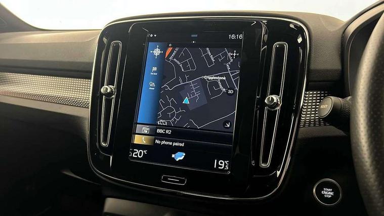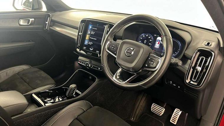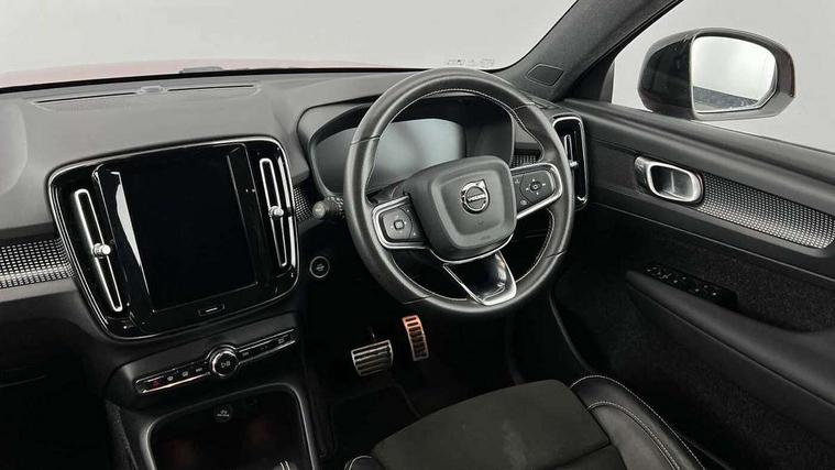 12.3" Active TFT crystal driver's instrument display, 9" centre console portrait touch screen, Adjustable steering wheel force, Bluetooth hands free telephone kit, Drive mode selector, Lane keep assist with driver alert control, Oncoming Lane Mitigation, Power operated tailgate, Sensus navigation with European mapping and traffic information, Speed limiter, Speed sensitive steering, Voice activated control for key functions, Volvo on call, 7m 10amp charge cable with 3 pin plug and 7m 1 phase 16amp type 2/mode 3 charge cable, Electric front axle drive, Recharging port located in nearside front wing, Sports chassis, DAB Digital radio, Low speed exterior sound speaker, Steering wheel mounted remote controls, Adaptive brake lights with high level LED brake lights, Auto dimming interior mirror, Automatic headlamp levelling, Black stone door mirrors, Black stone roof, Colour coordinated auto folding and heated power door mirrors, Dark tinted windows for rear door side windows and cargo compartment, Dual integrated exhaust pipes with high gloss black surround, Front aluminium tread plates, Front and rear electric windows, High gloss black front and rear skid plate, High gloss black lower front bumper, High gloss black mesh front grille with high gloss black surround, High gloss black roof rails, High gloss black sensus surround deco, High gloss black window trim, Home safe and approach lighting, LED Headlights + Active high beam incorporating daytime running lights, Rain sensor with automatic windscreen wiper activation, Rear side wing doors, Rear wiper, Roof antenna, Roof spoiler, Visible VIN plate, 12V socket in front tunnel console and luggage compartment, 2 zone electronic climate control and rear air vent, 3 seat bench in 2nd row, 60/40 versatile split folding rear seat, A-pillar parking ticket holder, Centre console cupholders and storage, Charcoal headlining, Driver's side lower dashboard credit card storage compartment, Front footwell illumination, Front headrests, Front reading light and theatre lighting, Front seat cushion extensions, Glovebox bag hook, Height/reach adjustable steering column, High gloss centre tunnel deco, Illuminated glovebox, Illuminated luggage compartment, Illuminated vanity mirrors, Isofix attachments on outer rear seats, Key integrated remote, Leather gearknob, Load protection net, Multi directional lumbar support, Rear armrest / integral cup holders / storage tray, Rear coat hook, Single front passenger seat, Sports floor mats, Sports pedals, Sports tailored steering wheel, Underfloor cargo storage, 3x3 point rear seatbelts, City safety includes pedestrian, cyclist and large animal detection and front collision warning with full auto brake, Drivers knee airbag, Dual stage driver/passenger airbags, Electronic parking brake with auto hold, First aid kit, Front and outer rear seatbelt reminder and pretensioners, Front seats SIPS airbags, Hill descent control, Hill start assist, Inflatable curtain, Passenger airbag cut-off device, Road sign information display, Run off Road Mitigation, Run off Road Protection, SIPS (Side Impact Protection System), Slippery road and hazard light alert, Stability and Traction Control with Spin control, Engine Drag Control and Corner Traction Control, Tyre pressure monitoring system, Vehicle deceleration control with Anti-lock Brake System, Electronic Brake Distribution and Emergency Brake Assist, Warning triangle, WHIPS whiplash protection system - front, Anti-theft alarm including immobiliser/volume sensor + level sensor, Care key with user defined top speed, Key integrated remote control central locking + fuel flap with deadlocking system and auto open/close power windows, Locking wheel nuts, Private locking for tailgate, Cutting edge aluminium inlay, Lower dashboard, tunnel console and door panel in charcoal,