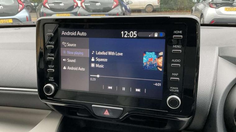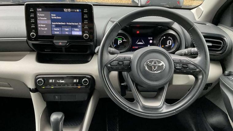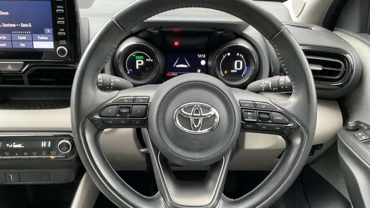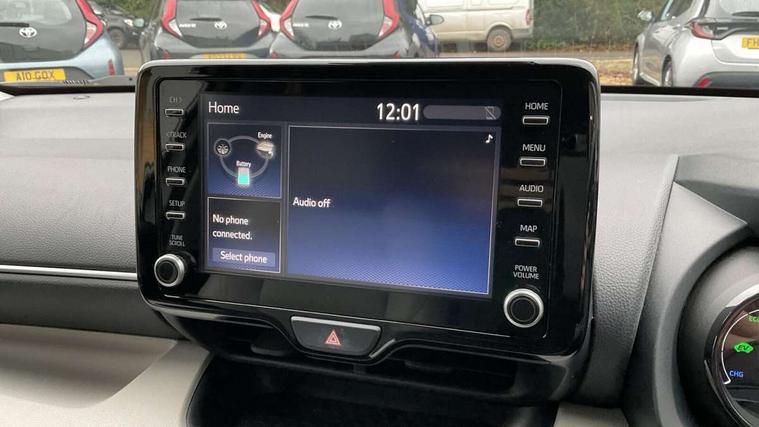 Satin chrome interior styling, Soft touch instrument panel, Space saver spare wheel, Alarm/immobiliser, Keyless smart entry with push button start, Remote powered central double locking doors, 6 speakers, 8" Multimedia display touch screen, USB connection, 3 point seatbelts on all rear seats, ABS+EBD+Brake assist, Active headrests, Electronic parking brake, Emergency brake light system (EBS), Front passenger airbag on/off switch, Front seatbelt reminder, Hill start assist control (HAC), Rear child proof door locks, Rear seat belt reminder, Supplemental Restraint System (SRS) 8 airbags: Driver & passenger's airbags, dual side curtain airbags, side impact airbags, front centre airbag, Toyota Safety Sense 2, Precollison + Night time Pedestrian & Cyclist Detection, Lane Trace Assist, Auto High Beam, Intelligent ACC & Road Sign Assist, Tyre pressure warning system, Acoustic windscreen glass, Auto windscreen wipers, Automatic headlights, Automatically retractable door mirrors, Body coloured door mirrors, Electric adjustable heated door mirrors, Follow me home headlights, Front auto power windows with anti jam protection, Full LED rear lights, LED daytime running lights, LED front fog lights, LED Headlights, LED High mounted stop lamp, Painted front grille, Rear auto power windows with anti jam protection, Rear privacy glass, Rear spoiler, Satin lower front grille, Shark fin antenna, Turning signal integrated indicators in door mirrors, 3 adjustable rear headrests, 3 spoke leather steering wheel, 60/40 split folding rear seat, Adjustbale boot height, Coat hooks in rear grab handles, Cup holders (2 front & door), Data Communication Module (DCM) connected services, Dual zone automatic air conditioning, Fabric seat with partial synthetic leather upholstery, Front armrest, Front sport seats, Glovebox, Height adjustable driver's seat, Height adjustable passenger seat, Isofix seat fixing, Leather gearshift, Map pockets on the backs of the front seats, Pollen filter, Shopping bag hooks, Tilt/telescopic steering column, Adaptive cruise control, Adjustable speed limit with speed warning, Blind spot monitoring, Bluetooth connectivity, Colour binocular inspired displays with digital speedometer, E-call, Electric power steering, Front and rear parking sensors with intelligent clearance sonar with automatic braking, Hybrid energy display, Multi information display switches on steering wheel, Reversing camera, Smartphone integration with Apple CarPlay and Android auto, Toyota Touch 2 with DAB, Vehicle Stability Control (VSC),