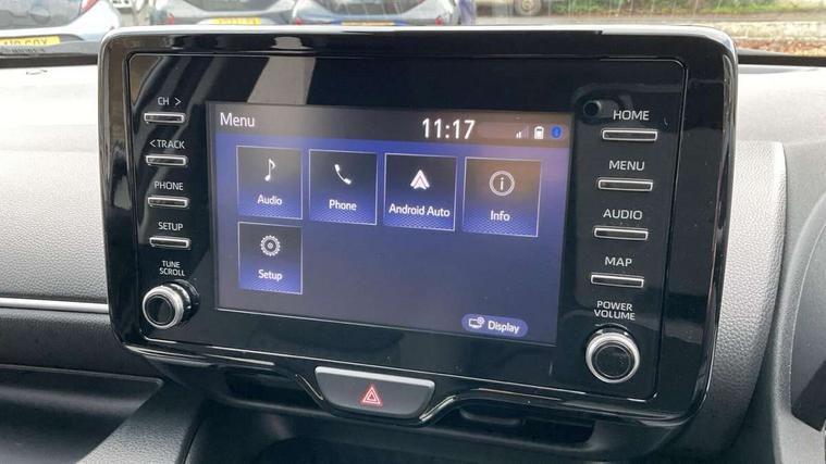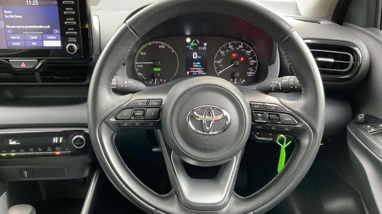 4.2" coloured TFT multi information display with analogue speedometer, Adaptive cruise control, Adjustable speed limit with speed warning, Bluetooth connectivity, E-call, Electric power steering, Hybrid energy display, Multi information display switches on steering wheel, Reversing camera, Smartphone integration with Apple CarPlay and Android auto, Tailgate, Voice recognition, Vehicle Stability Control (VSC), 4 speakers, 7" Multimedia display touch screen, Toyota Touch 2 with DAB, USB connection, Acoustic windscreen glass, Auto windscreen wipers, Automatic headlights, Body coloured door mirrors, Bulb indicators, Chequered front grille, Daytime running lights, Electric adjustable heated door mirrors, Follow me home headlights, Front auto power windows with anti jam protection, Halogen projector headlights, LED High mounted stop lamp, Manual headlight levelling, Rain sensor, Rear side wing doors, Rear spoiler, Rear wiper, Shark fin antenna, Turning signal integrated indicators in door mirrors, Variable front intermittent wipers, 3 adjustable rear headrests, 3 seat bench in 2nd row, 3 spoke leather steering wheel, 60/40 split folding rear seat, Active headrests, Adjustable boot height, Auto air conditioning, Coat hooks in rear grab handles, Cup holders (2 front & door), Data Communication Module (DCM) connected services, Fabric upholstery, Front armrest, Glovebox, Grey roof lining, Height adjustable driver's seat, Isofix seat fixing, Leather gearshift, Pollen filter, Shopping bag hooks, Single front passenger seat, Tilt/telescopic steering column, 3 point seatbelts on all rear seats, ABS+EBD+Brake assist, Electronic parking brake, Emergency brake light system (EBS), Front passenger airbag on/off switch, Front seatbelt reminder, Hill start assist control (HAC), Rear child proof door locks, Rear seat belt reminder, Supplemental Restraint System (SRS) 8 airbags: Driver & passenger's airbags, dual side curtain airbags, side impact airbags, front centre airbag, Toyota Safety Sense 2, Precollison + Night time Pedestrian & Cyclist Detection, Lane Trace Assist, Auto High Beam, Intelligent ACC & Road Sign Assist, Tyre pressure warning system, 2x Master key, Alarm/immobiliser, Remote powered central double locking doors, Soft touch instrument panel, Space saver spare wheel,