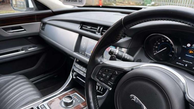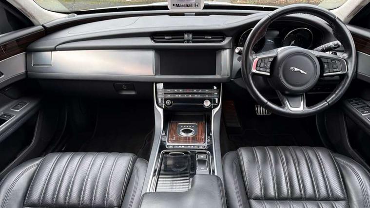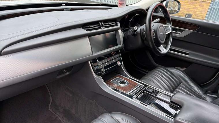 Analogue dials with 7" central TFT display, Android Auto, Apple car play, Bluetooth telephone connectivity, Electric power steering, Forward facing stereoscopic camera, InControl remote premium, Instrument cluster with 5 TFT display, Jaguar Voice front, Lane departure warning system, Outside temperature gauge, Pro services and wifi hotspot, Rear parking aid, Service interval indicator, Traffic sign recognition with adaptive speed limiter, Trip computer, 8 speed automatic transmission, Self levelling rear air suspension, Bluetooth audio streaming, DAB Radio (Digital Audio Broadcasting), InControl app, InControl protect, InControl Wi-fi, USB and auxiliary socket, Acoustic windscreen, Approach lamps, Auto dimming rear view mirror, Automatic headlights, Blue tinted glass, Body colour door mirrors, Boot mounted spoiler, Chrome side vents, Chrome tailgate/boot lid finisher, Chrome window side surrounds, Electric front/rear windows with one touch/auto up/down, Frameless auto dimming interior rear view mirror, Headlight power wash, Heat insulated glass, Heated front windscreen, Heated rear window, Illuminated metal tread plates with Jaguar script, LED tail lights, Metal load space scuff plates, Rain sensor windscreen wipers, Rear wash/wipe, Roof spoiler, Silver roof rails, Tailgate/boot lid spoiler, Trailer stability assist, 12V accessory sockets - front and rear, 2nd row air vents, 3 rear seat head restraints, 4 way electric lumbar support for driver and front passenger, 40:20:40 split folding rear seats, Auxilliary 12V power socket, Bright metal foot pedals, Chrome seat switches, Chrome trunk finish, Front armrest, Front centre console storage box, Isofix child seat preparation, Jaguar sense, JaguarDrive selector, Loadspace cover, Loadspace rails, Overhead console with sunglasses holder, Perforated Windsor leather upholstery, Premium carpet mats, Rear armrest with twin cupholders, Rear storage compartment, Soft grain sport leather steering wheel, Sunvisors with illuminated vanity mirrors, Tie down hooks in luggage area, Twin front cupholders, Windsor leather wrapped instrument panel, Smartphone pack - XF, ABS+EBA, Anti-whiplash front headrests, Autonomous emergency braking, Brake pad warning light, Driver/Front Passenger airbags, DSC - Dynamic Stability Control, Electronic parking brake, Emergency brake assist, Front and rear curtain airbags, Front/rear seatbelt pre-tensioners, Hill start assist, Pedestrian contact sensing, Power child locks, Seatbelt warning, Side airbags, Three 3 point rear seatbelts, Torque vectoring brake, Traction control, Tyre pressure monitoring system, Deadlocks, Drive away door locking, Immobiliser, Keyless entry system, Keyless start, Locking wheel nuts, Perimeter alarm, Remote central locking, Morse code aluminium instrument panel finisher,