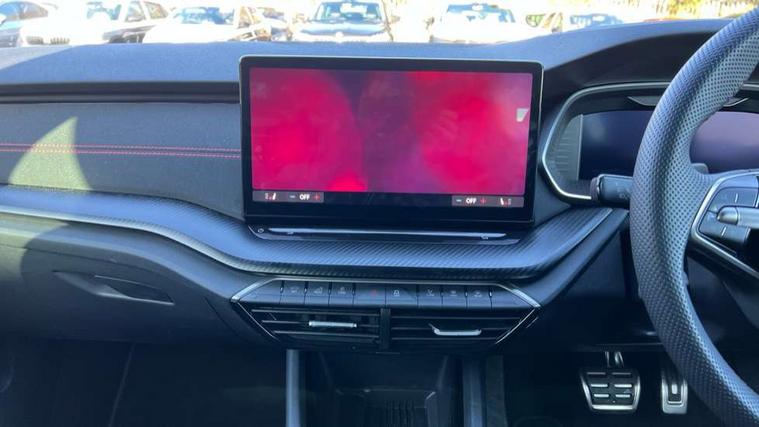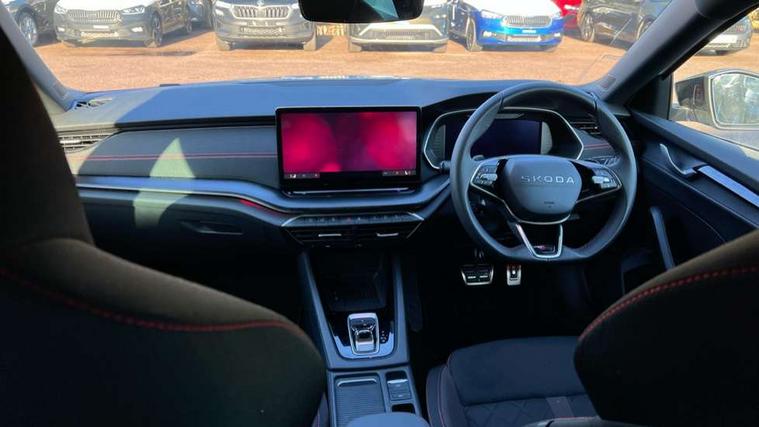 1x USB Typc C port in rear view mirror, 4x USB Type C ports - 2x in front centre console and 2x in rear (45W), Drive mode selection, Driver fatigue sensor, eCall emergency system, Electronic engine sound, Front assist system, Progressive dynamic steering, Traffic sign recognition, Turn Assist, Virtual Cockpit - 10.25" digital display, Voice control system, Wireless charging (15W) with cooling function, Wireless SmartLink for Apple CarPlay and Android Auto, Electronically controlled limited slip differential, vRS suspension, 13" touchscreen display with navigation, DAB Digital radio, Aero front windscreen wipers with intermittent function, Auto dimming rear view mirror, Black sport exhaust pipes, Body colour bumpers, Body colour door handles, Bumpers with rear red reflector strip, Electric front and rear windows, Exterior gloss black sports styling including front grille, window surrounds, door mirrors and badging, Gloss black diffuser, Gloss black roof rails, Gloss black spoiler, Heated rear windscreen, High beam control, High level third brake light, Ice scraper in fuel cap, LED daytime running lights, Logo projection in front doors, Rain and light sensors, Rear fog light on one side and reversing lights on both sides, Rear privacy glass, Rear side wing doors, Rear window wiper, Unique vRS bumpers and exterior styling, 12 volt socket in boot, 2x umbrella in door, 3 rear headrests, 3 seat bench in 2nd row, 4 foldable roof handles, Aluminium pedals, Front head restraints, Front sport seats, Heated front seats, Illuminated glovebox, Interior door handles in dark chrome, Jumbo Box storage, Luggage compartment lighting x2 lights, Mechanical rear seat release from boot, Single front passenger seat, Steering wheel in black leather with black stitching, Storage compartments in left and right of boot, Sun visors with mirrors, Sunglasses storage, Three spoke leather sports multifunction steering wheel with paddles, Ticket holder, Unsplit rear bench seat, split folding backrest with centre armrest with cupholder, Waste bin in door panel, Comfort package - Octavia Estate, Family package - Octavia, Light and view package plus - Octavia, vRS Design Selection pack - Octavia, 3x3 point rear seat belts, Alarm with interior monitoring, tilt sensor and back up horn, Curtain airbags and front side airbags, Driver and front passenger airbags, Drivers knee airbag, Electronic parking brake, ESC including ABS, EBV, MSR, ASR, EDS, HBA, DSR, Front central airbag, Hill hold assist, ISOFIX on front passenger seat and outer rear seats, Passenger airbag deactivate switch, Red brake calipers, Three point seat belts in front and rear, Two tone horn, Tyre pressure monitor, Visual and acoustic seat belt reminder, Warning reflectors in front door, Anti-theft wheel bolts, Keyless entry and start/stop, Remote central locking, Gloss black air vent surrounds, 19" Elias anthracite alloy wheels,