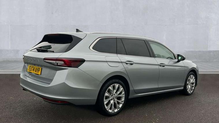 13" touchscreen display with satellite navigation, 4x USB-C ports (2x in front centre console and 2x in rear) (45W), Adaptive cruise control with speed assist, lane assist plus and traffic tram assist, Blind spot detection with door exit warning, Bluetooth system, CareConnect and Emergency Call, ChatGPT functionality, Drive mode selection, Driver fatigue sensor, Electrically operated boot with virtual pedal, Front assist with extended predictive pedestrian protection, Front cross traffic assist, PAS, Quick start all heating software functionality, Rear view camera with washer, Stop/start engine system, Traffic sign recognition, Turn assist with evasive assistance, Virtual Cockpit - 10.25" digital display, Voice control system, Wireless charging for one smartphone (15W) with cooling function, Wireless smartlink apple carplay, SmartLink+ android auto, DAB Digital radio, Display cleaner, FM radio connection, Web radio connection, Acoustic side windows and interior noise suppression, Backdrop lighting, Body colour door handles, Body coloured door mirrors, Chrome roof rails, Chrome window surround, Dynamic range control with poor weather light and integrated fog light, Electrically adjustable, heated, folding and driver side auto-dimming door mirrors with memory function, integrated indicators and logo projection, Frameless auto-dimming rear view mirror with USB-C, Front windscreen with heat-insulating glass, Ice scraper in fuel tank cap, LED 3rd brake light, Light assist with High beam control, Light assistant (coming/leaving home/tunnel light), Privacy glass, Rear fog lights (x2), Rear roof spoiler, Rear side wing doors, Rear windscreen wiper, Tow bar preparation, Unique dark chrome grille surround with dark chrome rib elements, Windscreen wipers with rain sensor, 12V socket 1x centre console 1x boot, 12V socket and 2x cargo elements in boot, 14-way electrically adjustable, memory, front seats with 4-way pneumatic lumbar support, and extendable thigh support with smart comfort entry aid, 2 spoke multifunction steering wheel with DSG paddles, 3 seat bench in 2nd row, 4x foldable bag hooks in boot, 60:40 Split folding rear seats, Advanced massage function for front seats, Bottle holders in the front doors 1.5 litre bottle and rear 1.5 litre bottle, Cup holder in front with easy open mat, Front and rear footwell illumination, Front armrest with storage box, Front sports comfort seats, Heated and ventilated front seats, Height adjustable front and rear head restraints, Height adjustable front passenger seat, Illuminated glovebox, Interior lights with control switches, Isofix child seat fittings in outer rear and front passenger seats, LED front and rear reading lights, Multi colour ambient lighting, Single front passenger seat, Storage pockets on back of front seats, Sun visors with illuminated vanity mirrors, Ticket holder on A Pillar, Tri zone climate control, Umbrella in driver's door, Light and view package - Superb, Transport package - Superb Estate, 3 rear seatbelts, 8 Airbags - Front driver and passenger, front side driver and passenger, centre, curtain front and rear, drivers knee, Crew protect assist, Driver and passenger seatbelts with warning light, Electronic parking brake, ESC including ABS, EBV, MSR, ASR, EDS, HBA, DSR, RBS, CBC, multi-collision brake (MKB) and Auto hold, Hill hold assist, Power operated child lock in rear doors, Alarm with interior monitoring tilt sensor and back up horn, Backrest remote release from trunk, Electronic engine immobiliser, Keyless start/stop, Remote central locking with SAFE system, Third key, Walk away locking, Decorative front door sills, Tyre repair kit,