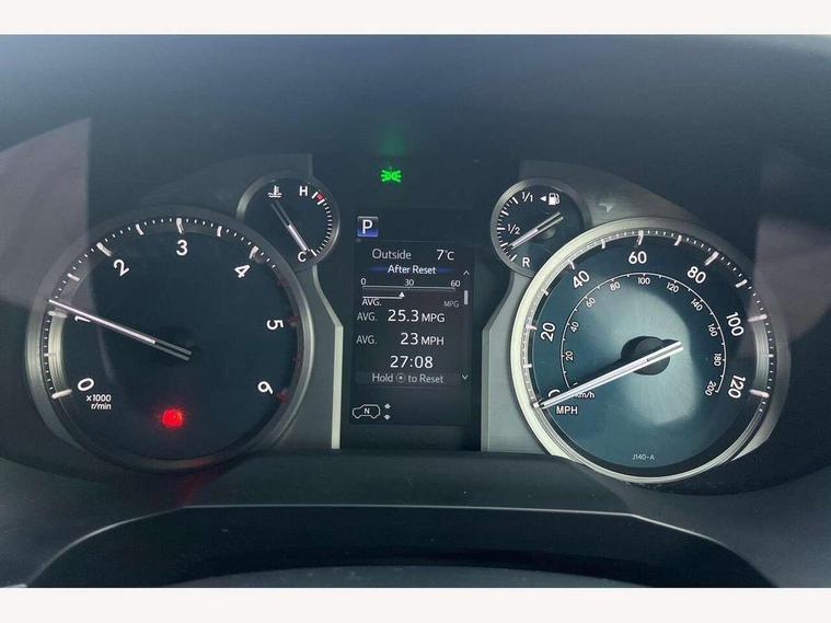 Adaptive cruise control, Blind spot monitor, Bluetooth telephone connectivity, Bluetooth with Wi-Fi, Crawl control, Digital speedometer, Front parking sensor, Lane change assistant, Multi function display, Multi view monitor system, Rear cross traffic alert, Rear parking sensor, Rear view camera, Surround camera system, Touch 2 Go navigation system, Trip computer, Voice control system, Electric adaptive and variable suspension, Multi terrain select, Rear differential lock, Toyota Electronic Modulated Suspension-KDSS, Vehicle Stability Control (VSC), 14 speakers, Auxiliary input socket, DAB Digital radio, JBL Premium Sound System, Steering wheel mounted audio/telephone controls, USB connection, Automatic headlamp levelling, Body colour door handles, Body colour heated door mirrors, Body colour lower mouldings, Body colour rear spoiler, Chrome effect bar on front grille, Dusk sensor, Electrically retractable door mirrors, Electrochromatic rear view mirror, Follow me home headlights, Front fog lights, Headlight washers, Illuminated side steps, LED daytime running lights, LED Headlights, LED rear lights, Puddle lights, Rain sensor, Rear privacy glass, Trailer stability assist, 12V socket in front and rear, 2nd row heated seats, 3 zone Air conditioning, 4 spoke wood / leather trimmed steering wheel, 50/50 split/folding 3rd row of seats, 60/40 split folding rear seat, Courtesy light delay, Cupholders in front and rear, Driver and passenger illuminated vanity mirror, Driver's electric lumbar adjustment, Driver's seat memory, Electric driver and passenger seats, Electric tilt/telescopic steering wheel, Gear shift indicator, Heated and ventilated seats, Heated front seats, Heated outer rear seats, Illuminated aluminium scuff plates, Illuminated entry system, Leather door trim, Leather gear knob, Leather heated seats, Reclining/sliding front seat, Refrigerated compartment in centre console, Silver interior door handles, Tonneau cover, Wood grain centre console trim, ABS+Electronic Brake force Distribution, Active Traction Control (TRC), Brake assist function, Driver and passenger SRS airbags, Drivers seatbelt reminder, Passenger airbag deactivate switch, Seatbelt pretensioners and force limiters, Toyota safety sense, Tyre pressure monitoring system, Drivers Smart entry + Smart start, Glass breakage instrusion sensing, Immobiliser, Intrusion sensor and alarm, Remote central door locking, Wood grain centre cluster, 19" Alloy wheels, Full size spare wheel,