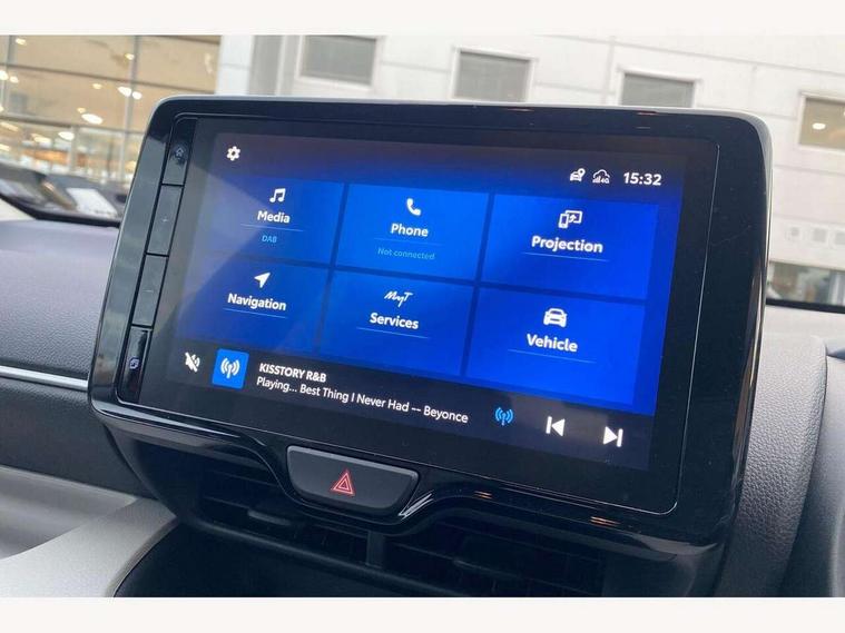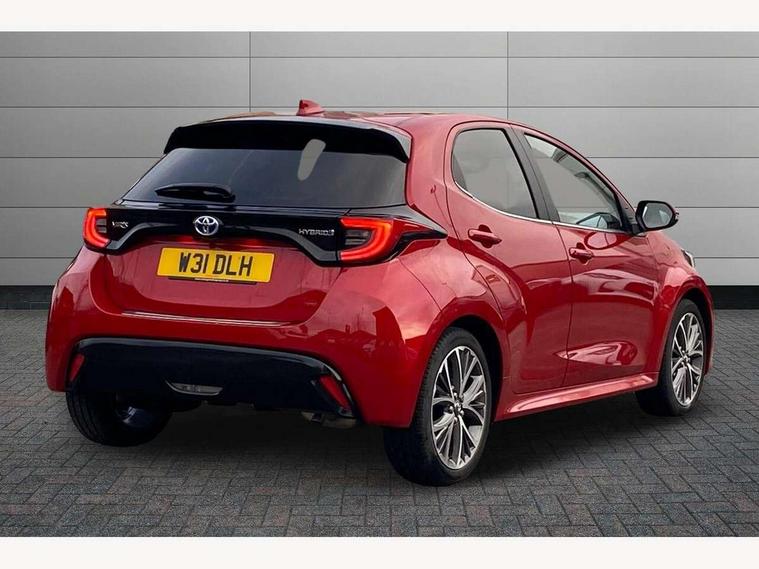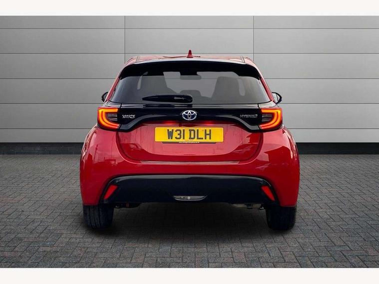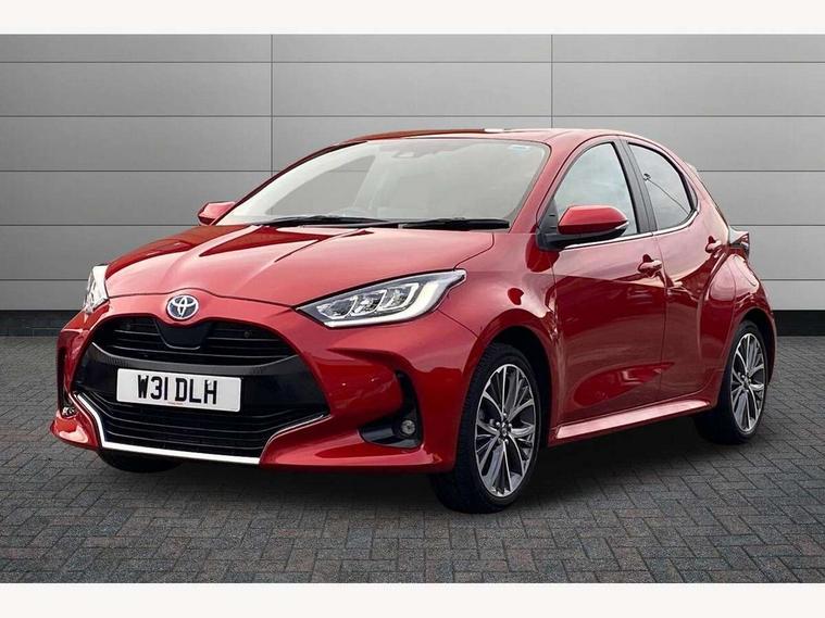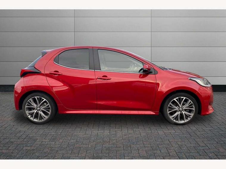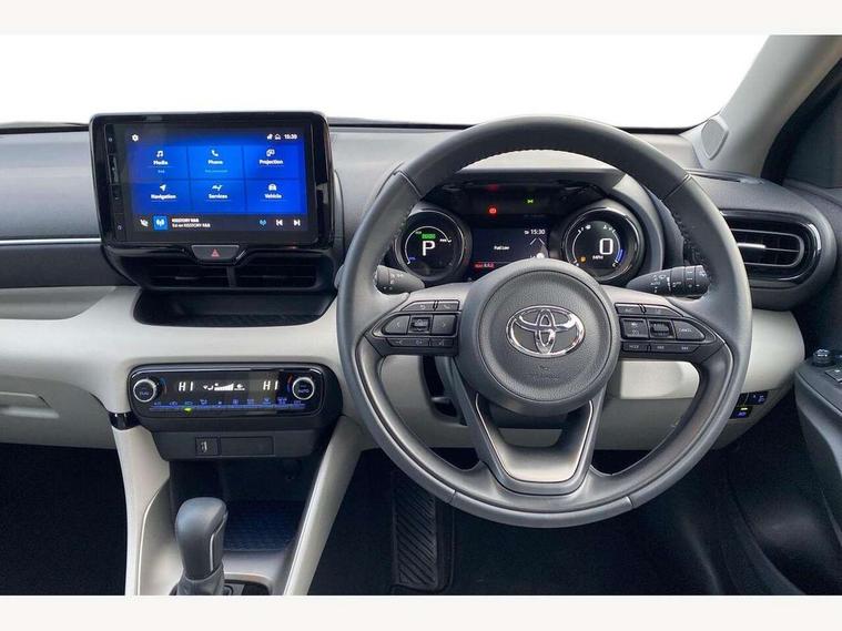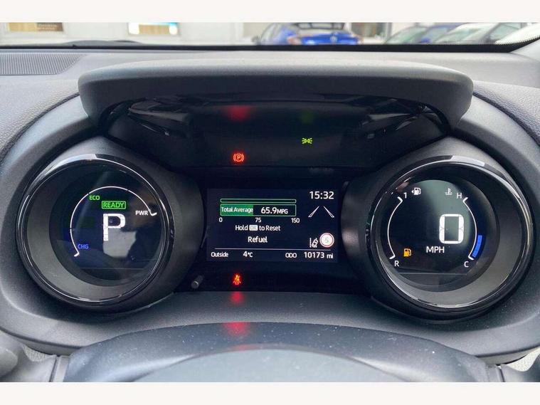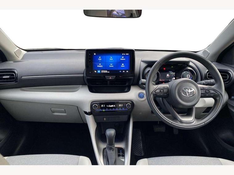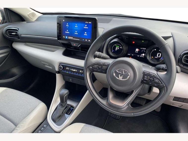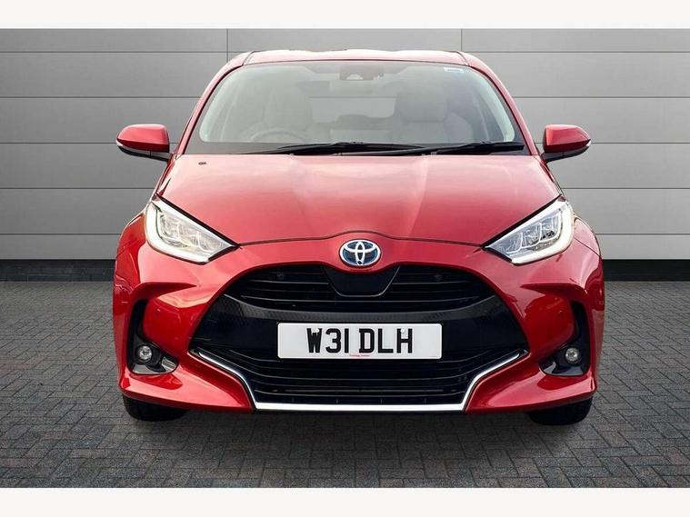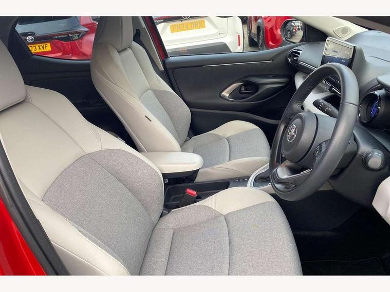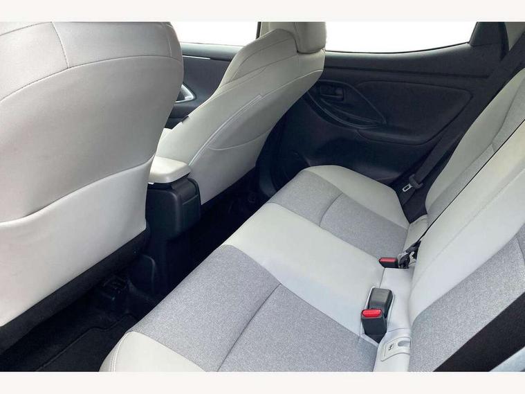 Adaptive cruise control, Adjustable speed limit with speed warning, Blind spot monitoring, Bluetooth connectivity, Colour binocular inspired displays with digital speedometer, E-call, Electric power steering, Hybrid energy display, Multi information display switches on steering wheel, Reversing camera, Smartphone integration with Apple CarPlay and Android auto, Tailgate, Touch 2 navigation system, Voice recognition, Vehicle Stability Control (VSC), 6 speakers, 9" HD multimedia display touch screen with Toyota smart connect, USB connection, Acoustic windscreen glass, Auto windscreen wipers, Automatic headlights, Automatically retractable door mirrors, Body coloured door mirrors, Electric adjustable heated door mirrors, Follow me home headlights, Front auto power windows with anti jam protection, Full LED rear lights, LED daytime running lights, LED front fog lights, LED front light guide, LED Headlights, LED High mounted stop lamp, LED Indicators, LED rear light guide, Manual headlight levelling, Painted chequered front grille, Panoramic sunroof with double roller blind, Rain sensor, Rear auto power windows with anti jam protection, Rear privacy glass, Rear side wing doors, Rear spoiler, Rear wiper, Satin lower front grille, Shark fin antenna, Turning signal integrated indicators in door mirrors, Variable front intermittent wipers, 3 adjustable rear headrests, 3 seat bench in 2nd row, 3 spoke leather steering wheel, 60/40 split folding rear seat, Active headrests, Adjustable boot height, Coat hooks in rear grab handles, Cup holders (2 front & door), Data Communication Module (DCM) connected services, Dual zone automatic air conditioning, Fabric seat with partial synthetic leather upholstery, Front armrest, Front sport seats, Glovebox, Grey roof lining, Height adjustable driver's seat, Height adjustable passenger seat, Isofix seat fixing, Leather gearshift, Map pockets on the backs of the front seats, Pollen filter, Shopping bag hooks, Single front passenger seat, Tilt/telescopic steering column, Parking pack - Yaris, 3 point seatbelts on all rear seats, ABS+EBD+Brake assist, Electronic parking brake, Emergency brake light system (EBS), Front passenger airbag on/off switch, Front seatbelt reminder, Hill start assist control (HAC), Rear child proof door locks, Rear seat belt reminder, Supplemental Restraint System (SRS) 8 airbags: Driver & passenger's airbags, dual side curtain airbags, side impact airbags, front centre airbag, Toyota Safety Sense 2, Precollison + Night time Pedestrian & Cyclist Detection, Lane Trace Assist, Auto High Beam, Intelligent ACC & Road Sign Assist, Tyre pressure warning system, 2x Master key, Alarm/immobiliser, Keyless smart entry with push button start, Remote AC via MyT, Remote locking via MyT, Remote powered central double locking doors, Satin chrome interior styling, Soft touch instrument panel, Tyre repair kit,