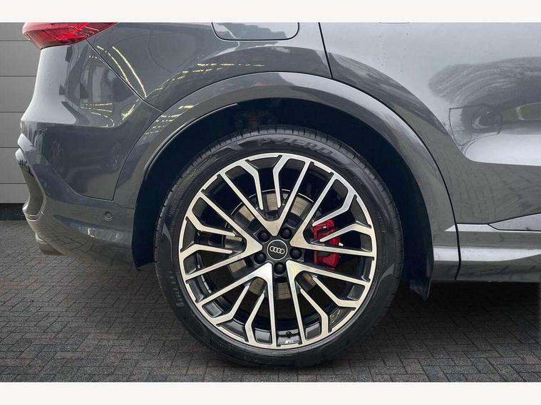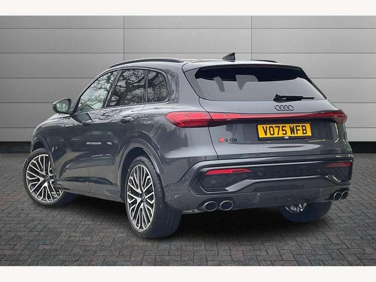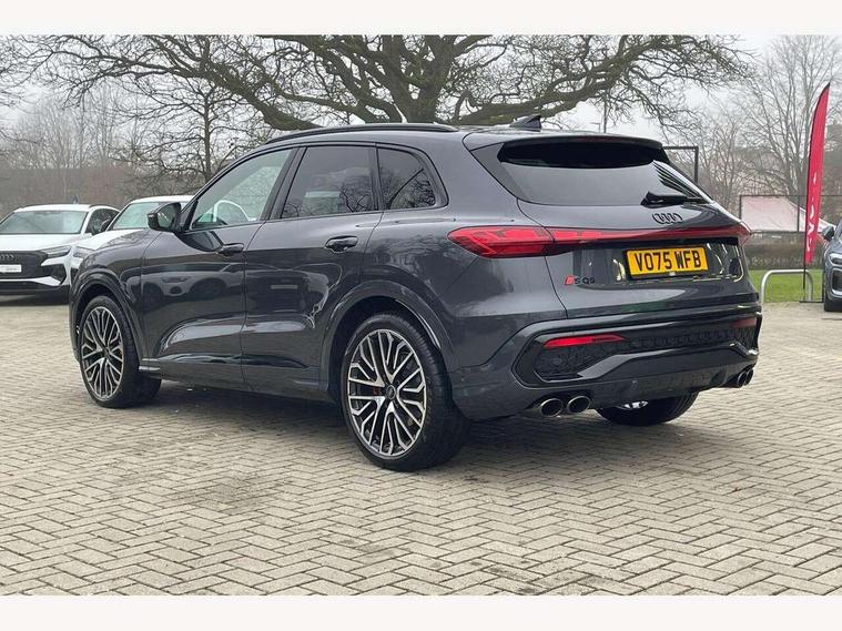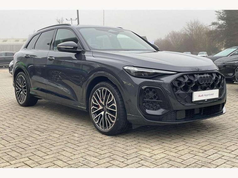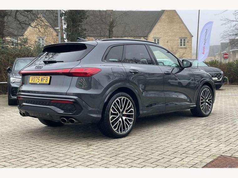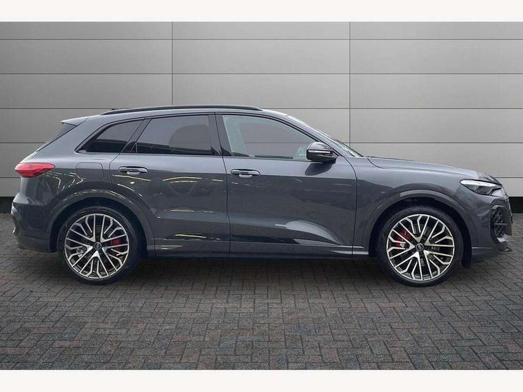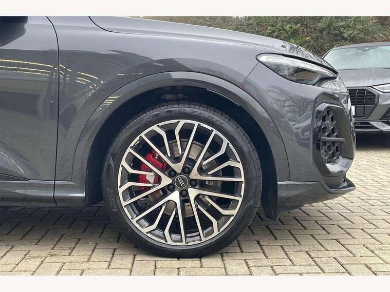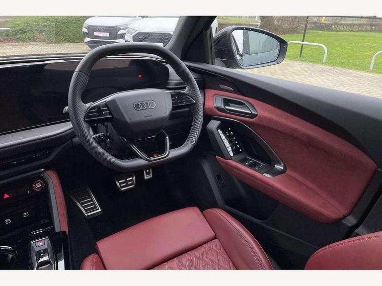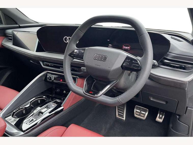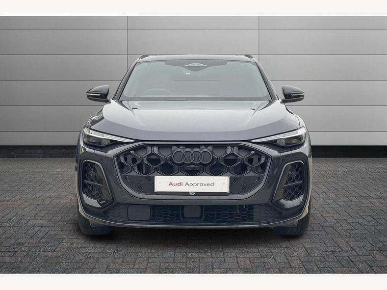 Adaptive cruise assist plus with steering intervention, Advanced driver attention alert, Audi application store, Audi connect emergency call and service, Audi digital key, Audi drive select, Audi smartphone interface, Audi virtual cockpit plus with 11.9" OLED colour display, Camera based traffic sign recognition, Fatigue monitor, Front cross traffic intersection assist, Garage door opener, Lane change assistant with exit warning system, rear cross traffic alert and rear turn assist, Lane departure warning with emergency assist, MMI 10.9" front passenger touch display, MMI navigation plus with high resolution 14.5" OLED touchscreen colour display, Park assist plus, Parking system plus with 360 display, PAS, Reversing camera, Swerve assist and turn assist, Top view camera, Traffic sign based speed limiter, S adaptive air suspension, 2 USB-C ports in both the front and rear, DAB Digital radio, Smartphone compartment with wireless charging, Acoustic glass for front door windows, Active digital light signatures - Six additional combinations of active daytime running light signature, Auto dimming rear view mirror, Coming/leaving home lighting function, Digital OLED tail lights including communication light, Electrically adjustable heated and folding + automatically dimming exterior mirrors, Exhaust tailpipes in dark chrome, Front and rear electric windows, Front door sill trims with aluminium inlays, illuminated with 'S' logo, Full body paint finish, Grill frame, inlay and front air inlets in matt anthracite chrome, Headlight cleaning system, Heated rear window, High beam assist, High gloss window surrounds, Logo projection light in exterior mirrors, Matrix LED headlights, Memory function for door mirrors, Privacy glass, Projection third brake light for rear window in LED, Radiator grille in phantom black, Rear and side windows with heat insulating glass, Rear honeycombe grille in matt black with inlay in matt anthracite chrome, Rear side wing doors, Rear wash/wipe, Red S rhombus badging with 'S' lettering on rear, S exterior styling, Towbar preparation, Windscreen with acoustic glazing, 3 rear head restraints, 3 seat bench in 2nd row, 3 spoke leather steering wheel with multi-function buttons with touch control, flattened on top and bottom, with S badging and contrast stitching, 40:20:40 split folding rear seat bench with centre armrest and cup holders, Comfort centre armrest front, Deluxe 3 zone electronic climate control, Electric steering wheel adjustment, Electrically adjustable front seats with memory function for driver's side, Front and rear floor mats, Front seat ventilation, Front sport seats with integrated head restraints, Headlining in black cloth, Heated front seats, Heated outer rear seats, Heated steering wheel, i-Size child seat mounting on the front passenger side and outer rear seats, i-Size and top tether on the outer rear seats, Increased charging capacity for USB ports 2X100 Watts in rear, 2X60 Watts in front, Interior trim in aluminium look, Luggage compartment lid, electrically opening and closing, Perforated fine nappa leather upholstery with diamond stitching incl ventilation and massage function for front seats, Pneumatically adjustable lumbar support with massage function for front seats, S embossed logo on front sport seats, Single front passenger seat, Softwrap in Dinamica, Stainless steel pedals and footrest, Steering wheel grips in perforated leather and shift paddles, Ambient lighting package plus - Q5, Black styling package plus - Q5, Sound and Vision pack - Q5, Storage and luggage compartment pack - Q5, 3x3 point rear seatbelts, ABS, Acoustic vehicle alerting system, Convenience key with safelock, Driver and front passenger airbag with passenger airbag deactivation, Electric child safety locks, First aid kit with warning triangle and high visibility vests, Front emergency brake assist, Front side airbags with head airbag system and front interaction airbag, Hill hold assist, Occupant detection in rear seat area, Proactive passenger protection system for front, sides and rear, Red brake calipers, Side airbags in front and rear with head airbag system and front interaction airbag, Tyre pressure loss indicator, Anti theft alarm, Anti-theft wheel bolts, Remote control key with SAFELOCK and keyless go, Accent surfaces and control buttons in gloss black, Black dashboard with contrast stitching, Steel grey seat stitching, Upper and lower interior elements in dinamica microfiber, Tyre repair kit,