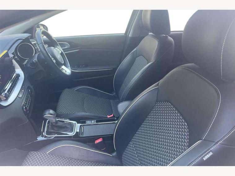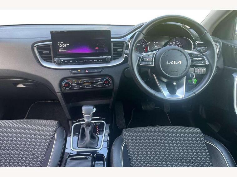 10.25" touchscreen satellite navigation including telematics, 4.2" supervision colour cluster display, Apple car play/Android Auto with voice control, Bluetooth with Voice Recognition & Music Streaming, Drive mode selector, Driver attention warning, Emergency stop signalling system, Kia connected services featuring TomTom live, Lane Following Assist (LFA), Lane keep assist, Motor driven power steering, Outside temperature gauge, Rear parking sensor, Reversing camera with dynamic guide lines, Service interval indicator, Speed limit information function (SLIF), Trip computer, Intelligent Stop and Go, 6 speaker audio system, DAB Radio with MP3, Illuminated USB ports, Steering wheel mounted controls, USB Fast Charger in Front Centre Console, USB port for connection of a media device, All-round Electric Windows with Front Auto Up & Down Function, Auto dimming rear view mirror, Automatic defog system, Automatic headlights, Body colour bumpers, Body colour door mirrors, Body colour exterior door handles, Body coloured rear spoiler, Chrome window surround, Electric adjustable/heated/folding door mirrors with LED Indicators, Front fog lights, Heated rear window with timer, High beam assist, High gloss black radiator grille, LED daytime running lights, LED High-mounted Brake Light, LED rear lights, Privacy glass (rear side windows and rear screen), Projection headlights with cornering lights, Rain sensing front wipers, Rear wash/wipe, Roof rails, Tinted glass, Wide view drivers door mirror, Windscreen Washer Level Warning, 12V socket in luggage compartment, 3 x passenger assist grips, 40:20:40 Split Folding Rear Seats with Remote Folding, All-round height adjustable headrests, Cloth/faux leather bolsters upholstery, Cupholders in centre console, Cupholders in rear armrest, Dash illumination dimmer switch, Driver & Front Passenger Sunvisors with Vanity Mirror Illumination & Ticket Holder, Driver + front passenger electric lumbar support, Driver's seat height adjuster, Dual Height Luggage Area Floor, Dual zone automatic air conditioning, Faux leather door trim, Front and rear door storage, Front map light with sunglasses case, Front Passenger Seat Height Adjuster, Front seat and rear pockets, Gear shift indicator, Headlining in Light grey, Illuminated ignition key hole, Interior door lock/unlock function, ISOFIX Child seat top tethers and anchor fixings, Leather handbrake, Leather steering wheel and gearshift, Luggage area light, Luggage area parcel shelf, Luggage hooks, Rear centre armrest, Rear coat hooks, Satin chrome interior door handles, Tilt/telescopic adjustable steering wheel, ABS with Electronic Brakeforce Distribution (EBD) and Brake Assist System (BAS), All round 3-point seatbelts, Dual front side airbags, Dual horn, Electronic stability control (ESC) and vehicle stability management (VSM), Front passenger airbag deactivation, Height adjustable front seatbelts, Hill start assist control (HAC), Impact sensing auto door unlocking, Rear door child safety locks, Seatbelt reminder warning, Traction control, Twin curtain airbags, Twin front airbags, Tyre pressure monitoring system, Alarm system, Engine Immobiliser & Deadlocks, Locking wheel nuts, Remote central door locking with fold away key, Speed sensitive auto door locking, Black high gloss front console tray garnish & door trim, Satin Chrome Fascia Trim, 17" Alloy wheels, Tyre mobility kit,