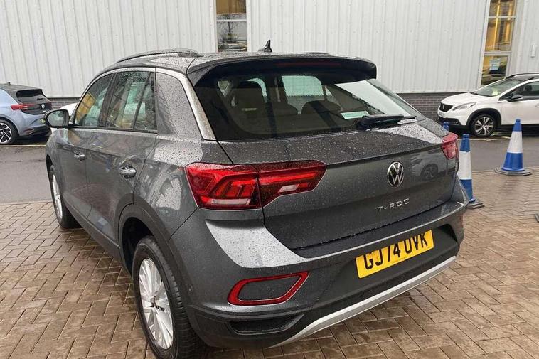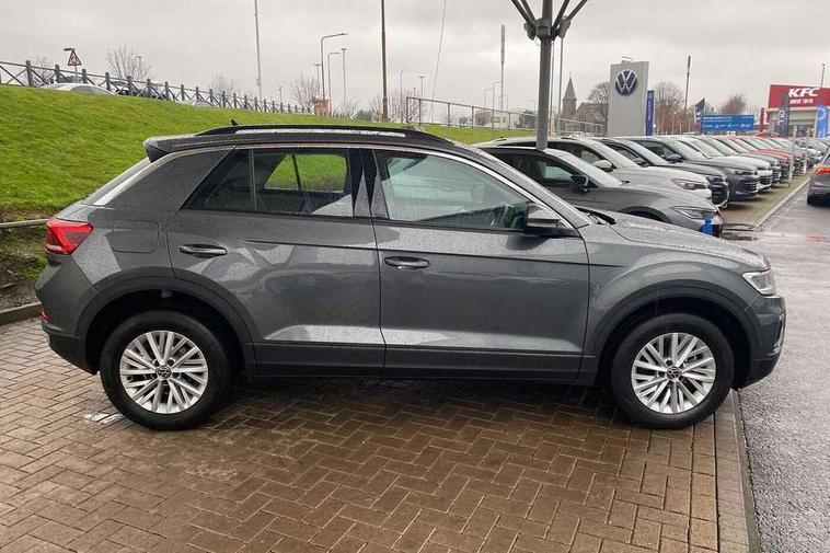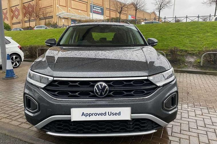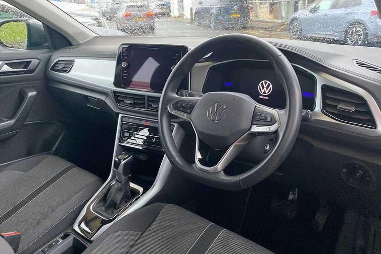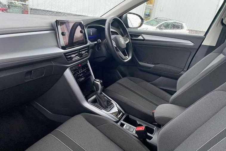 Advanced driver attention and drowsiness monitor, Dynamic road sign display, Emergency call service, Lane keeping system Lane Assist, Mobile phone interface, Modified key software - reduce switch off time for key status change to Long no motion, Online services, Park assist including front and rear parking sensors, Power assisted speed sensitive steering, Service interval indicator, Tailgate/trunk lid release from outside, Think blue trainer driver tips and journey analysis, Warning sound and light for front seatbelts unfastened, Wireless app connect, Wireless Smartphone charger, Battery regeneration during braking, Front shock absorption, Rear shock absorption chassis with increased ride height, Start/stop function with battery regeneration, DAB Digital radio, Diversity antenna for FM reception, Front and rear 6 speakers, Music playback - MP3, WMA and AAC files, Premium USB cable in choice of either Apple or Android smartphone compatibility, SD card slot, Simultaneous pairing of 2 compatible mobile devices, Title and cover art display, We Connect and We Connect Plus functionality, Auto dimming interior rear view mirror, Automatic hazard lights activation under emergency braking, Automatic headlight control with LED separate daytime running lights with coming/leaving home function, Black roof rails, Body coloured bumpers and radiator grille with chrome trim and front fog lamps with chrome bezel, Body coloured exterior mirror housings and door handles, Electrically adjustable and heated door mirrors, Extended roof spoiler, Exterior mirrors aspherical on driver side, convex on front passenger side, External USB type C socket and charging sockets, Front windscreen wiper with intermittent wipe and 4 position delay, Heated rear window, LED 3rd brake light, LED rear combination lamps, LED rear number plate lights, Power windows with comfort operation and circuit breaker, Rain sensor, Rear exhaust tailpipe, Rear fog light on one side and reversing lights on both sides, Rear side wing doors, Rear wash/wipe with intermittent wipe setting, Remote electrically foldable door mirrors, puddle lights and reverse activated passenger's door mirror, 12V power socket in centre console, 3 rear head restraints, 3 seat bench in 2nd row, 4 load lashing points in luggage compartment, Air care climatronic air conditoning system with active combination filter and 2-zone temperature control, Ambient lighting with mirror logo projection, Cloth upholstery, Door and side trim panel in cloth, Drawer under drivers seat, Driver/front passenger seat height adjustment, Front centre armrest, Front comfort sports seats, Front cupholders x 2, Front reading light, Front seat back storage pockets, Glove compartment door with light, Instrument lighting, white adjustable panel illumination, Interior light delay, Isofix child seat preparation, Leather gearshift handle, Load-through provision with cup holder when folded down ('Unsplit rear seat bench, split folding backrest, with centre armrest), Luggage compartment lighting, Lumbar support for driver's and front passengers seat, Non-folding front passenger seat backrest, Single front passenger seat, Storage compartment in left and right luggage area, Storage compartment in rear doors, Storage compartments in driver and front passenger doors, Sunvisors with illuminated vanity mirrors, Variable boot floor, height adjustable and removable, Driver assistance pack without proactive passenger protection - T-Roc Life/Match, 3 point height adj front seatbelts + pretensioners, 3 point seatbelts in outer rear with ECE label, ABS, Child locks on rear doors, City emergency braking and pedestrian monitoring, Driver and front passenger airbag with front passenger airbag deactivation, Driver and front passenger safety-optimised head restraints, Drivers seatbelt reminder, Electronic parking brake, Electronic Stability Control (ESC) inc EDL (Electronic Differential Lock) and ASR (Traction Control), Front and rear passengers curtain airbag system including front side airbags, Front disc brakes, Hill start assist, Predictive pedestrian protection, Rear disc brakes, Two tone horn, Tyre pressure loss indicator, Volkswagen roadside assistance, Alarm with interior protection, Pewter matt decorative inserts for intrument panel, centre console and door panels at the front, Trims for alloy wheels,