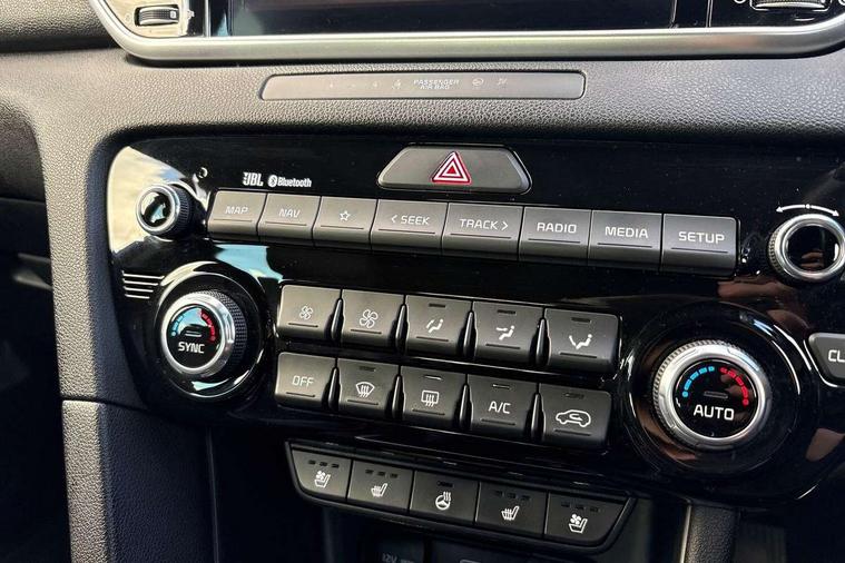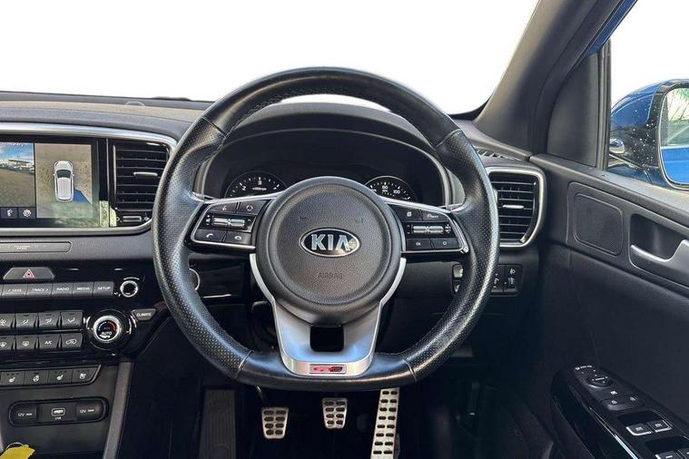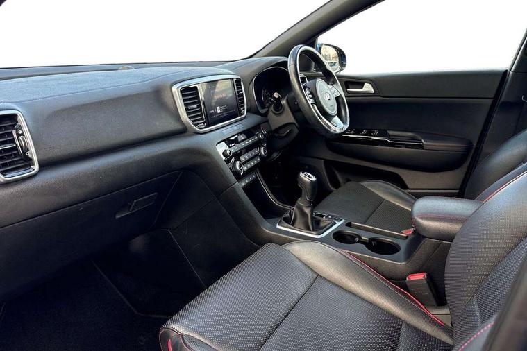 360 degree around view monitor, 4.2" supervision colour cluster display, 8" touchscreen satellite navigation with European mapping and traffic messaging channel, Android auto with voice control, Apple car play with voice control, Blind spot collision warning, Cruise control + speed limiter, Driver attention warning, Emergency stop signalling system, Forward collision avoidance assist, Front parking sensor, Kia connected services featuring TomTom live, Lane keep assist, Rear parking sensor, Reversing camera, Smart power tailgate, Speed limit information, Speed sensitive power steering, Telematics system with UVO connect services, Trip computer, Windscreen washer level indicator, Intelligent Stop and Go, Bluetooth audio streaming, DAB Radio with MP3, JBL Premium sound system with 8 speakers, external amp, subwoofer and front centre speaker, Rear USB port, Steering wheel mounted audio controls, USB/iPod/auxiliary input connections, All round electric windows with drivers and front passenger auto up/down function, Auto dimming rear view mirror, Automatic lighting control, Automatic window defogger, Black wheel arch body mouldings and side sills with dark chrome insert, Body colour door handles with chrome inserts, Body colour door mirrors, Chrome window surround, Dark chrome front bumper insert, Dark chrome front grille surround, Dual exhaust pipes, EcoDynamics + Badge, Electric panoramic glass sunroof (Electric one touch with safety function), Electrically adjustable/heated/folding door mirrors with LED indicators, Front wiper de-icer, High beam assist, High gloss black blade mesh radiator grille, LED Bi-Function headlights, LED daytime running lights, LED ice cube front fog lights, LED rear lights, Privacy glass - Rear windows and tailgate, Rain sensing front wipers, Rear spoiler, Rear wiper, Roof rails, Shark fin antenna, Silver painted front and rear skid plates, Tinted glass, Trailer stability assist, Welcome and follow-me home light functionality, Wide view drivers door mirror, 10 way driver/8 way passenger electrically power adjustable seats, 12V power in front and rear centre console, 3 x passenger assist grips, 60/40 split folding rear seat, Air filter, All-round height adjustable headrests, Aluminium door scuff plates, Aluminium pedals, Black headlining, Centre console storage box, Chrome boot sill guard, D-Shaped sports leather steering wheel and perforated inserts with GT-Line logo, Driver and front passenger side sunvisors with illuminated vanity mirrors, Drivers seat power lumbar support, Dual zone automatic air conditioning, Front and rear door storage, Front cabin LED map light with sunglasses case, Front door courtesy reflectors, Front seat and rear pockets, Front/rear centre armrests, Gear shift indicator, Glovebox illumination, Heated front and outer rear seats, Heated steering wheel, Interior door lock/unlock function, ISOFIX Child seat top tethers and anchor fixings outer rear seats, Leather trimmed door armrests, Leather trimmed gearshift, Leather upholstery with red piping and stitching, Luggage area LED light, Luggage area load cover, Luggage net with hooks, Rear centre armrest with cupholder, Rear coat hooks, Satin chrome interior door handles, Side cabin LED lights, Tilt/telescopic adjustable steering wheel, Ventilated front seats, Ventilation ducts to rear compartment, Active front headrests, All round 3-point seatbelts, Anti-lock braking system with electronic brakeforce distribution, Dual front side airbags, Electronic parking brake, Electronic stability control with downhill brake control, Front passenger airbag cut-off switch, Front seatbelt pretensioners + load limiters, Height adjustable front seatbelts, Hill start assist control (HAC), Impact sensing auto door unlocking, Rear door child safety locks, Traction control, Twin curtain airbags with roll over sensor, Twin front airbags, Tyre pressure monitoring system, Advanced anti-theft system including immobiliser and alarm, Door deadlocks, Engine Start/Stop Button with Smart Entry System, Locking wheel nuts, Speed sensitive auto door locking, Visible vehicle identification number, High gloss black centre fascia, 19" alloy Wheels B-type, Tyre mobility kit,