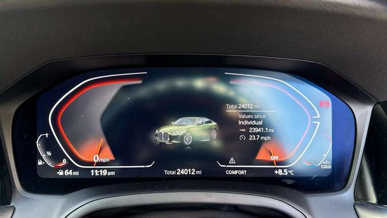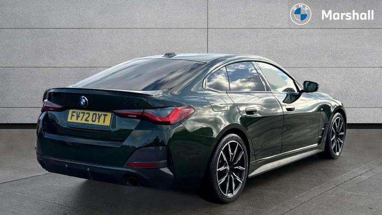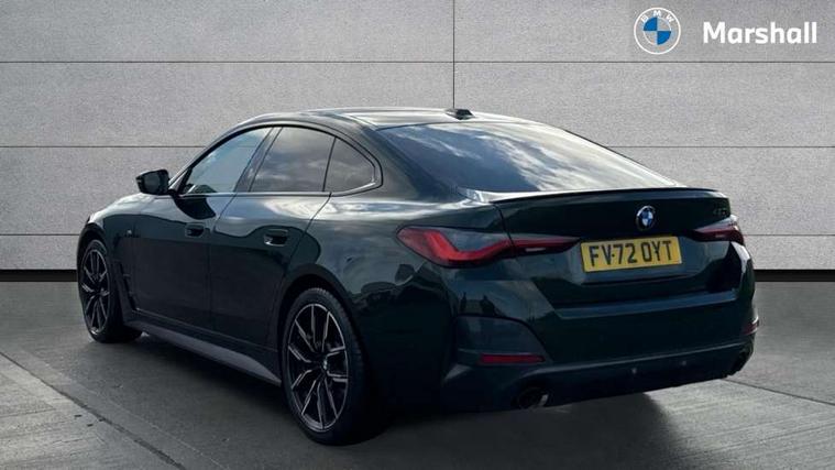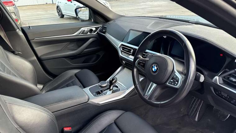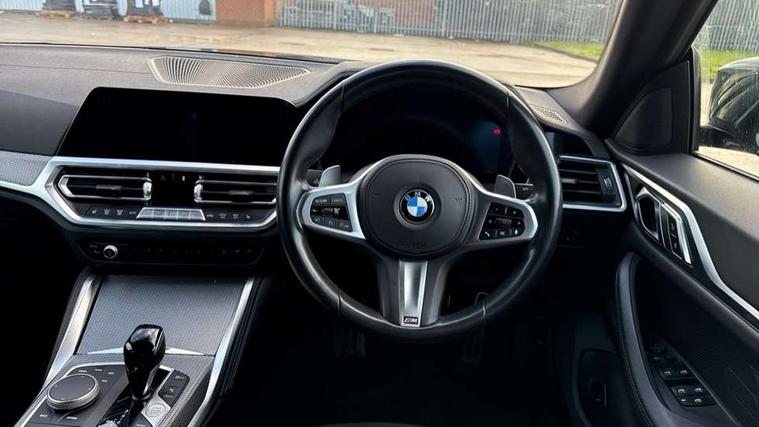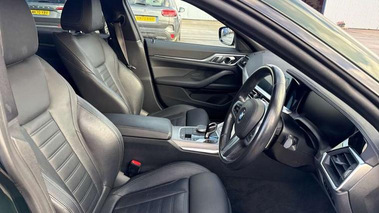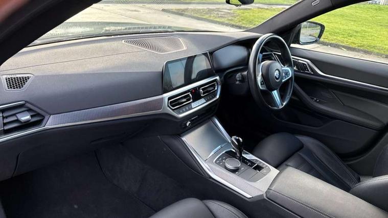 Active guard plus, Attentiveness assist, Auto start-stop, BMW ConnectedDrive online services, BMW iDrive controller on centre console, BMW Live Cockpit Professional Nav with 12.3" instrument display + 10.25" display, Intelligent Voice Assist, BMW OS 7, HDD, 2USB, 4G LTE connect, BMW service history, BMW Teleservices, Brake pad wear indicator in front and rear, Check Control warning system for monitoring of lights and door/luggage compartment open warning, Condition based service, Cruise control with speed limit function, Electric bootlid, Electric power steering with Servotronic steering optimised at all speed ranges, Gearshift time display in manual mode, Instrument cluster with speedometer with mph readout, tachometer, fuel gauge and oil temperature gauge, Integrated owners handbook, Oil sensor for level and grade, warning by check control system, On board computer - average speed, fuel consumption, outside temp display with acoustic warning, clock/date, service interval, odometer/trip meter, Optimum shift indicator, Shifting point display, Variable sport steering, 8 speed automatic steptronic transmission with gearshift paddles, Double joint spring strut front axle, Double VANOS, Drive performance control - ECO PRO, comfort and sport modes, High precision injection, Low centre of gravity, M sport suspension, Petrol Particulate Filter, Stroke dependent dampers, VALVETRONIC engine management, 2x USB Type C ports in front centre console for charging and data transfer, DAB tuner, Electronic service booklet, 3rd brake light, Acoustic glazing, Automatic headlight beam throw control with load dependent regulating reaction, dynamic compensation of braking dive and acceleration squat, Automatic windscreen wipers and automatic headlight, Automatically dimming electrochromatic rear view mirror, BMW emblem on engine compartment lid and tailgate, BMW kidney grille with mesh grille front side of the nuggets in matt aluminium and frame in chrome high gloss, Body colour fuel filler flap, Body colour roof fin, Brushed aluminium inserts in the front door sill finishers with BMW designation, Door sill strips, Dynamic brake lights, Electric windows - front and rear, with open/close fingertip control, anti trap facility and comfort closing function all round, Exterior mirrors - electrically folding with anti-dazzle, Fading support, Follow me home headlights, Front and rear bumper system, Front apron plastic in body colour, Green tinted heat protection glazing, High gloss shadow line exterior trim, Illuminated bow type door handles in body colour drivers side with door lock, Interior rear view electrochromatic mirror with automatic anti dazzle function, LED daytime running lights, LED front fog lights, LED front indicators, Licence plate panel integrated into front bumper and tailgate, Lightweight engineering, M designation on front side panels, left and right, M sport rear boot spoiler with body colour gurney, Model designation on right side of tailgate, One piece front bumper cover including towing eye cover in body colour, Preparation for high beam assistant, Rear side wing doors, Rear wiper, Reversing light, Side frame decorative moulding black matt, Two part LED tailights in L-shape with components in smoked glass, brake light, LED turn indicator and rear fog light, Visible exhaust tailpipe finisher, Visible VIN plate, Welcome lights in interior and door handle area, Widened track and increased camber values for max transverse dynamics, agility and steering precision, Window recess cover black high gloss, Windscreen wipers with integrated heated washing jets, 12V power socket in front centre console, 2 front cupholder in centre console with clamping elements and matt black inlay, 3 rear headrests, 3 seat bench in 2nd row, 3 spoke M sport leather multifunction steering wheel, 3 zone automatic air conditioning, 4 pieces lashing eyelets in luggage compartment, 40:20:40 split folding rear seat and rear centre armrest with two cupholders, Anthracite headlining, Armrest integrated in front and rear door trim + front centre console armrest, BMW ID, Driver seat backrest width adjustment, Four grab handles integrated in roof lining, Front and rear door pockets, Front and rear reading lights, Front sport seats, Heated driver and front passenger seats, Height adjustable front headrests, Height adjustable mechanically and infinitely variable steering column, Illuminated armrest storage compartment, Illuminated glove compartment with separate small compartment, Make-up mirror lights, Single front passenger seat, Storage compartment in rear centre console, Sunvisors with illuminated vanity mirrors and ticket pocket, Toolkit located in luggage compartment, Velour front floor mats, Vernasca leather upholstery, Ambient lighting pack - 4 Series, Connected professional pack - 4 Series, M sport exterior styling pack - 4 Series, 3 point seatbelts on all seats, Battery safety cut-off, BMW emergency call, Brake energy regeneration, Braking pre-tensioning, Child proof locking system in rear door, Child seat ISOFIX attachment for the two outer rear seats, Coasting in idle in ECO PRO mode, Cornering brake control (CBC), Crash sensor activating of airbags, Unlocking doors, hazard warning lights, interior light, safety battery terminal, Driver and front passenger side airbags, integrated in the door side seat backrest bolsters for all seat variants, Driver/Front Passenger airbags, Dry braking, Dynamic brake control, Dynamic stability control + (DSC+) - Anti-lock Braking System (ABS) with brake assist and cornering brake control + Automatic Stability Control (ASC), Dynamic Traction Control - DTC, Electric parking brake including automatic hold function and automatic release of the parking brake when driving off, Electronic differential lock control (EDLC), Front and rear ventilated brake disc, Front passenger manual airbag deactivation, Head airbags for all 4 outer seats, Hill start assistant, Seat belt security check for driver 