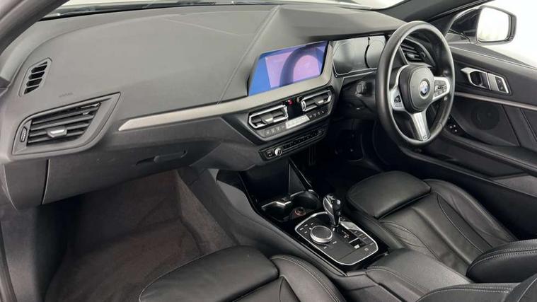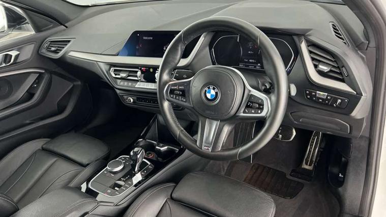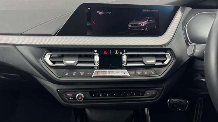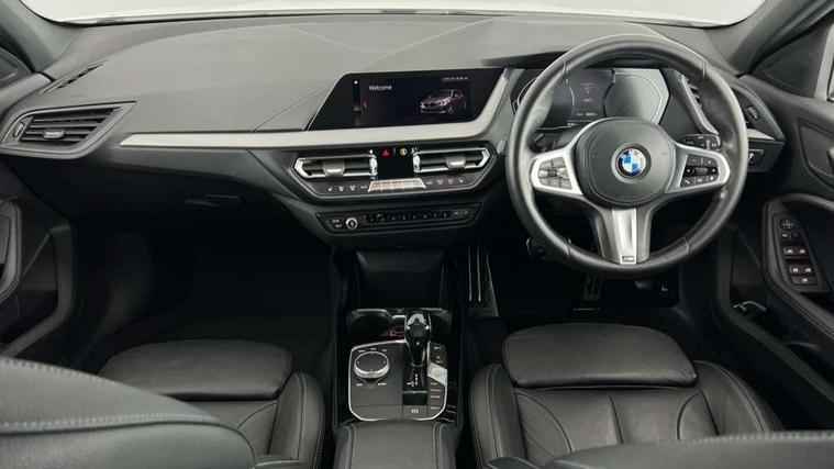 Active guard plus, Attentiveness assist, BMW Online services, BMW Teleservices, Check Control warning system for monitoring of lights and door/luggage compartment open warning, Connected eDrive Services, Eco pro mode, Electric power steering with Servotronic steering optimised at all speed ranges, Integrated owners handbook, Oil sensor for level and grade, On board computer, Optimum shift indicator, Personal Profile, Pull away assistant, Speed limiter, Aluminium lightweight construction, Anti roll bar front and rear, Balancer shaft, Double VANOS, Drive Performance Control, Electronic differential lock, High precision injection, M sports suspension + self levelling, Petrol Particulate Filter, VALVETRONIC engine management, Bluetooth audio streaming, DAB Digital radio, Auto dimming rear view mirror, Automatic headlight beam throw control, Body colour door handles, Body colour mirror caps, Chrome 'M' logo side designation, Chrome exhaust tailpipe in single, round (Exhaust tailpipe, stainless steel - single, round), Chrome kidney grille frame with Satin Aluminium struts, Direction indicator side lights in exterior mirrors, Electric folding and anti dazzle exterior mirrors, Fading support, Follow me home headlights, Front and rear electric windows with open and close fingertip control, anti trap facility and comfort closing, Front door sill finishers in black plastic with BMW designation, Green tinted heat protection glazing, Heated, electrically adjustable exterior mirror aspheric on driver side, convex on passenger side, High gloss shadow line exterior trim, High gloss shadowline window frame, Recess cover mirror frames and B/C pillar embelisher trim, High level third brake light, LED daytime running lights, LED eyebrow turn indicators, LED front fog lights, Lightweight engineering, Matt black air guide grilles, Model designation on right side of tailgate, Nearside reverse light in rear light cluster, Rain sensor including auto headlights activation, Rear fog lights, Rear window wiper, Shark fin antenna, Visible VIN plate, Welcome lighting, Windscreen wipers with integrated washing jets, 12V power socket in centre console, 2 cupholders in front centre console, 3 rear seat head restraints, 3 spoke M sports design leather steering wheel finished in nappa leather with specific M badge, Anthracite headlining, Anthracite Velour floor mats, Child seat ISOFIX attachment for two outer rear seats and front passenger seat with anchorage points, Conditioned based service, Dakota leather upholstery with perforation and contrast stitching, Driver and front passenger seat heating, Driver side folding compartment in instrument panel, Folding rear clothes hook, Folding rear seats, Four grab handles integrated in roof lining, Front and rear door pockets, Front and rear side armrest integrated into door trim, Front armrest foldable with integrated storage compartment, Front sports seats with electric side bolster adjustment, Glove compartment, Height adjustable front head restraints, Manual adjust steering wheel, Multi-function controls for steering wheel, Rear seat backrest with manual 60:40 split folding with 3 top tether clips integrated on rear of seat panels, Storage compartment in centre console, Sun visors with vanity mirrors and insert tab, Two zone automatic air conditioning, Extended Lighting pack - 1 Series, Extended storage pack - 1 Series, Interior lights pack - 1 Series, Luggage compartment pack - 1 Series, M Sport exterior styling aerodynamics pack - 1 Series, 2 tone horn, 3 point seatbelts on all seats, front pyrotechnic belt tensioners, stopper and belt force limiters, rear coded belt buckles, Airbags - Front driver and passenger, front and rear head, front side, curtain head protection, Anti lock braking system (ABS) with brake assist, BMW emergency call, Brake drying, Braking readiness, Crash sensor activating central locking release, hazard warning lights, fuel cut off, interior lighting + activation of safety battery terminal clamp, Driver and front passenger seat belt security check, Dynamic stability control + (DSC+), Dynamic Traction Control - DTC, Electrically operated hand brake, Front and rear disc brakes, Front passenger manual airbag deactivation, Rear child proof door locks, Seatbelt warning, Side impact protection, Tyre pressure monitoring system, Warning triangle and first aid kit, Automatic drive away locking facility, Central locking switch for all doors, fuel filler cap and luggage compartment, Deadlocking function system to all doors, Locking wheel bolts, Remote control with integrated key with High-gloss Black inlay and M designation and 1 button for open/ close lock, window, open luggage compartment, Start/stop button with comfort go keyless engine start and auto start stop deactivation button, Thatcham Cat.1 alarm and immobiliser, Contrast stitching on instrument panel, Reduced rolling resistance tyres,