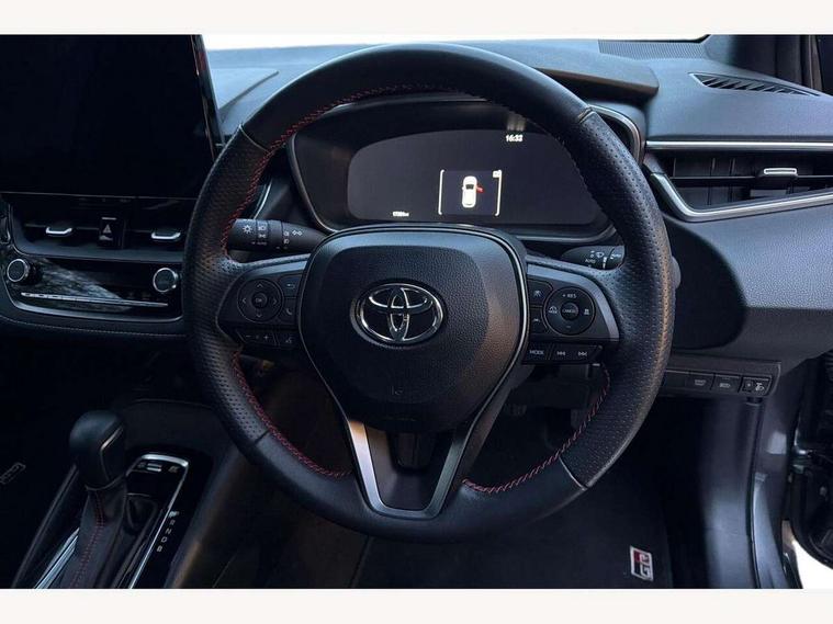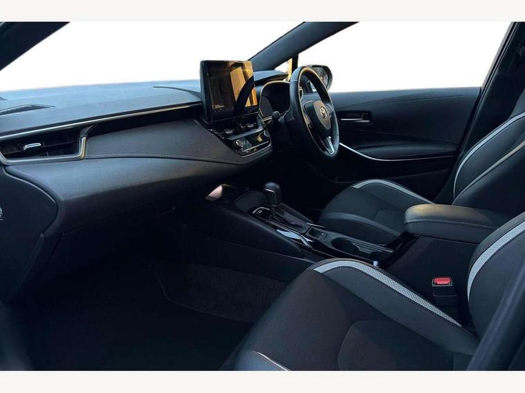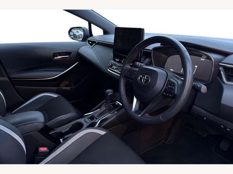 10.5" Multimedia display screen, Bluetooth telephone connectivity, Connected car functionality upgrade, tracker, remote status and e-care, Drive mode select (Eco, Normal), E-call, Electrically assisted power steering, EV drive indicator, Front and rear parking sensors with auto brake, Full Digital 12.3" TFT Digital Combimeter, Key reminder warning, Lane Departure Alert (LDA) switch on steering wheel, Memory on adjustable speed limiter, MyT connected services, Proactive driving assist (PDA), Reversing camera, Smart entry and push button start with GR Logo, Smartphone integration with Apple CarPlay and wired android auto, Tailgate, Toyota remote services, Toyota smart connect navigation, Wireless charger, Gasoline particulate filter, Vehicle Stability Control (VSC), 6 speakers, AM/FM radio, DAB Digital radio, Front USB-C in centre console, Front USB-C in dashboard, Smart voice assist/ Voice recognition, USB and Aux in connectors + 12V front outlet, Anti-jam protection on power windows, Auto up and down function on all power windows, Automatic folding mirrors, Automatic headlights with high beam assist, Black centre and side air vents, Black toyota logo in front, Body coloured bumpers, Body coloured door mirrors, Body coloured outside door handles, Dark chrome lower grille, Electrochromatic mirror, Follow me home headlights, GR Sport dark chrome front mesh grille and black rear grille, GR Sport exclusive under guard, GR sport scuff plates, LED daytime running lights, LED dual beam projector headlights, LED front fog lights, LED High mounted stop light, LED rear combi lights with LED lightguide, Manual headlight levelling system, New grille pattern, Noise reduction layer on windscreen, Piano black diffuser, Power adjustable heated door mirrors, Power front windows, Power rear windows, Privacy glass with UV filter, Rain sensing wipers, Rear side wing doors, Rear window defogger, Rear window wiper, Reverse tilting door mirrors, Rocker and door lower moulding, Roof spoiler, Satin chrome insert on front air vents, Satin chrome insert on front door assist grips, Satin silver front spoiler, Shark fin antenna, Tailgate release with push button, Time adjustment on intermittent wiper, Turning signal integrated indicators in door mirrors, Unique lower skirt, Unique side rocker with black insert, UV-filter on driver and passenger windows, 2 Shopping bag hooks in luggage compartment, 3 rear headrests, 3 seat bench in 2nd row, 3 spoke leather steering wheel with satin insert/red stitching + gear knob, 4 tie down hooks in luggage compartment, 60/40 split folding rear seat, Adaptive cruise control (ACC) switch on steering wheel, Adjustable speed limiter switch on steering wheel, Audio, multimedia and telephone switches on steering wheel, Black armrest on centre console box, Black gear shift console, Boot light, Centre room light, Driver and front passenger personal light, Driver and passenger assist grip, Driver and passenger seatback pockets, Driver and passenger sun visor with mirror and light, Dual zone automatic air conditioning with ECO mode switch, Fabric/synthetic leather upholstery, Front and rear cup and bottle holders, Front door pockets, Front head restraints, Front passenger seat, Front sliding synthetic leather armrest, GR Sports seats with partial leather bolsters, Heated seats, Illuminated entry system in room lamp, ISOFIX seat fixing (2 fixings on rear outer seats), Manual height adjustable for driver and front passenger seat, Manually tilt with sliding driver and front passenger seat, Nanoe-X air purifier, Parcel shelf, Pollen filter, Power window switches with satin chrome inserts, Rear armrest with 2 cupholders, Rear passenger coat hooks (2), Red stitching on gear shift, Remote air conditioning, Satin chrome inside door handles, Satin chrome surround on speedometer, Sliding armrest on centre console box, Slow opening glovebox with lights, Textile floor mats, Tilt/telescopic steering column, Voice recognition switch on steering wheel, Whiplash Injury Lessening (WIL) feature (active headrest) for seats, White ambient lighting on open tray and front cup holder, Toyota safety sense 3 pack - Corolla, 3x3 point rear seatbelts, Adjustable driver and front passenger seat belt extender to top anchor point, Anti lock braking system + Electronic brake force distribution, Brake assist function, Child locks on rear doors, Downhill Assist Control (DAC), Electronic parking brake, Emergency brake light signal (EBS), Front passenger airbag on/off switch, Front seatbelt reminder, HAC - Hill start assist control, Rear seat belt reminder, Seatbelt pretensioners and force limiters, Supplemental restraint system (SRS) 7 airbags - dual driver, dual side curtain, side impact and driver knee airbags, Traction control, Tyre pressure warning system, Acoustic vehicle alert system (AVAS), Alarm with motion sensor and immobilizer, Power passenger window lock, Remote central locking + deadlocks, GR Sport interior styling with accents and exterior styling, Satin chrome dash trim, Soft touch texture on upper dashboard, Stitching on lower dashboard, 18" Black machined face 10 spoke alloy wheels, Tyre repair kit, Unique wheel finish with red wheel cap,