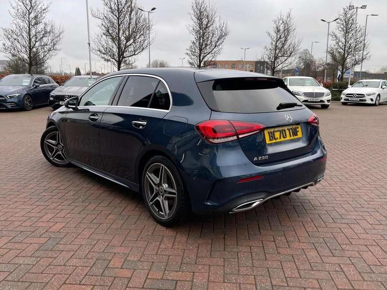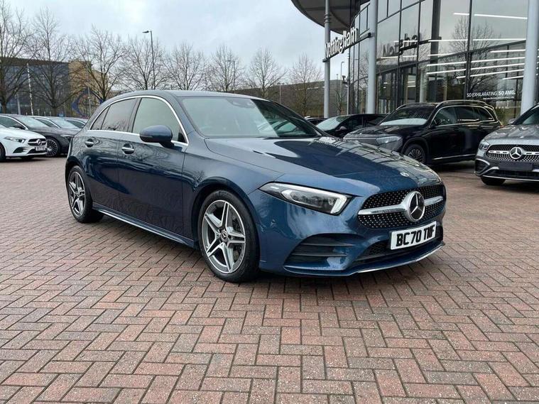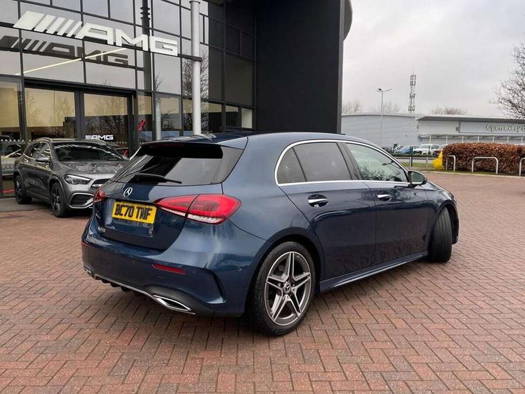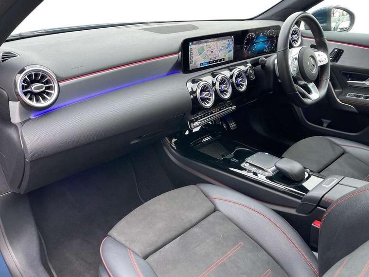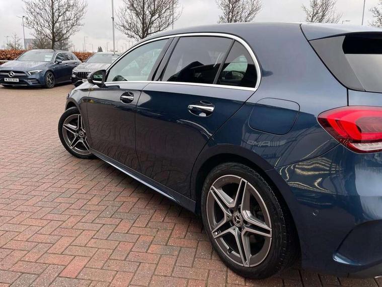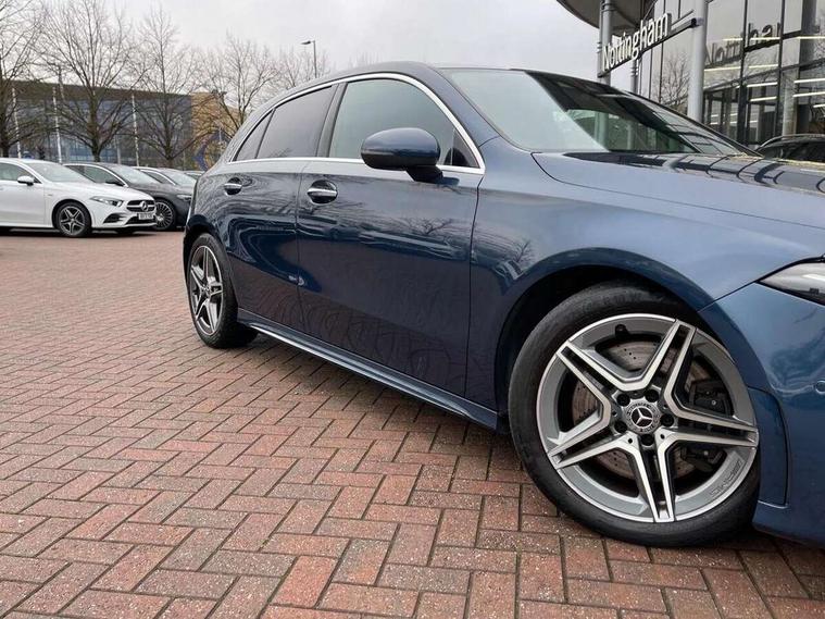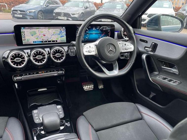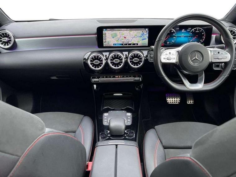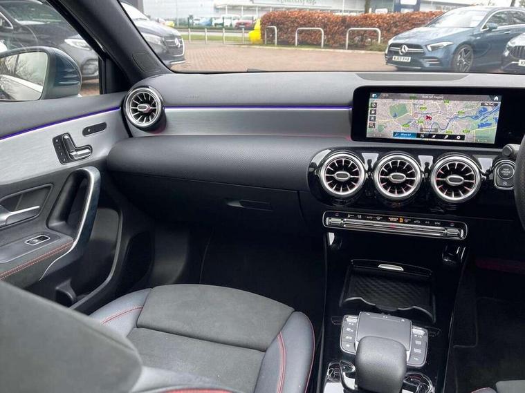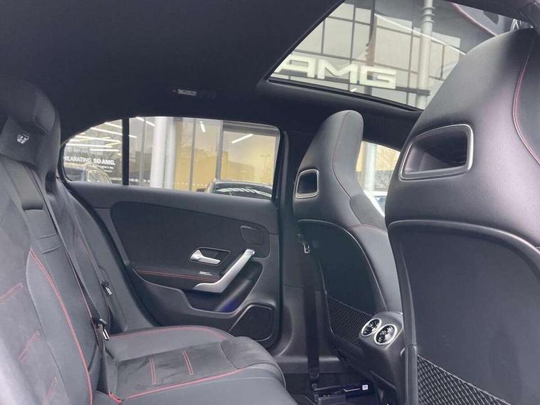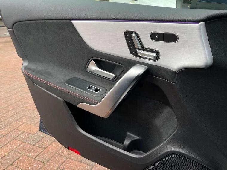 10.25" Digital instrument cluster display screen, 10.25" media display, 180 degree rear view camera with parking guidelines, Active lane keep assist, Active park assist with parktronic system including front and rear parking sensors, Attention assist, Brake pad wear indicator warning light, Car wash mode, Direct steering, Dual bluetooth interfaces, DYNAMIC SELECT with a choice of driving modes (ECO, Comfort, Sport and Individual), ECO start/stop function, Fluid level warning indicator for fuel, oil, coolant and washer fluid, Hard-disk navigation, Hey Mercedes Voice activation, Lamp failure indicator, MBUX augmented reality for navigation, Mercedes me connect including emergency call system, accident recovery, breakdown and maintenance management, Outside temperature gauge, Owners manual in English, Pre-installation for private car sharing, Pre-installation for Vehicle Monitoring, Pre-installation for Vehicle Setup, Preinstallation for Mercedes Benz link, Service indicator (ASSYST), Smartphone integration with Apple CarPlay and Android auto, Traffic sign assist, Trip computer, Wireless charging, Lowered comfort suspension, Rear axle multi-link, 10 speakers, 2 USB ports (type C) in rear stowage compartment and one in front of center console, DAB Digital radio, MBUX multimedia system with DAB digital radio and touchpad including satellite navigation, Mercedes-Benz advanced sound system - 225W, 4 Electric Front and Rear windows, Adaptive brake lights, AMG bodystyling - Front apron with splitter in chrome, rear apron with chrome trim and chrome visible trim elements in tailpipe, Black weather strip, Body colour bumpers, Body colour door handles, Body colour side skirt, Body coloured door mirrors, Chrome beltline trim, Diamond radiator grille with chrome pins and silver louvre + chrome insert, Electric adjustable and heated door mirrors with integrated LED side indicators, Exhaust system - Twin visible tailpipes in polished stainless steel, Headlamp assist automatic headlamp activation, Heated glass rear windscreen + timer control, Illuminated front door sill panels with Mercedes-Benz lettering, LED high performance headlamps with integrated LED daytime running lights, LED tail lamp, LED third brake light, Multibeam LED with adaptive highbeam assist plus, Panoramic sliding sunroof, Privacy glass, Radio aerial, Rain sensing windscreen wipers with two sensitivity settings, Rear fog lights, Rear wiper, Window line trim strip in chrome, 3 Spoke flat bottom leather multi function steering wheel with perforated leather in grip area, 40:20:40 split folding rear seats, Artico man-made leather/Microfibre Dinamica upholstery with red contrast stitching, Auto Mercedes-Benz child seat recognition sensor, Black air vents with surround in silver chrome, Black roof lining, Brushed stainless steel sports pedals with rubber studs, Controller on centre console with chrome surround, Electrically adjustable front memory seats including lumbar support, Floor mats with stitched edging and AMG lettering, Front centre armrest with storage compartment, Front seat backs luggage nets, Front seat cushion length adjustment, Galvanished gear shift paddles on steering wheel, Heated front seats, Height/reach adjustable steering column, Interior lighting - 64 colour Ambient lighting, Interior mirror with reading lamps in black and frameless, Rear armrest with 2 cupholders, Rear head restraints, Seat occupancy sensor for front passenger seat, Sports seats with integrated headrests, Stowage compartment in centre console with retractable cover, Sunvisors with illuminated vanity mirrors, Touchpad on center console, Twin front cupholders, Two zone thermotronic luxury automatic climate control, Light and sight pack - A Class, Mirror package - A Class, Seat comfort pack - A Class, 3 rear 3 point seatbelts, ABS with Brake Assist, Active bonnet, Adaptive brake assist with hold function and hill start assist, Black seatbelts, Childproof locks manually operated for rear doors and electrically operated for rear power windows, Crash responsive emergency lighting, Driver and passenger head and side airbags, Drivers knee airbag, Dual stage driver/passenger airbags, Electronic parking brake, ESP curve dynamic assist, ESP with ASR, Front and rear seatbelt reminder, Front brake callipers with Mercedes Benz lettering, ISOFIX and top tether child seat fixing points in two outer rear seats, Perforated front brake discs, Tyre pressure monitoring system, Warning triangle and first aid kit, Window airbags, Alarm system/interior protection/immobiliser, Keyless entry lock/unlock, Keyless Go, Remote central locking and crash sensor with emergency opening function, Urban guard vehicle protection system with immobiliser and interior protection, Light aluminium with longitudinal grain interior trim, 18" AMG 5 twin spoke light alloy wheels in titanium grey with highsheen finish, Summer tyres, Tirefit sealant kit,