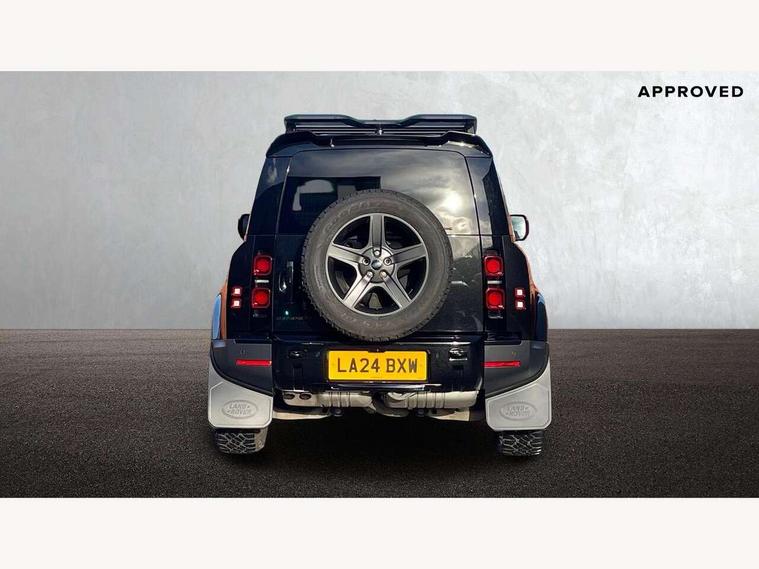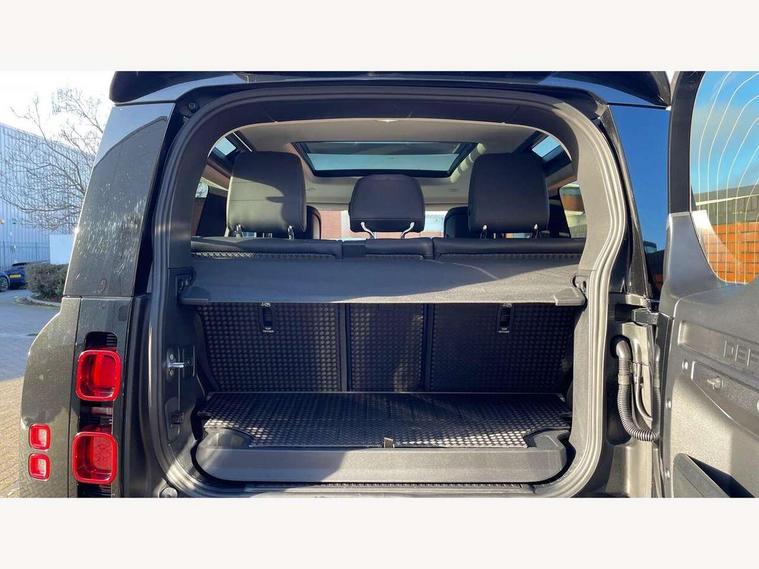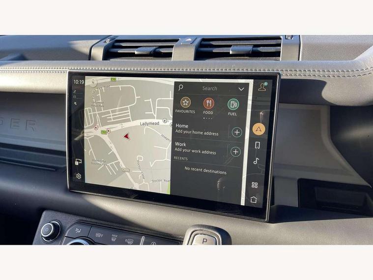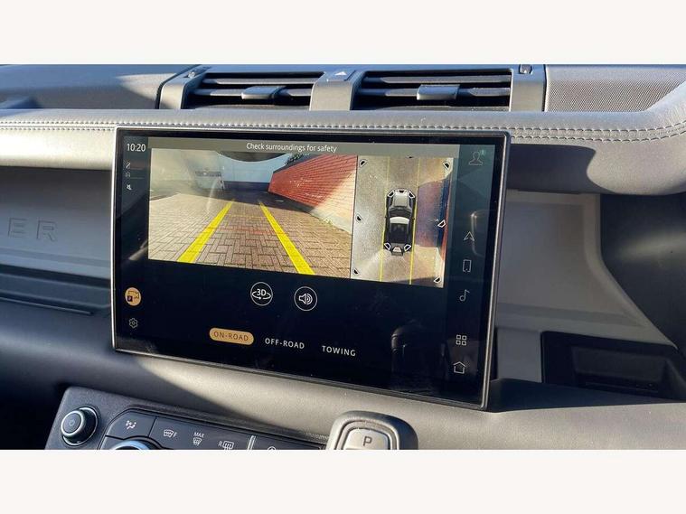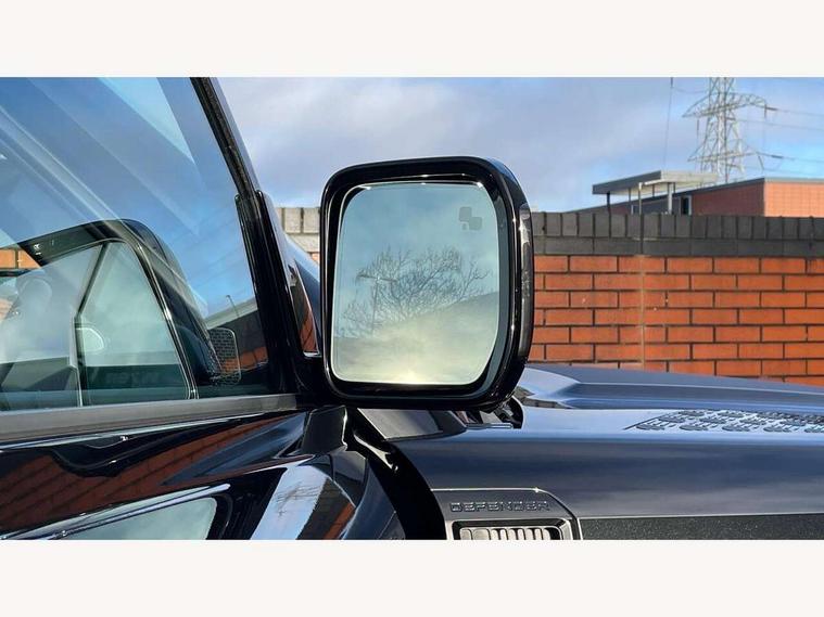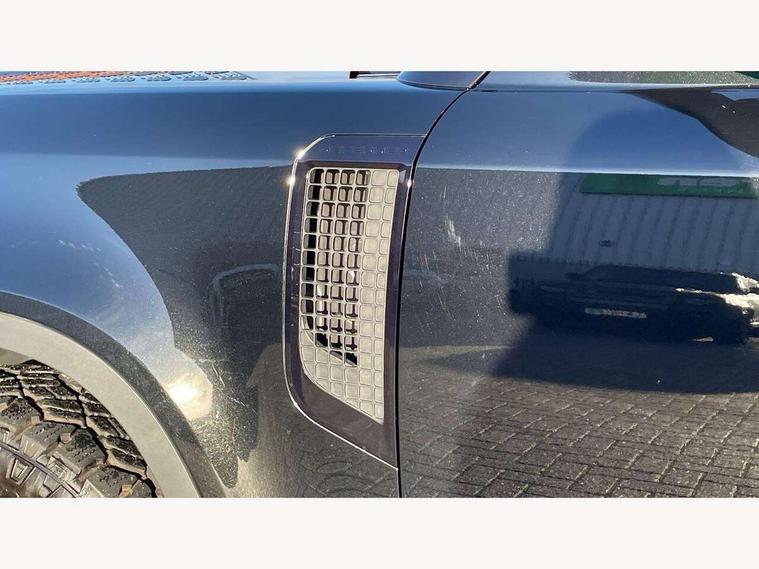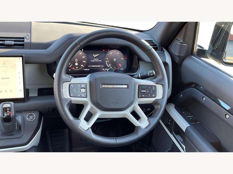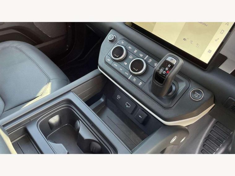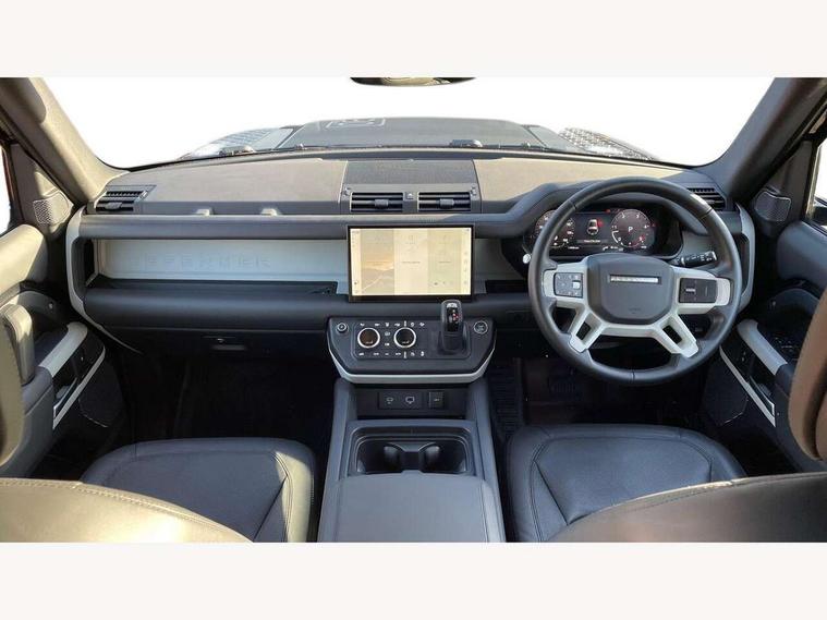 11.4" touchscreen, 360 degree parking aid, 3D Surround Camera with 360 View, 180 Rear View, Front Traffic Detection, Forward Vehicle Guidance, Tow Hitch Assist and clear sight Ground View, Adaptive cruise control, Android Auto, Apple CarPlay, Assisted tailgate with soft close, Blind spot assist, Bluetooth system, Brake pad wear indicator, Clear exit monitor, Connected navigation pro, Driver condition monitor, Electric power assisted steering (EPAS), Interactive driver display, Lane keep assist, Push button start, Rear collision monitor, Rear traffic monitor, Traffic sign recognition with adaptive speed limiter, Trip computer, Wade Sensing, 8 speed automatic transmission, All wheel drive system, Twin speed transfer box, DAB Radio (Digital Audio Broadcasting), Pivi pro connected, Auto dimming interior rear view mirror, Automatic headlight levelling, Automatic headlights, Centre high mounted stop light, Electric heated/power fold door mirrors with approach lights and auto dimming driver side, Electric windows with one touch open/close and anti-trap, Follow me home lighting, Front fog lights, Heated rear window with timer, Heated windscreen, LED tail lights, Panoramic rear side glass, Puddle lights, Rain sensing windscreen wipers, Rear fog lights, Rear wiper, Side hinged tailgate, Standard treadplates, Trailer stability assist, 12V power socket in loadspace, 14 way heated and cooled electric front seats with driver memory and 4 way manual headrests, 3 seat bench in 2nd row, Alpine lights, Configurable cabin lighting, Durable rubber cabin flooring, Durable rubber loadspace flooring, Electric reach + rake adjustable steering column, Extended leather upgrade, Footwell lights, Heated steering wheel, Loadspace cover, Loadspace Hook, Manual Tip & Slide front passenger seat, Multifunction steering wheel, Overhead stowage for sunglasses, Premium cabin lighting, Rear headrests, Rear ISOFIX, Rear reading lights, Removable Loadspace storage tray, Row 2 seats with forward folding seat base, Single front passenger seat, Standard seat configuration, Storage glovebox, Sunvisors with illuminated vanity mirrors, Online pack with data plan - Defender, 5 x 3 point seatbelts, ABS, Brake hold function, Cornering brake control (CBC), Customer configurable autolock, DSC - Dynamic Stability Control, EBD - Electronic brakeforce distribution, Electric parking brake (EPB), Emergency brake assist, Emergency braking, ESP + traction control, Front airbags with passenger seat occupant detector, HDC - Hill descent control, Hill launch assist, Low traction launch, Remote for (e-Call, Optimised assistance call, InControl app, Climate, beep and flash and door), RSC - Roll stability control, Seat belt reminder, TPMS (Tyre pressure monitoring system), Alarm, Immobiliser, Intrusion sensor, Keyless entry, Locking wheel nuts,